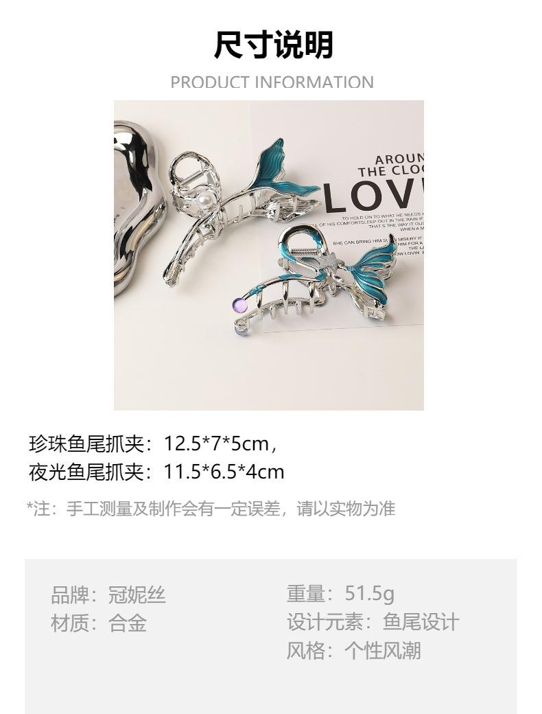 Pearl fishtail catch clip, Noctilucent fishtail grip clip