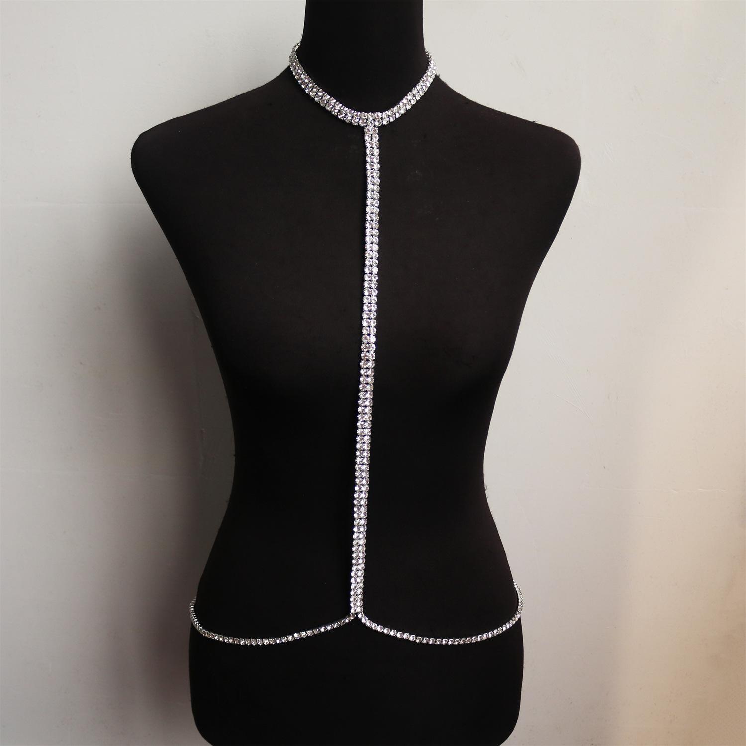 Moda popular personalizada europea y americana de una pieza cadena de pecho de diamantes de imitación para mujer sexy fiesta de club nocturno cadena corporal accesorios de joyería