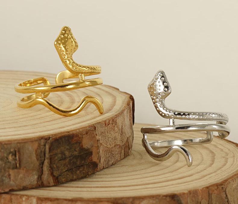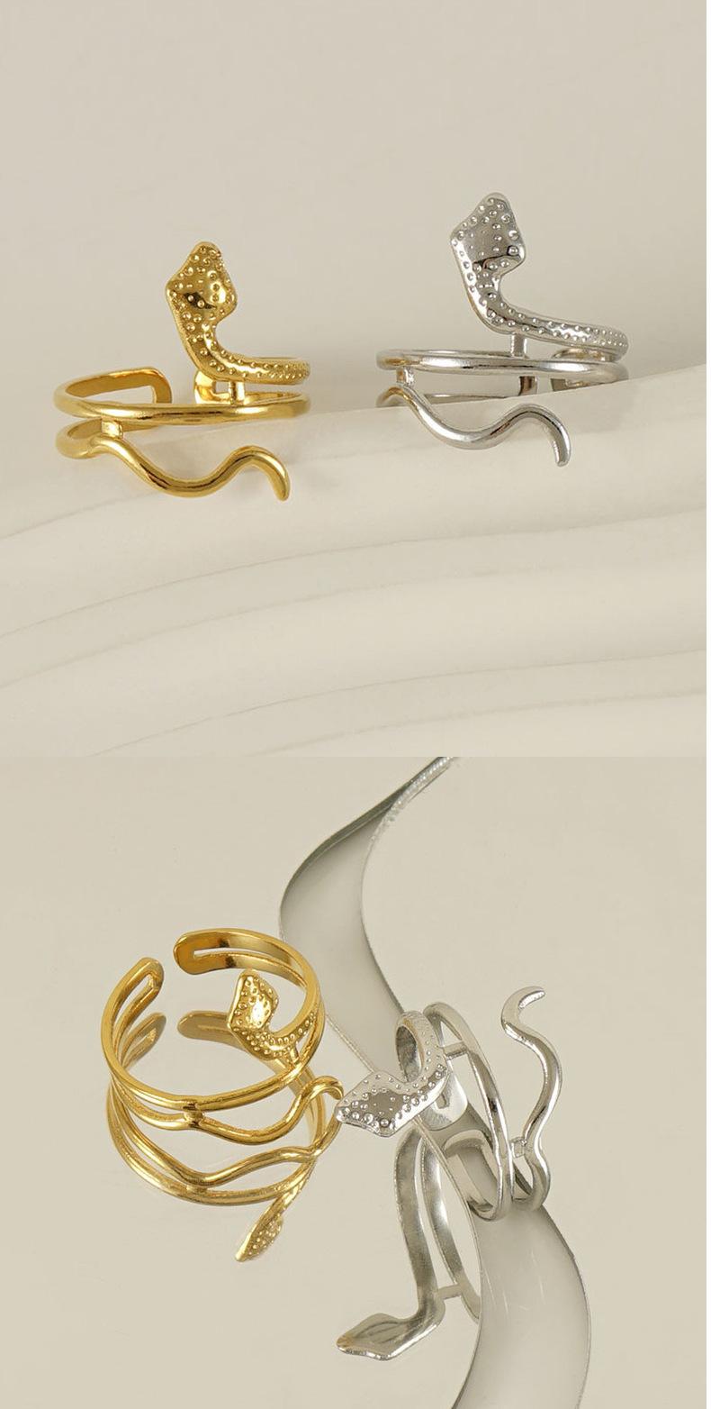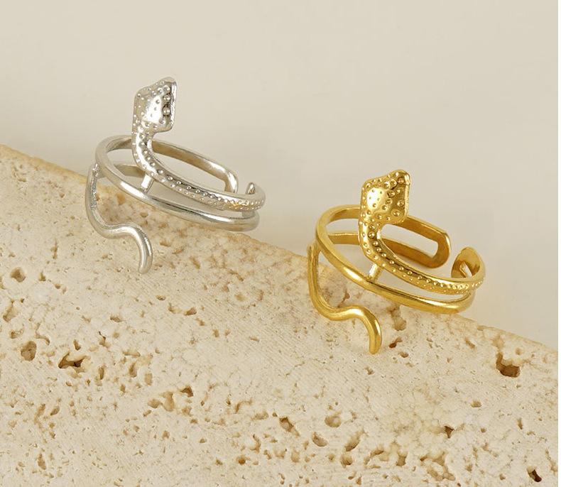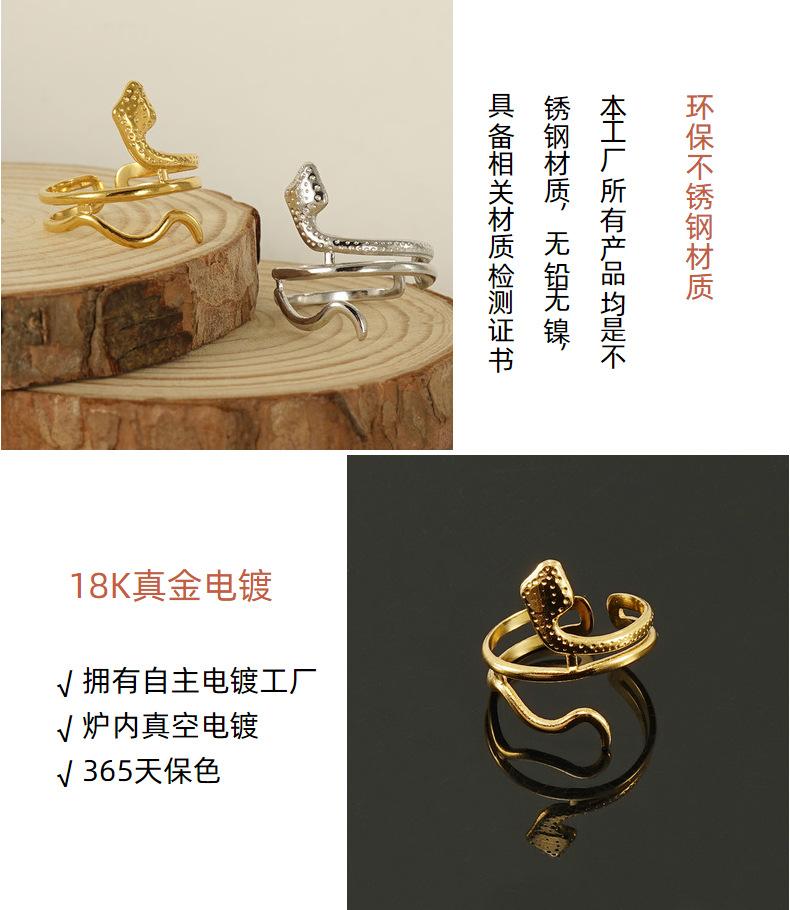 Anillo de Serpiente de Acero de Titanio Europeo y Americano Transfronterizo Personalizado para Mujer Estilo Punk Oro de 18K Serpiente Animal Anillo de Acero Inoxidable para Mujer