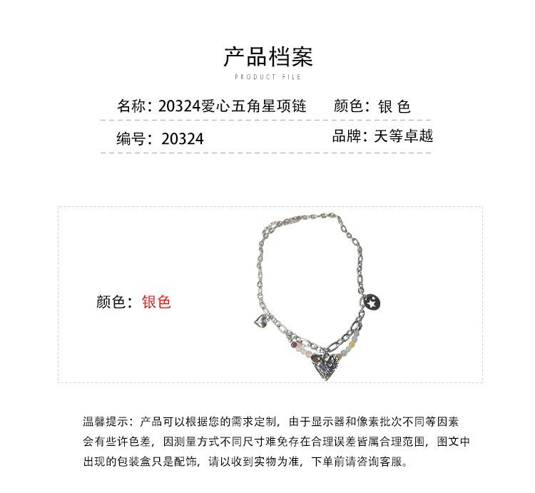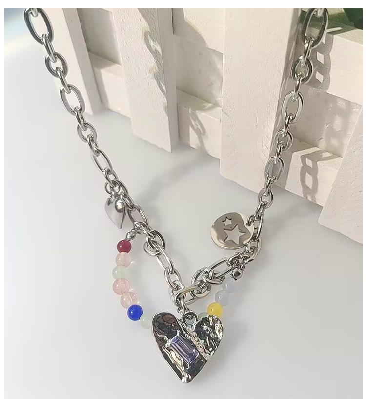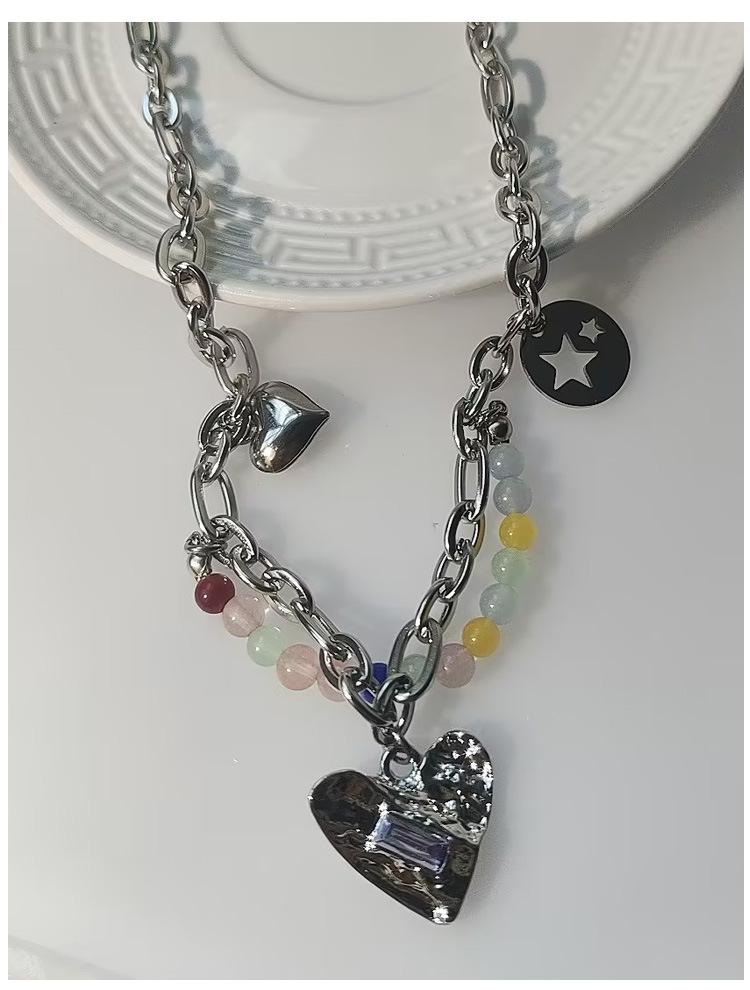 Collar de amor con cuentas coloridas para mujer, estilo hip hop, dulce y moderno, con diseño de nicho, cadena de clavícula con costuras estilo chica sexy y estrella.