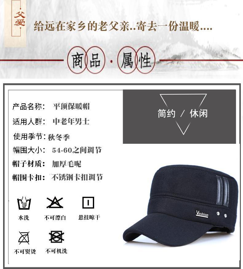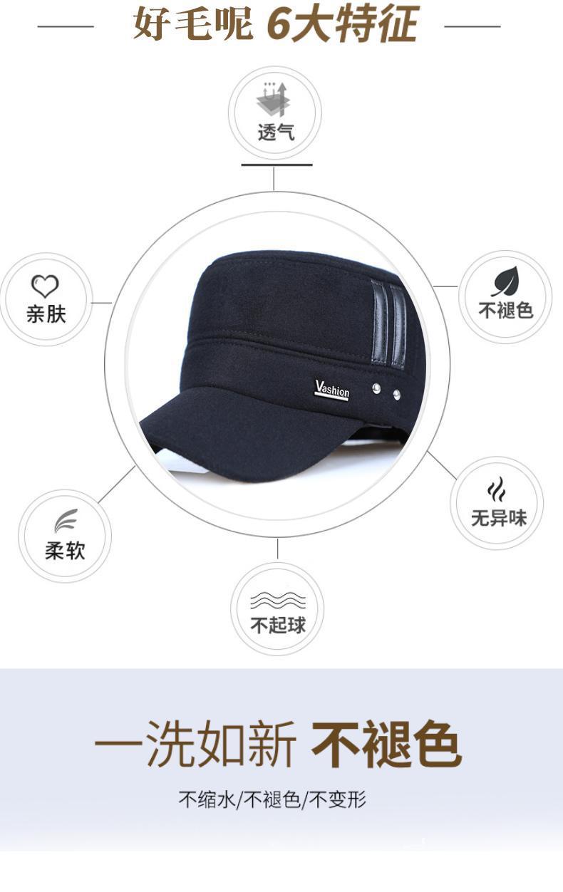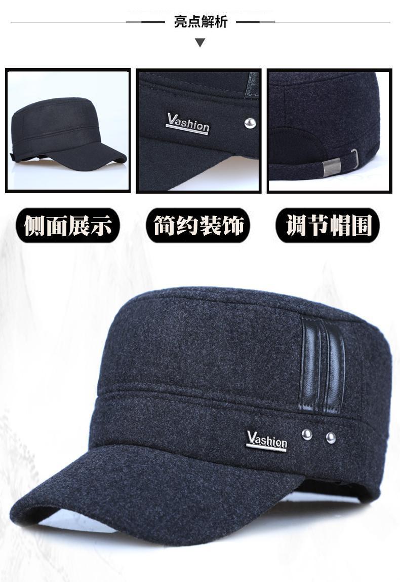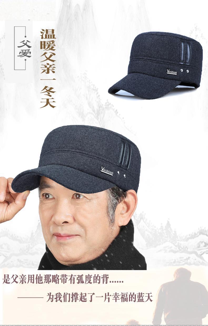Sombrero Plano de Lana Gruesa Caliente para Invierno para Hombres de Mediana Edad y Ancianos Protección para los Oídos Abuelo Papá Anciano Sombrero de Algodón