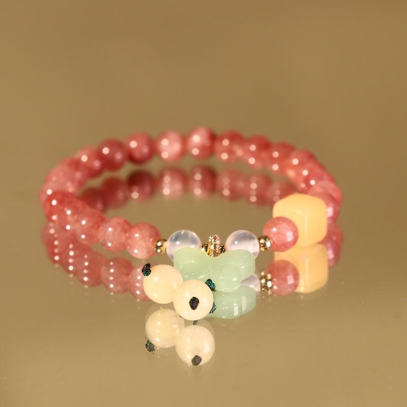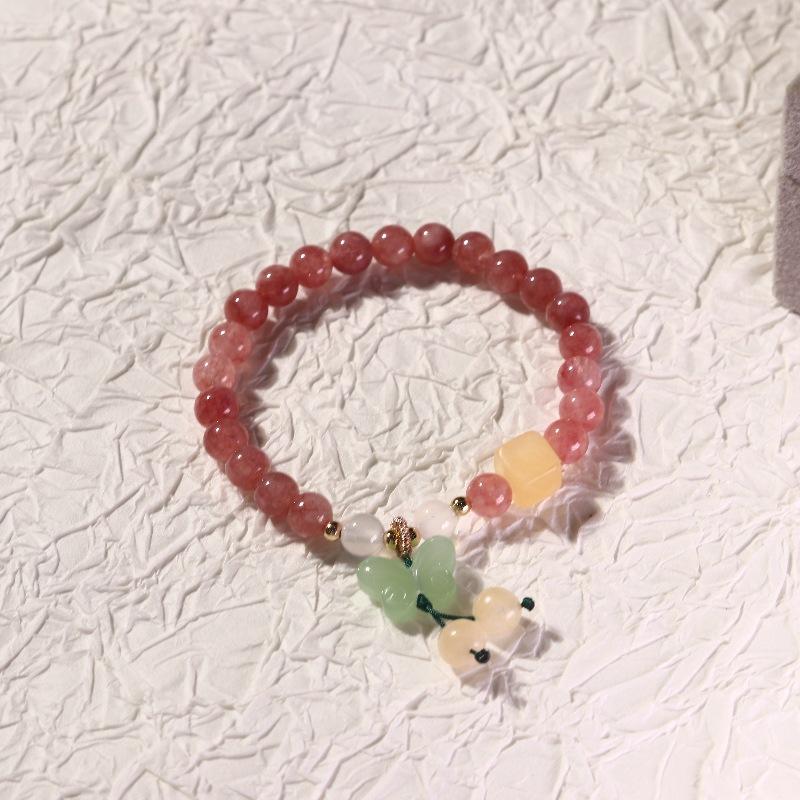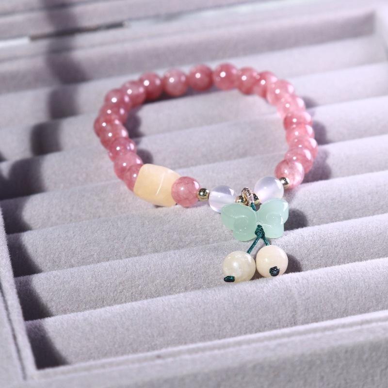 Pulsera de cristal de Fresa natural para mujer 2023 nueva pulsera exquisita de nicho de lujo ligero cristal de fresa pulsera de mariposa verde