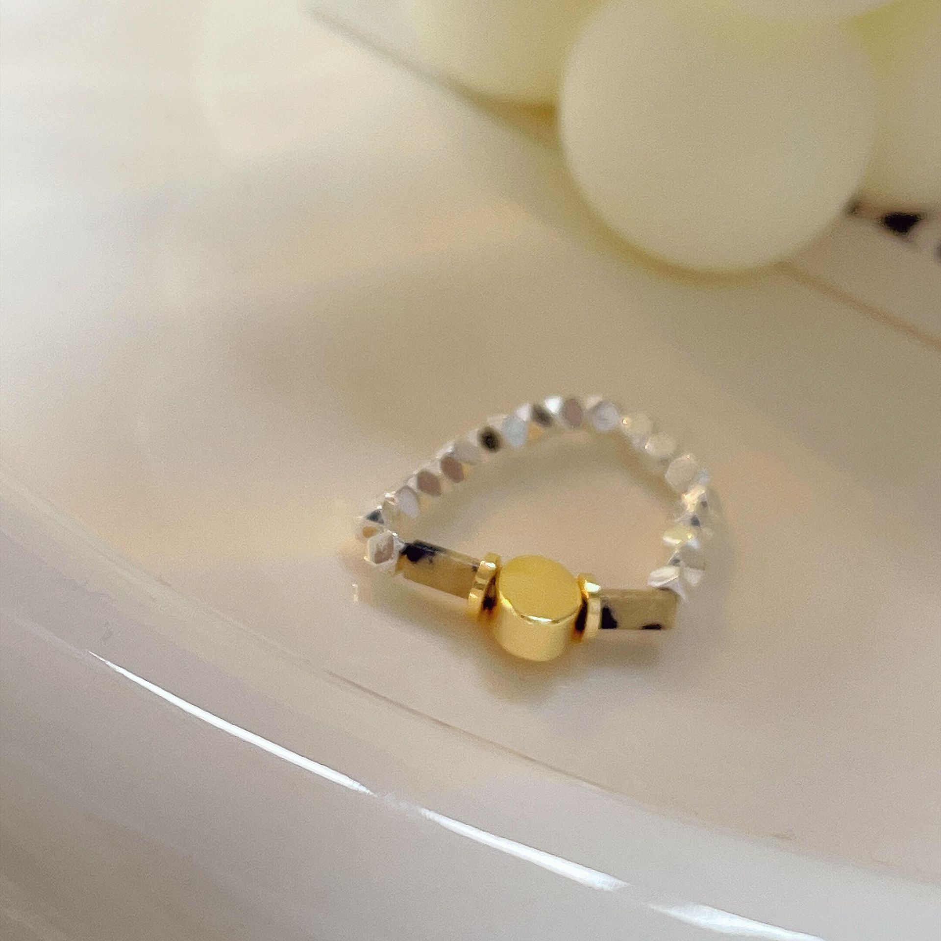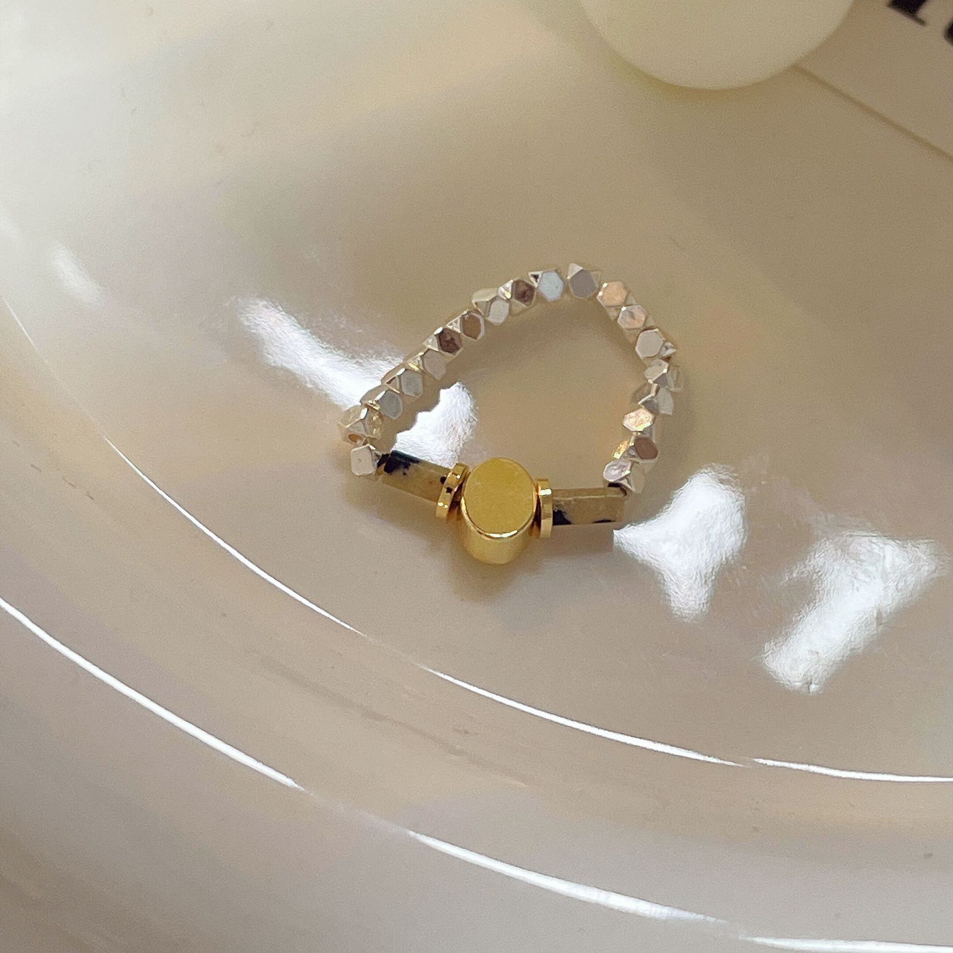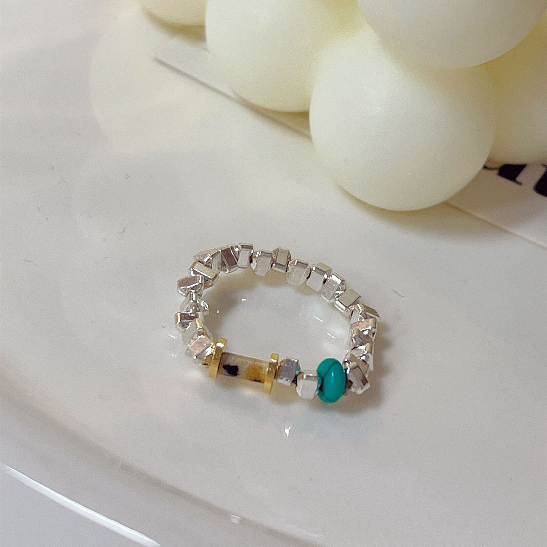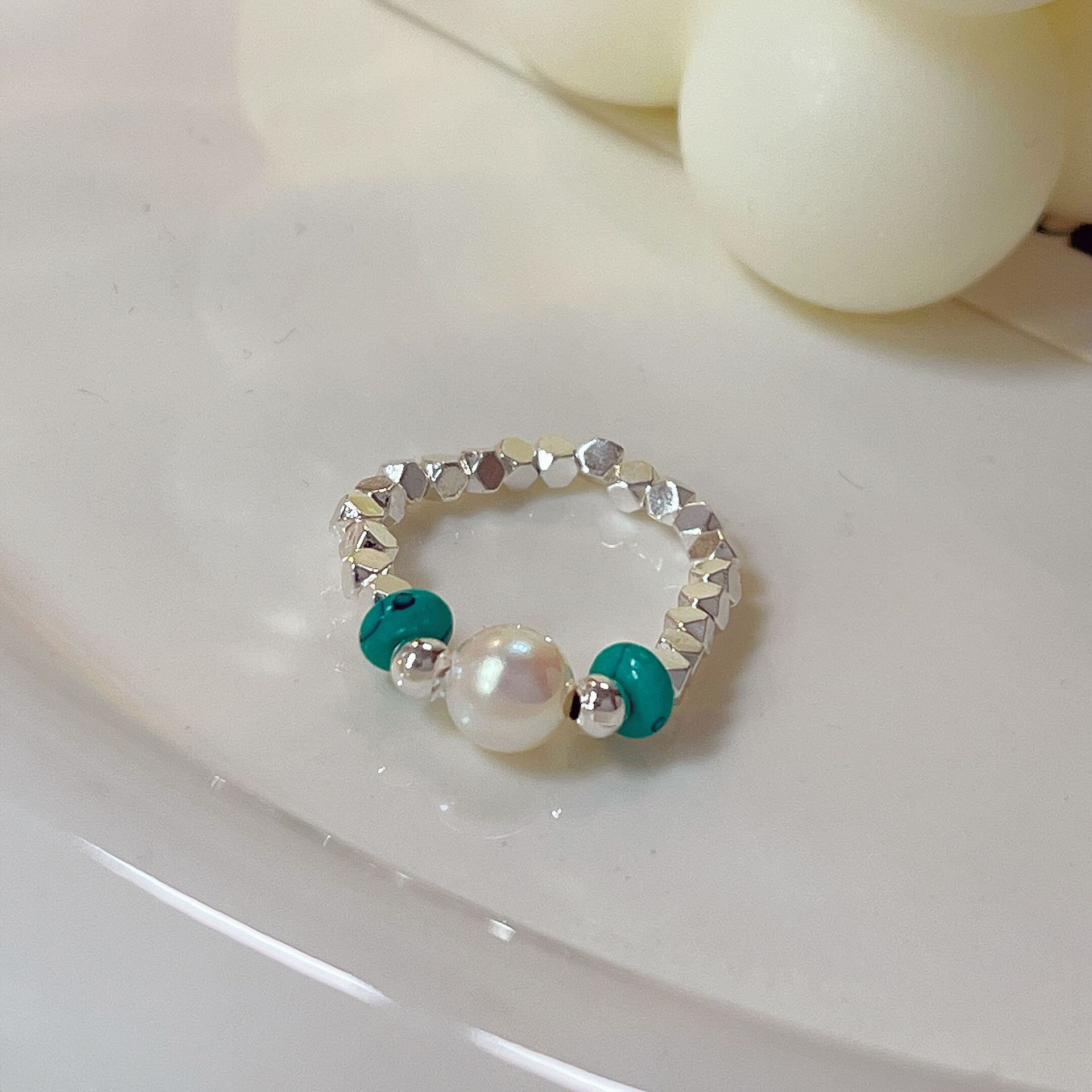 Anillo de cuentas verde plateado Summer Fresh elegante dulce personalidad de alta gama viento frío anillo abierto