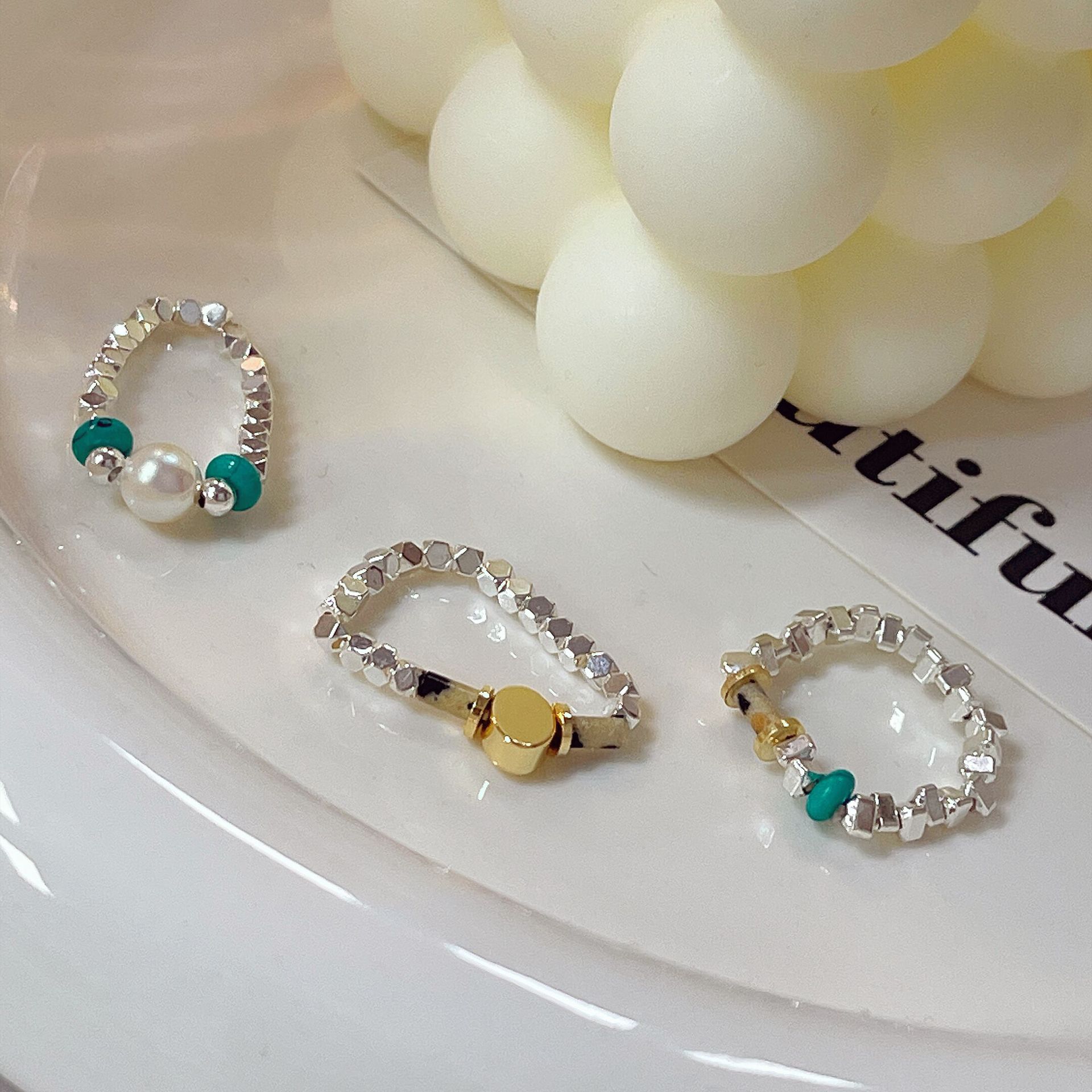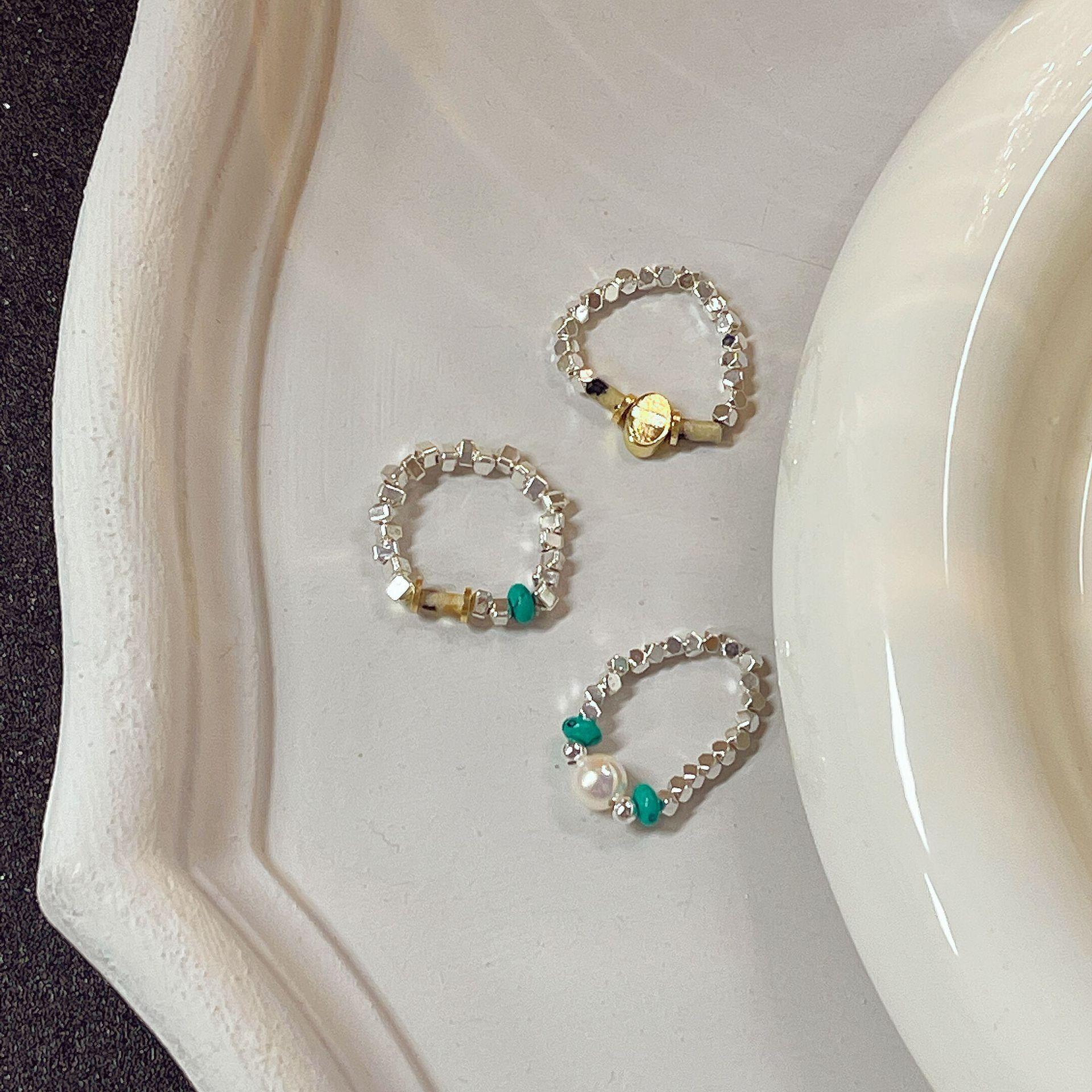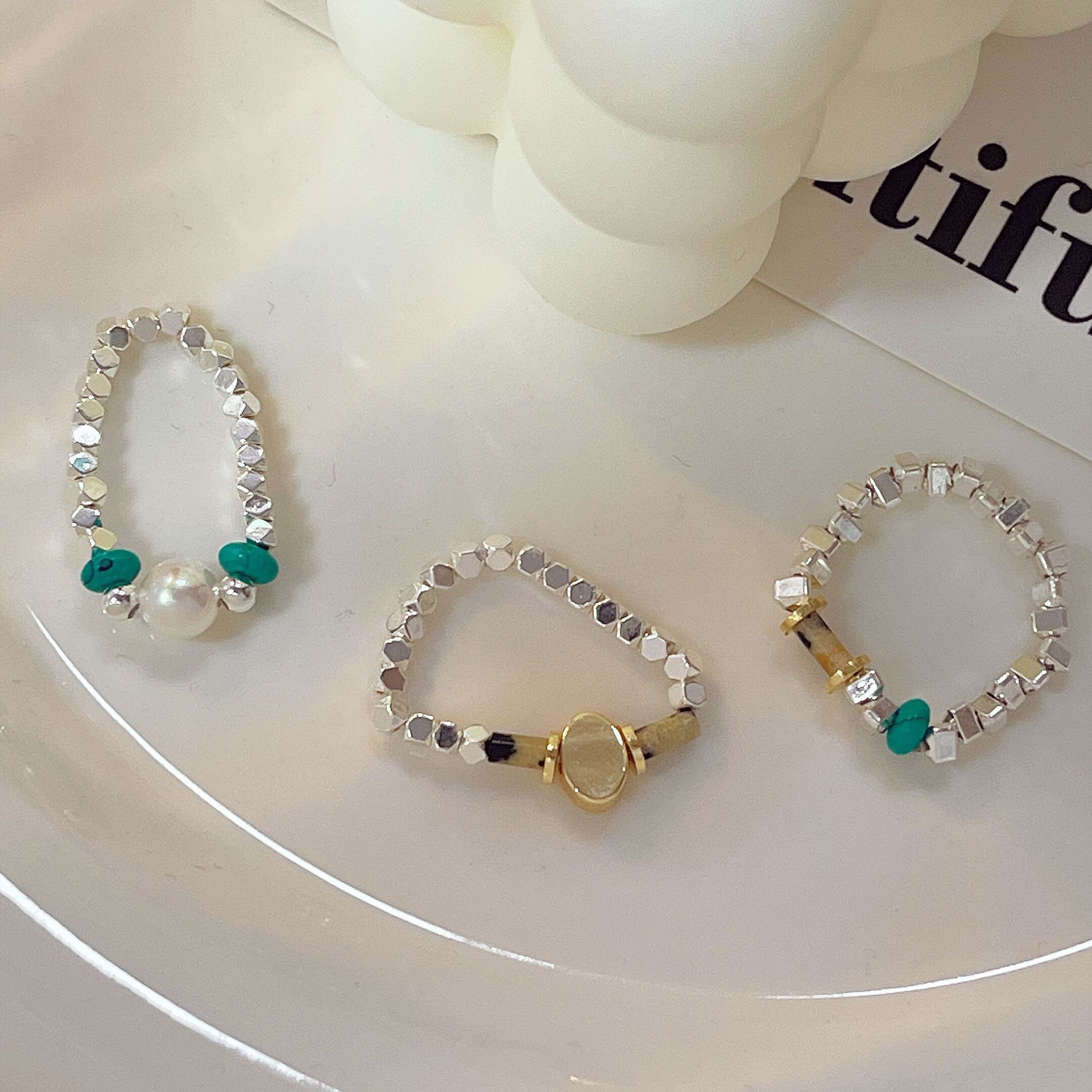 F6538 Silver Pearl green bead ring, F6539 silver leopard ring, F6540 silver green bead ring