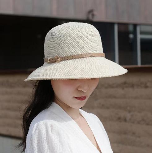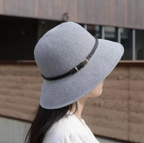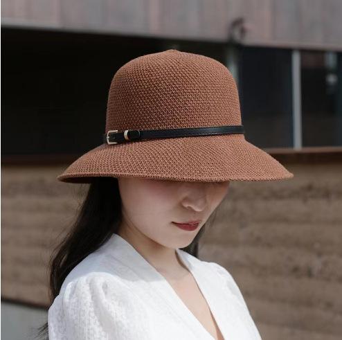 Sombrero de Pescador, Sombrero de Protección Solar para Primavera y Verano, Sombrero de Sol para Mujer Moderno y Versátil, Sombrero de Cubo, Nuevo Estilo, Sombrero de Sol Moderno con Hebilla de Cuero