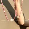 Collar de cuentas de la suerte con flores de estilo coreano, conjunto de clavícula de doble capa geométrica, cadena ligera de lujo, acero de titanio, oro de 18 quilates, joyería corta para mujer