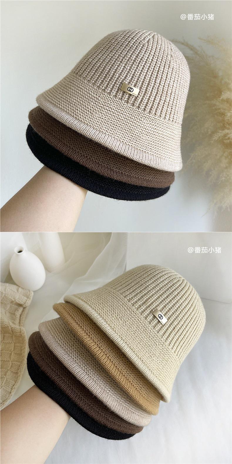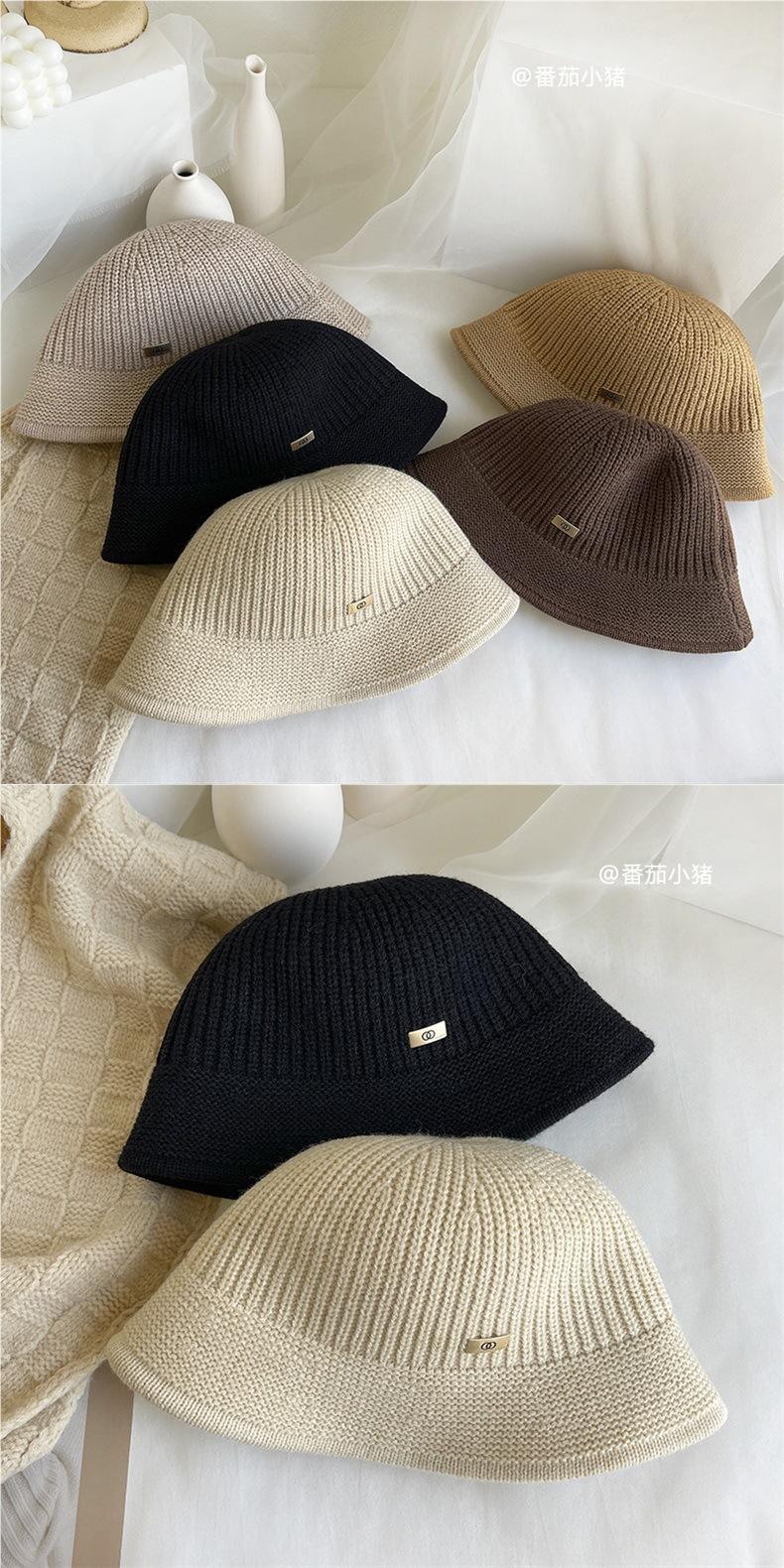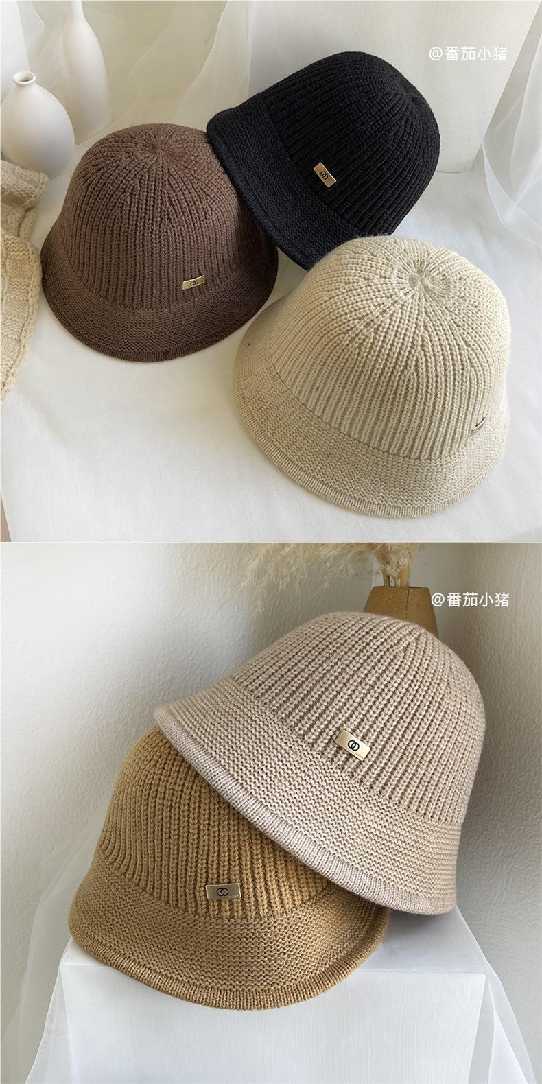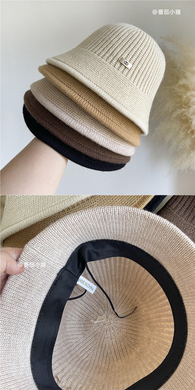 Sombrero de pescador para mujer, de otoño e invierno, negro y marrón, combina con todo, de lana, tejido de lana, estilo pescador coreano, moderno.