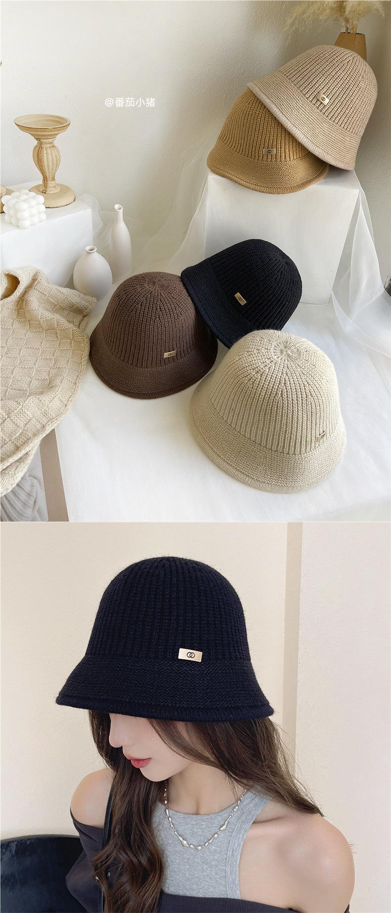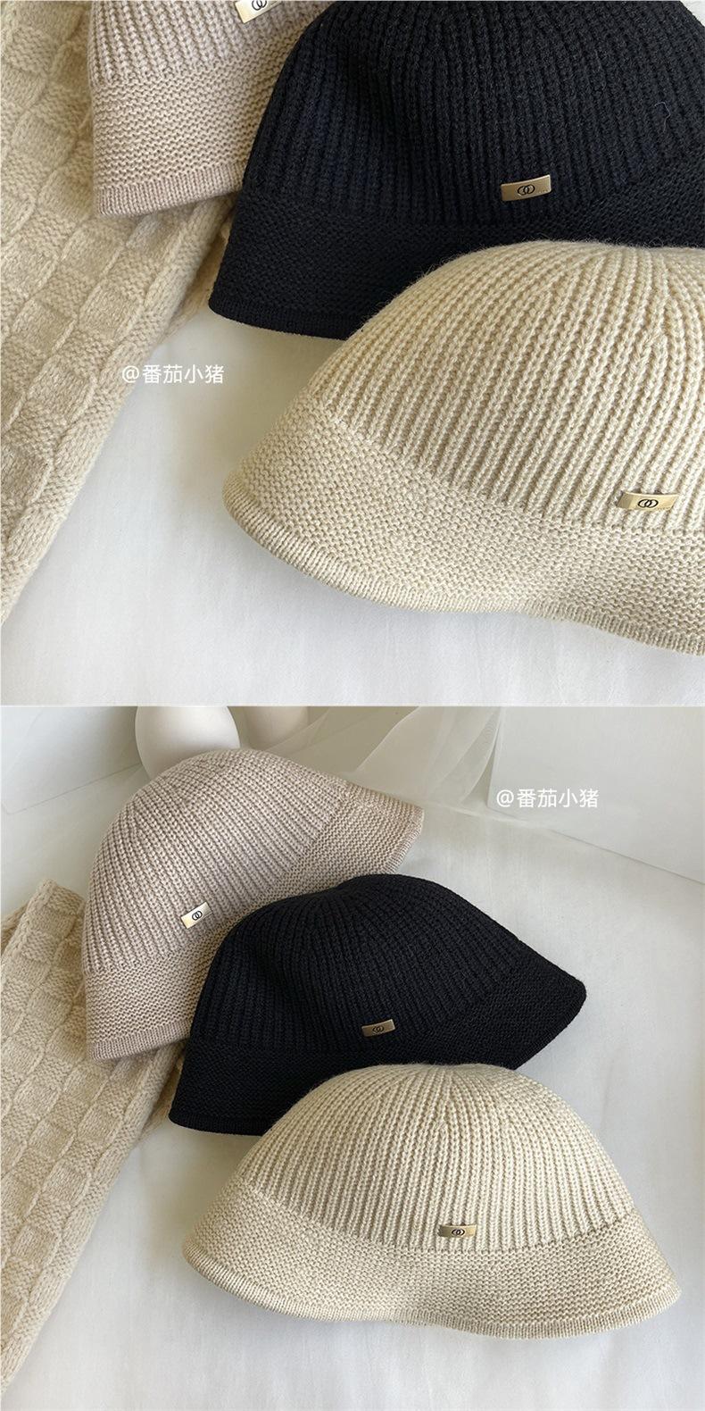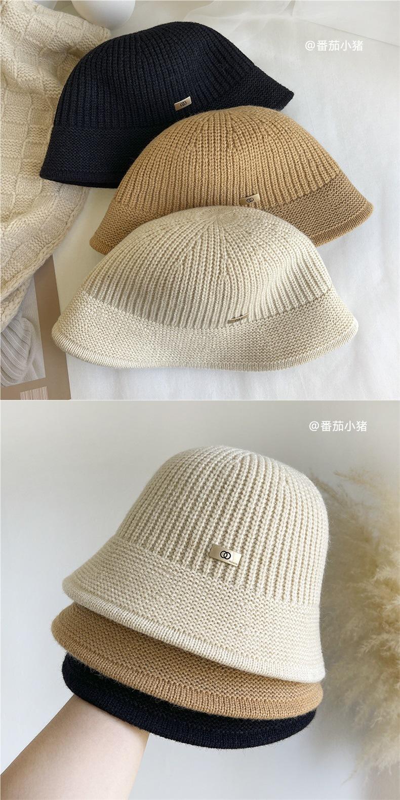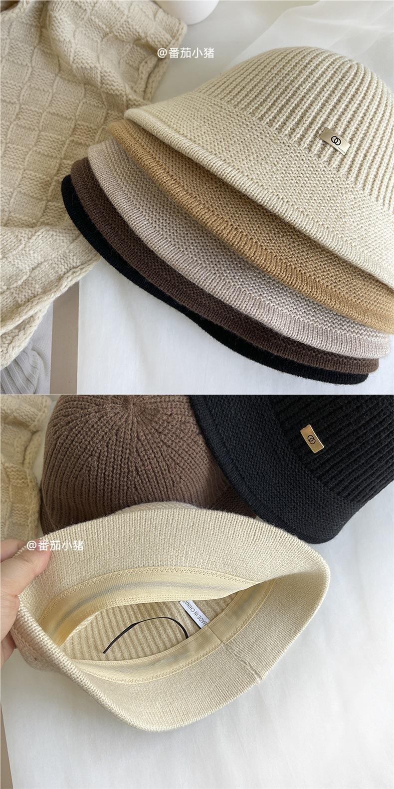 Sombrero de pescador para mujer, de otoño e invierno, negro y marrón, combina con todo, de lana, tejido de lana, estilo pescador coreano, moderno.