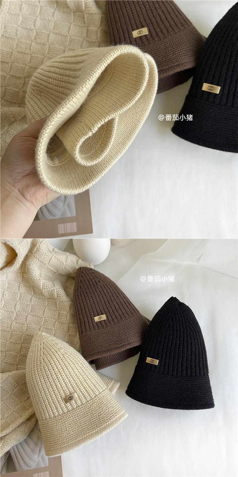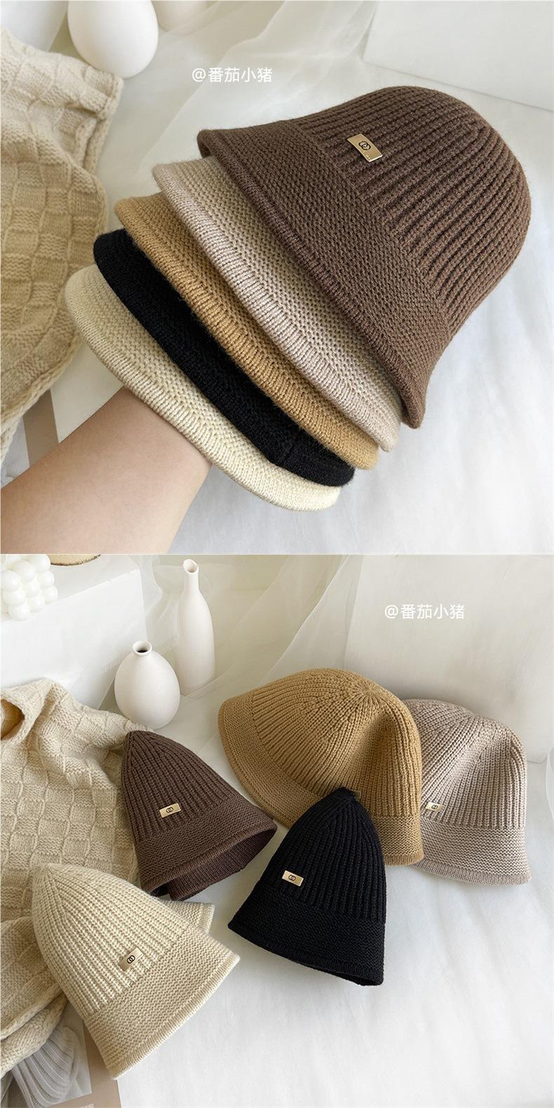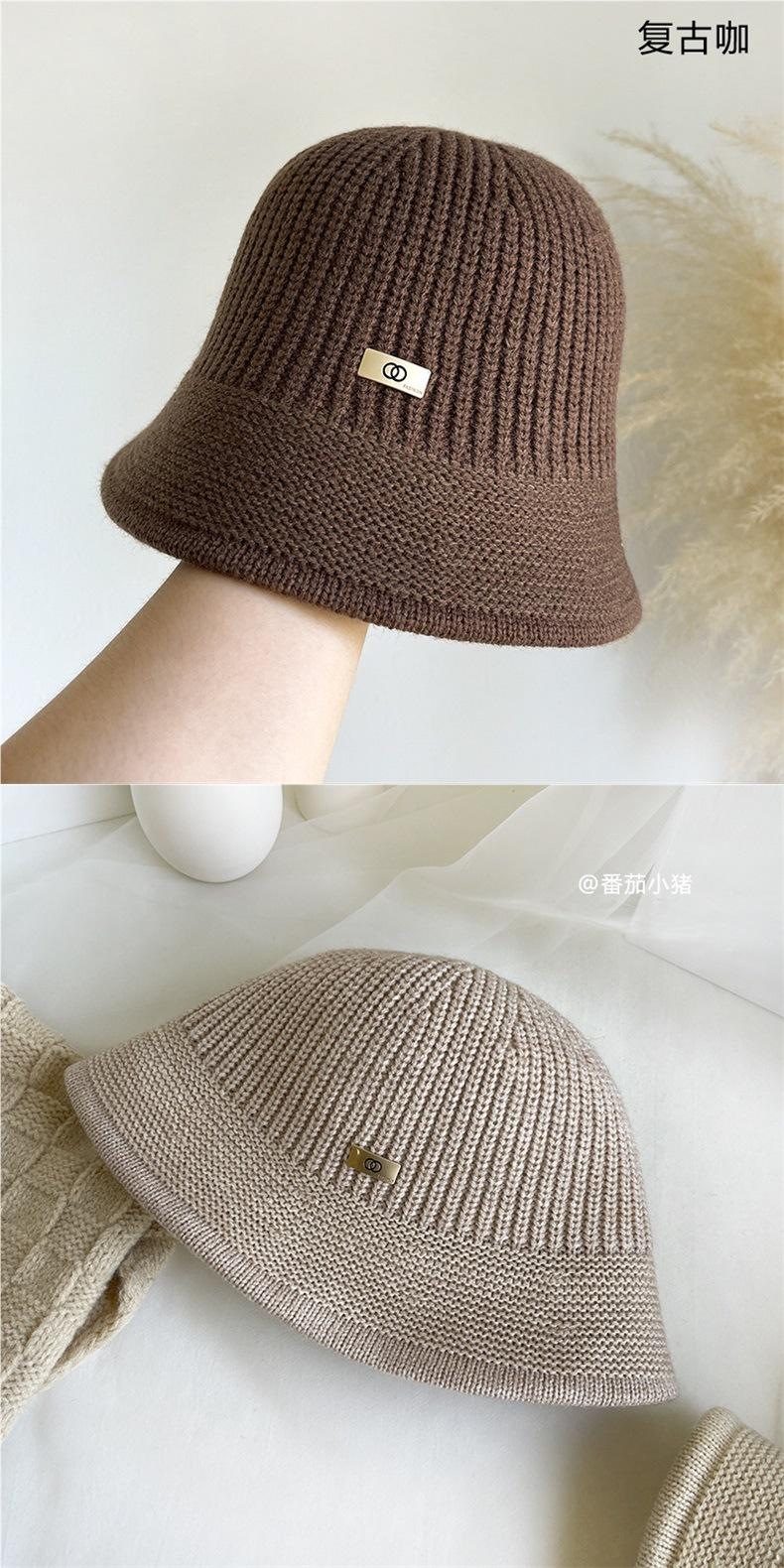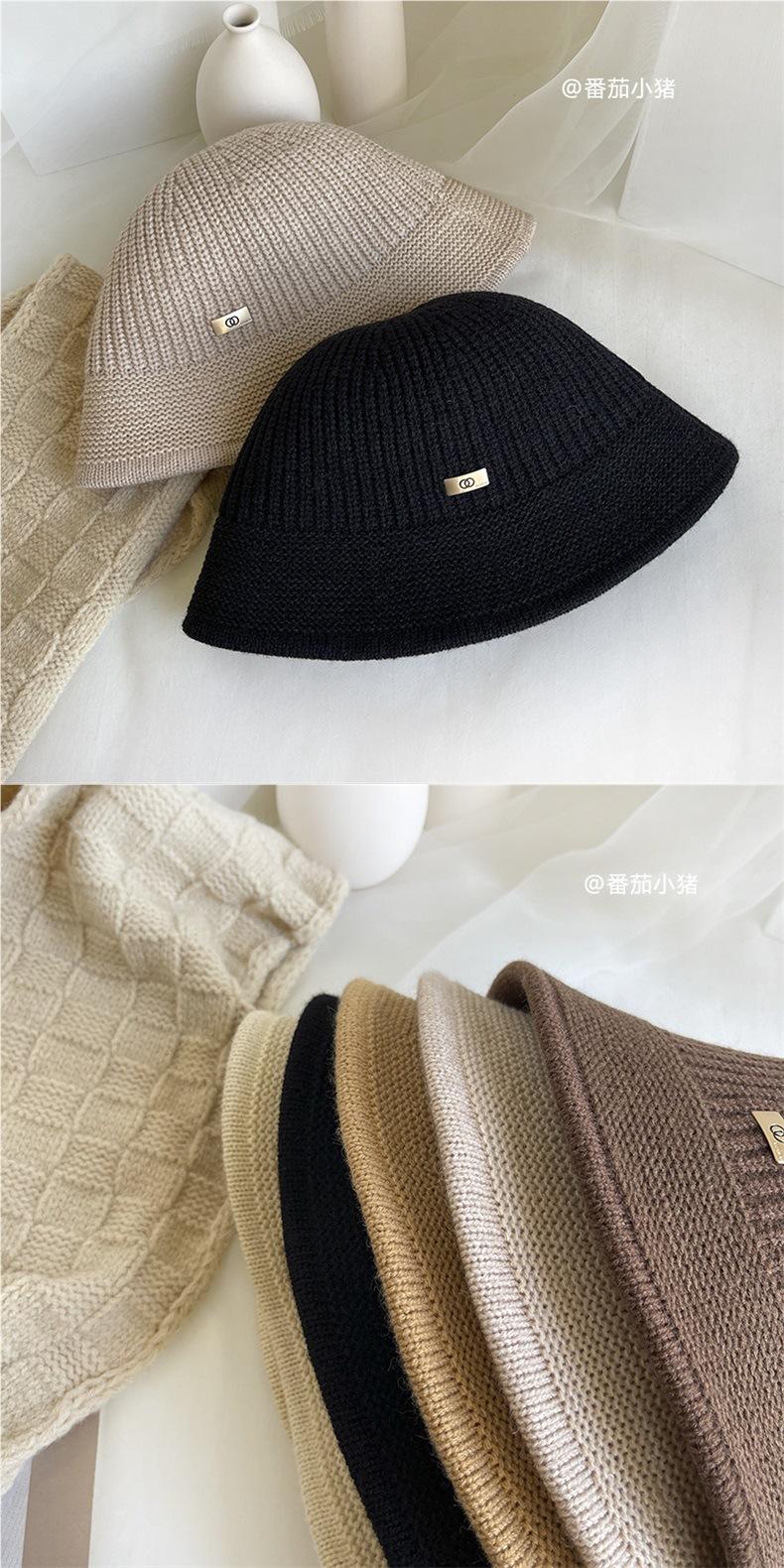 Sombrero de pescador para mujer, de otoño e invierno, negro y marrón, combina con todo, de lana, tejido de lana, estilo pescador coreano, moderno.
