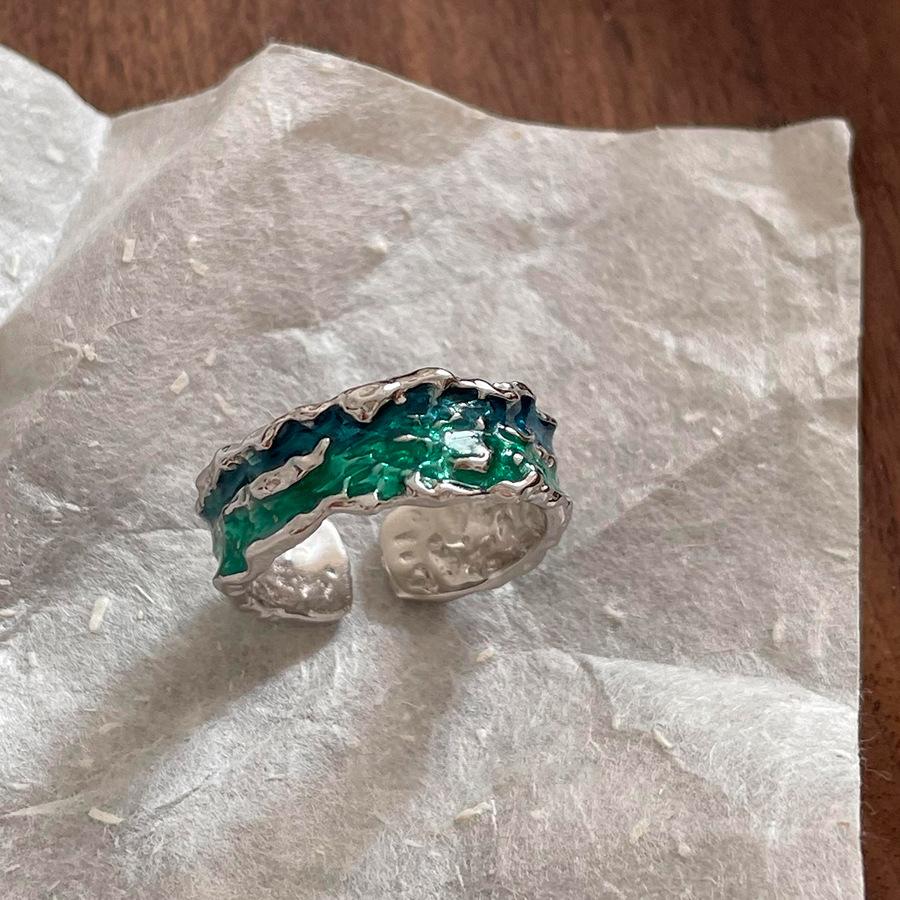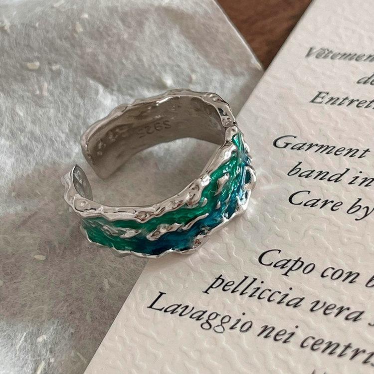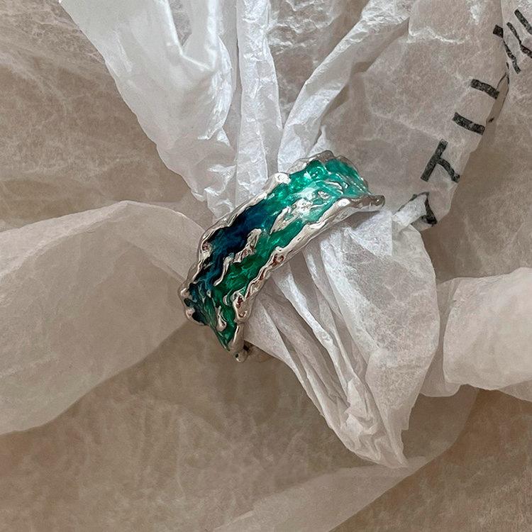 Anillo de esmalte de agujero azul de agua clara de alta calidad nicho irregular francés simple personalizado venta al por mayor venta caliente transfronteriza