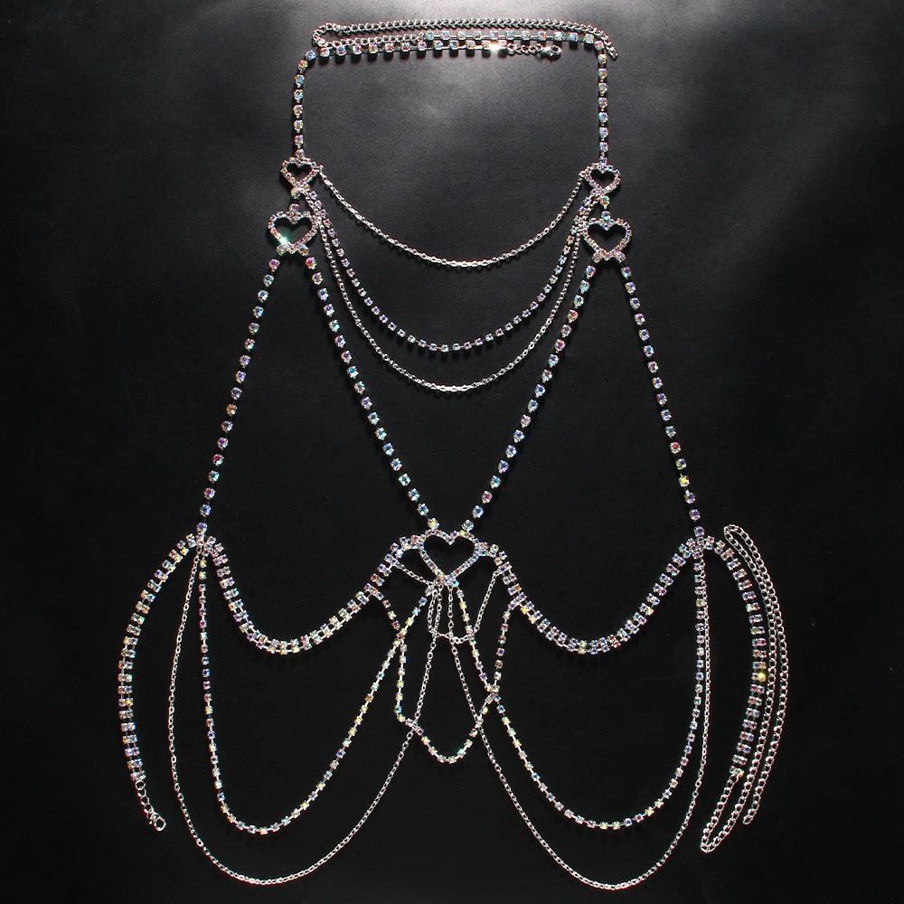 Cadena de sujetador multicapa elegante y sexy transfronteriza europea y americana Cadena de cuerpo de amor de moda para mujer Accesorios de cadena de cuerpo Cadena de cuerpo