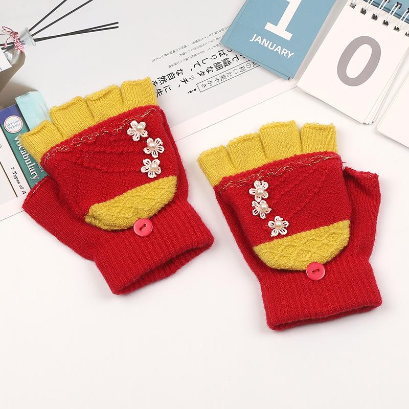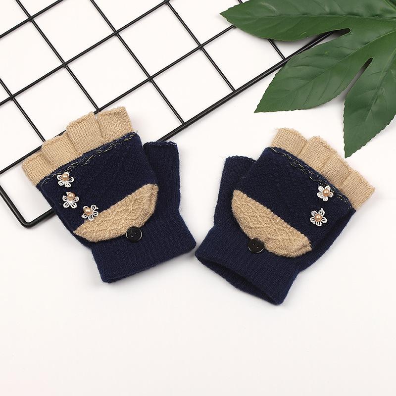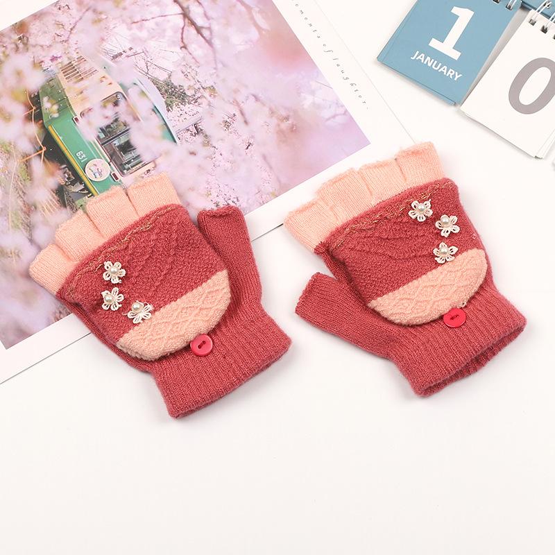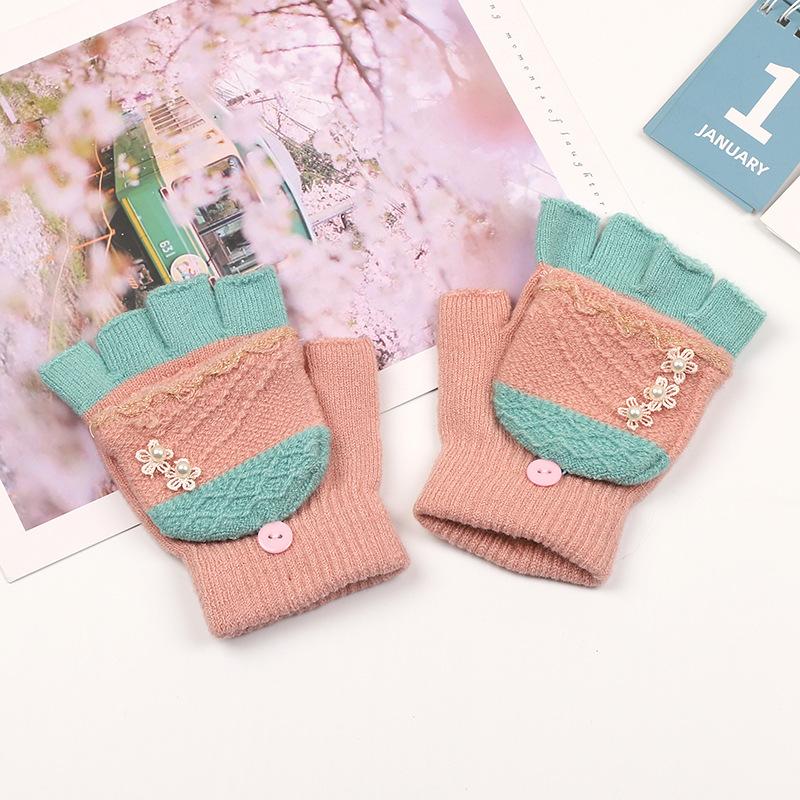 Guantes cálidos de otoño e invierno para damas, moda encaje cuentas guantes sin dedos, guantes deportivos para montar al aire libre al por mayor