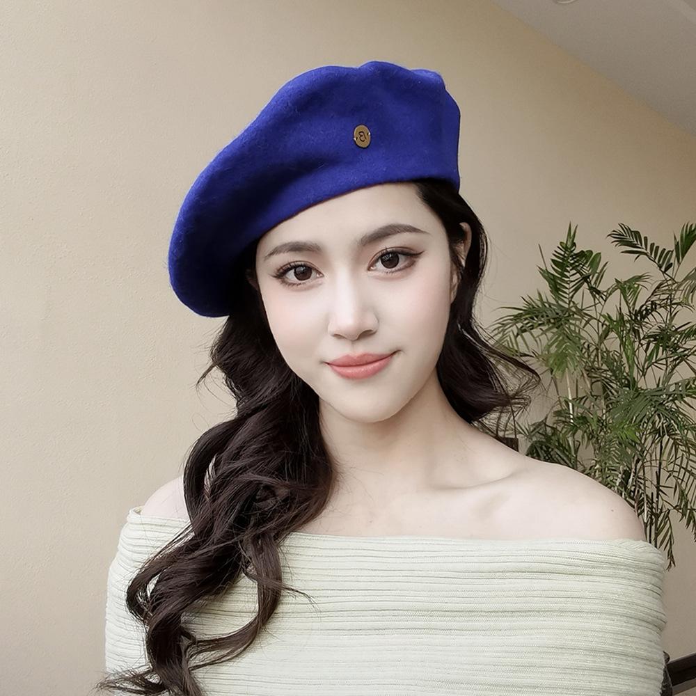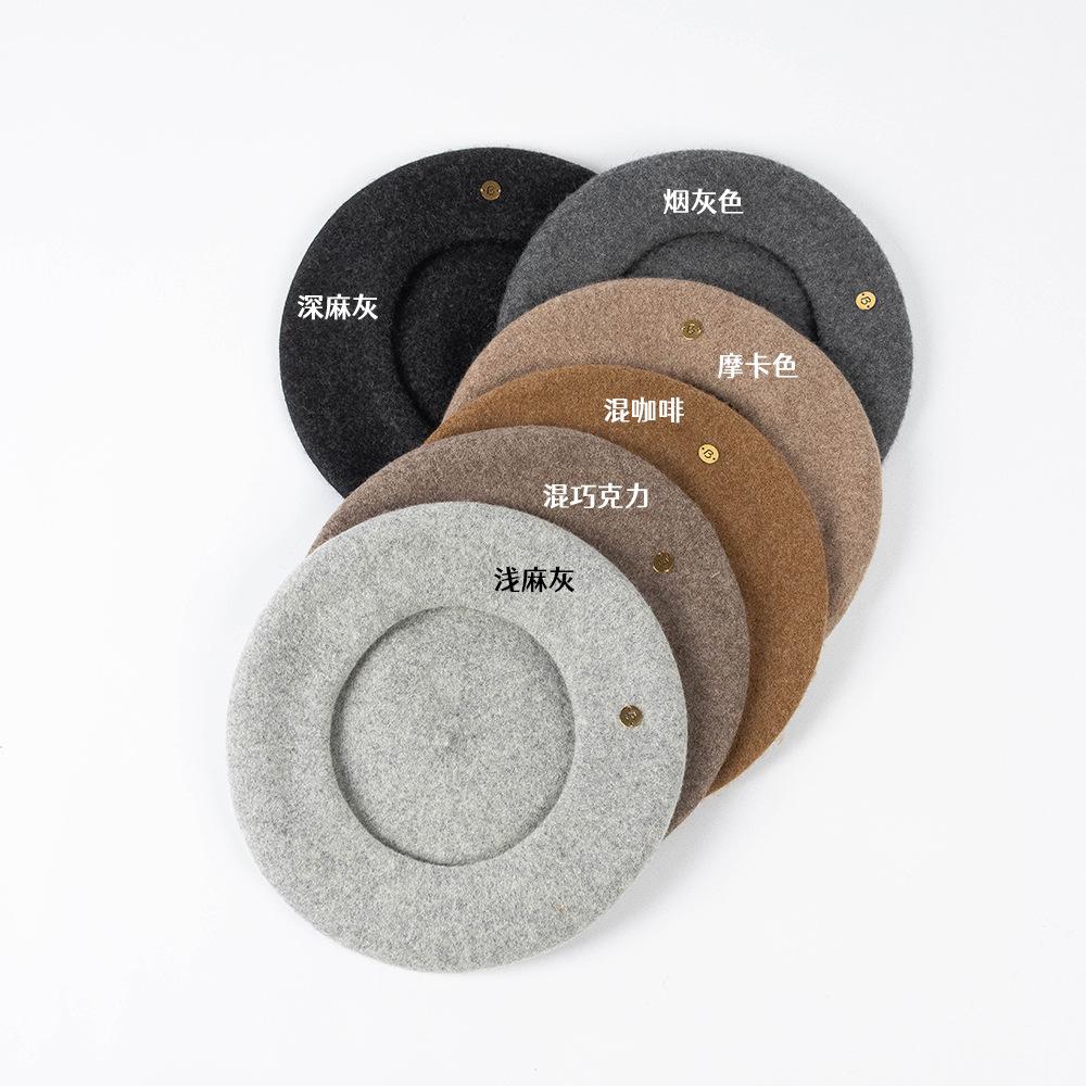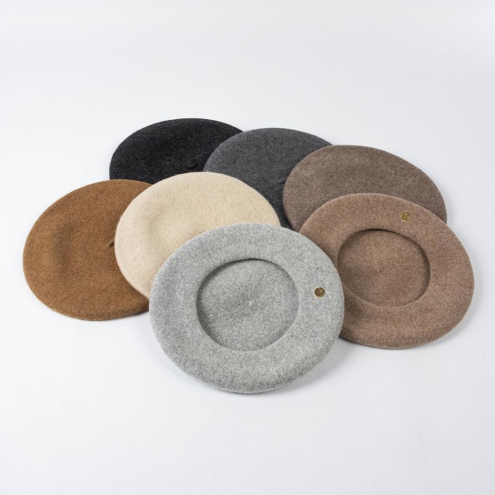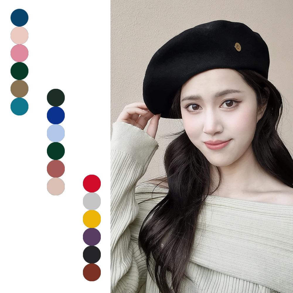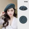 Boina de lana de pintor con etiqueta de metal sencilla, nueva moda europea y americana para otoño e invierno, cálida gorra de capullo de bosque, tendencia