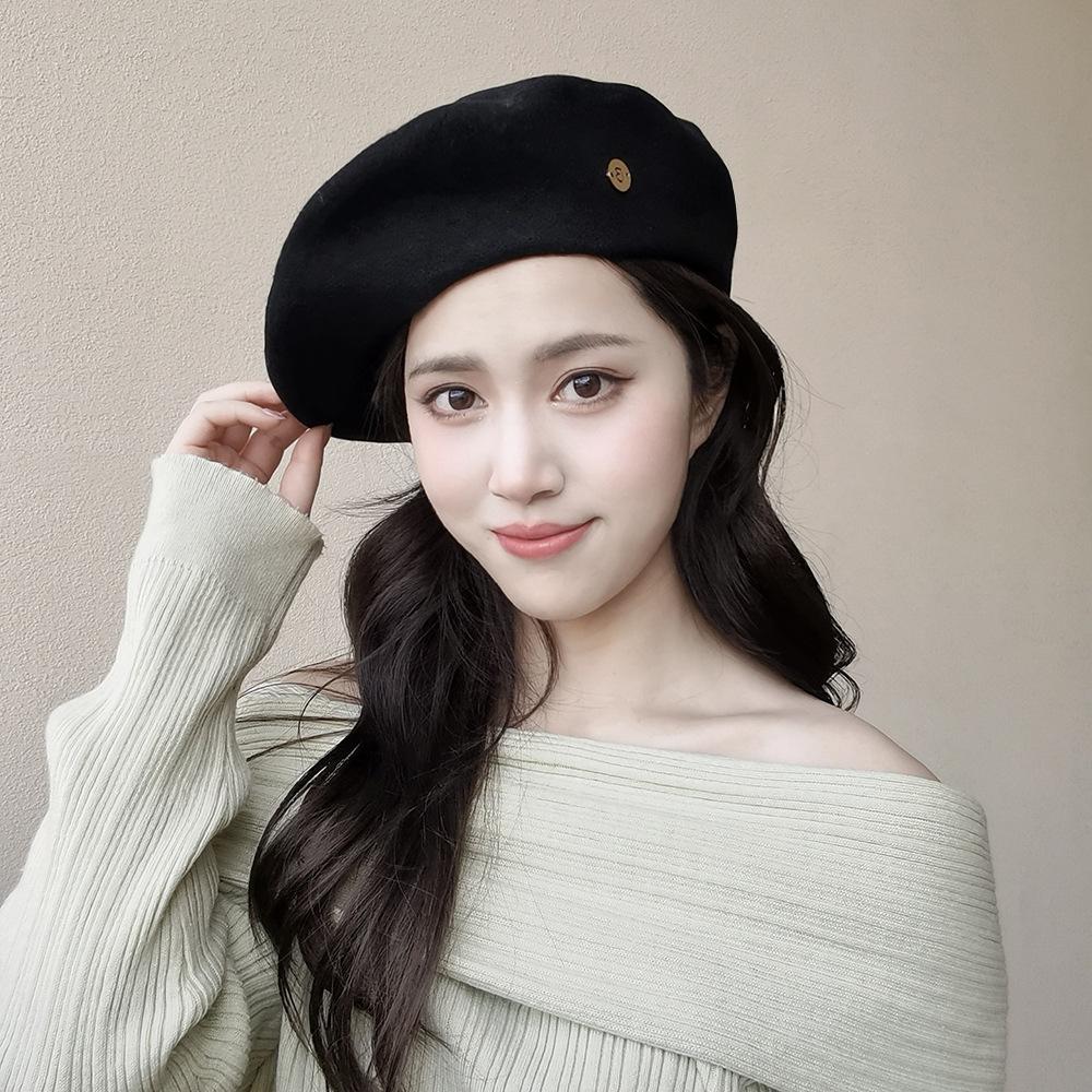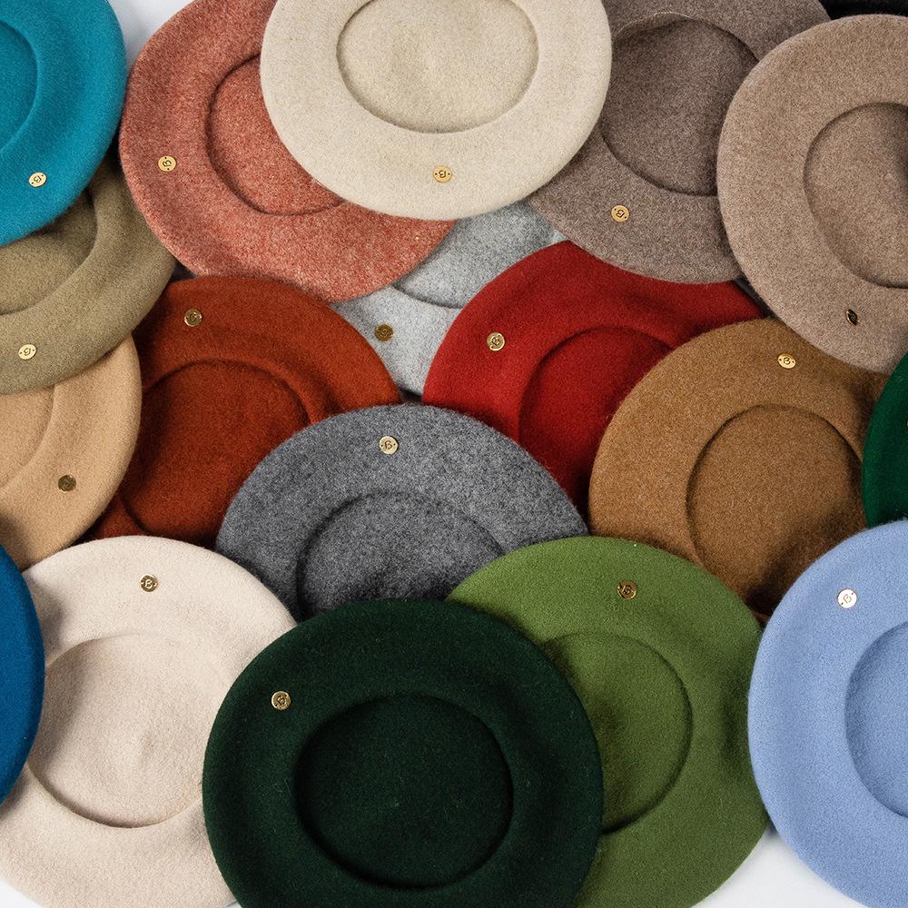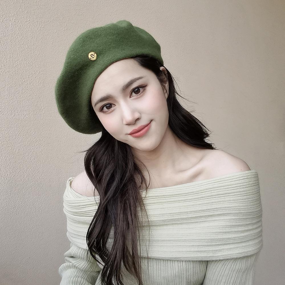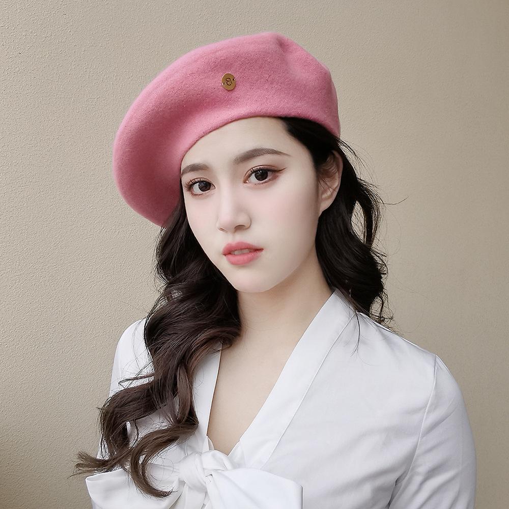 Boina de lana de pintor con etiqueta de metal sencilla, nueva moda europea y americana para otoño e invierno, cálida gorra de capullo de bosque, tendencia