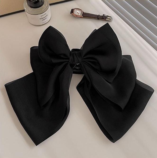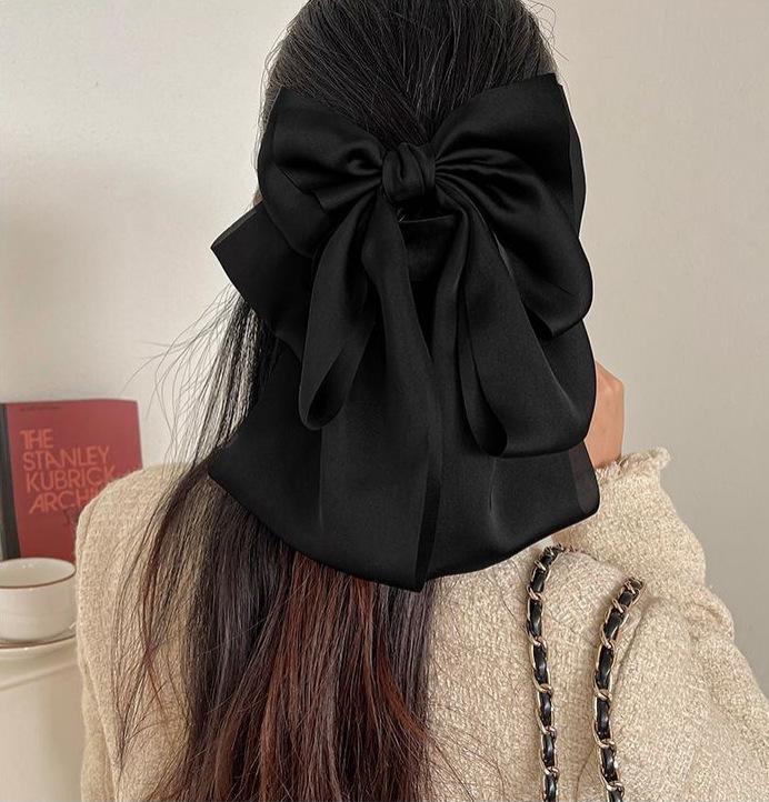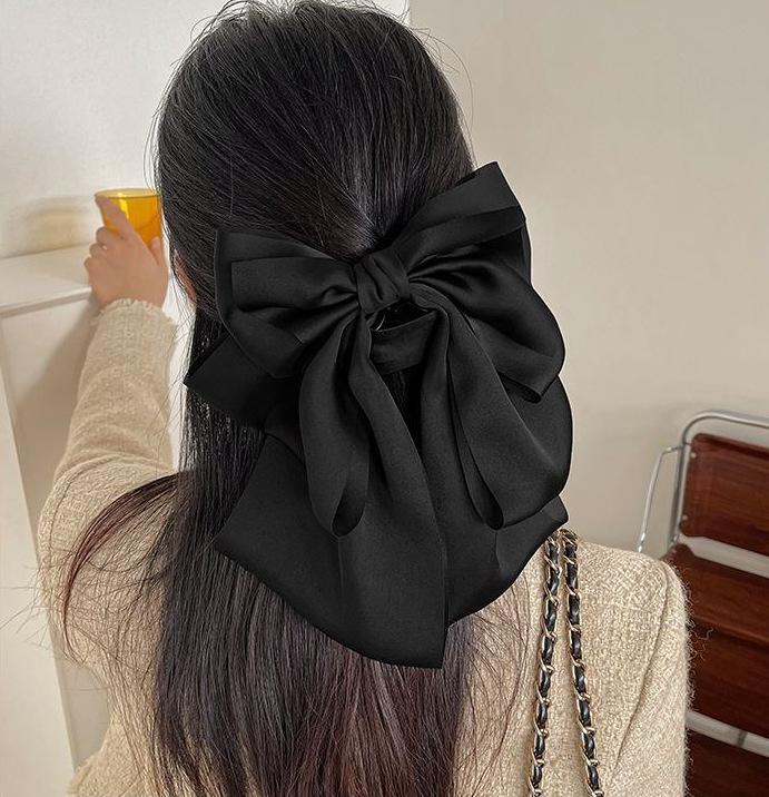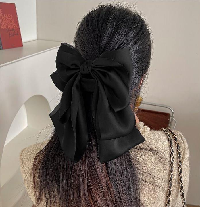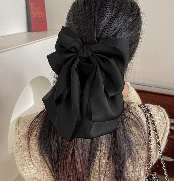 Horquilla para el pelo con lazo extragrande de satén elegante y suave de estilo francés para mujer, con pinza para la parte posterior de la cabeza