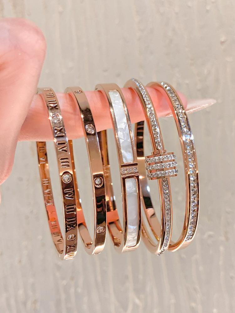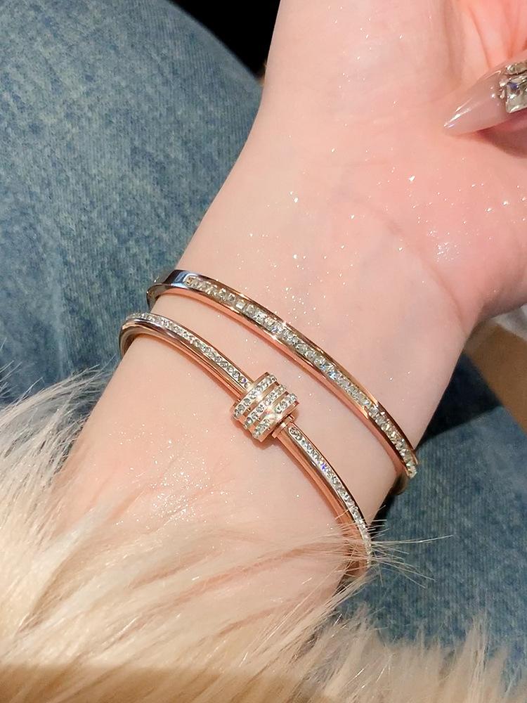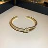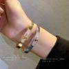 Pulsera de acero de titanio con circonita galvanizada en oro real, moda femenina, pulsera sencilla de alta gama, temperamento de nicho, joyería versátil al por mayor