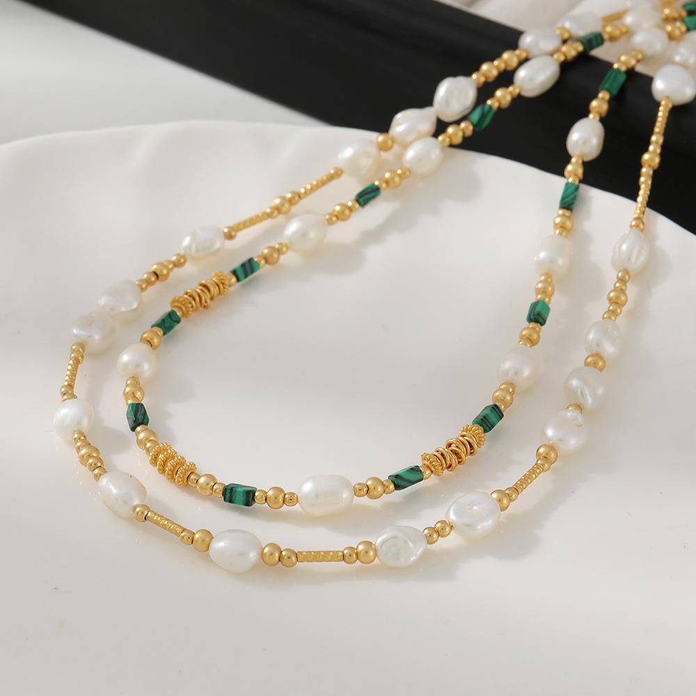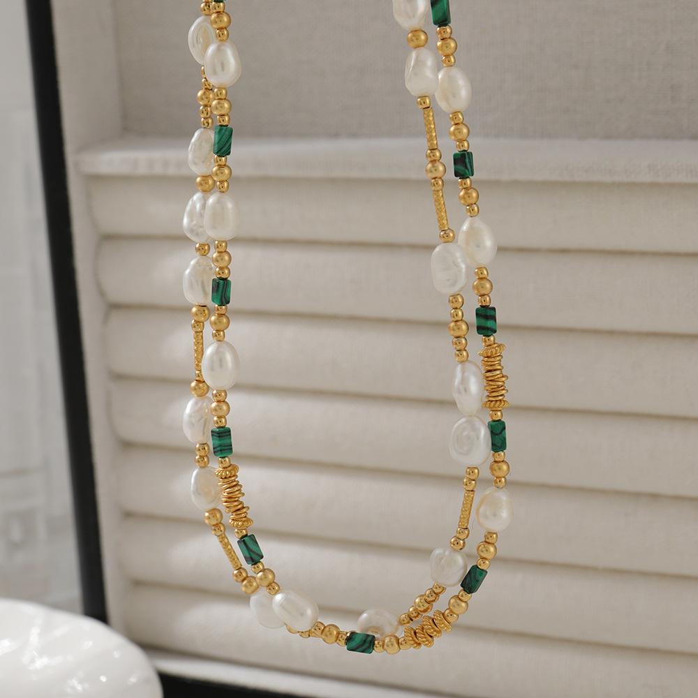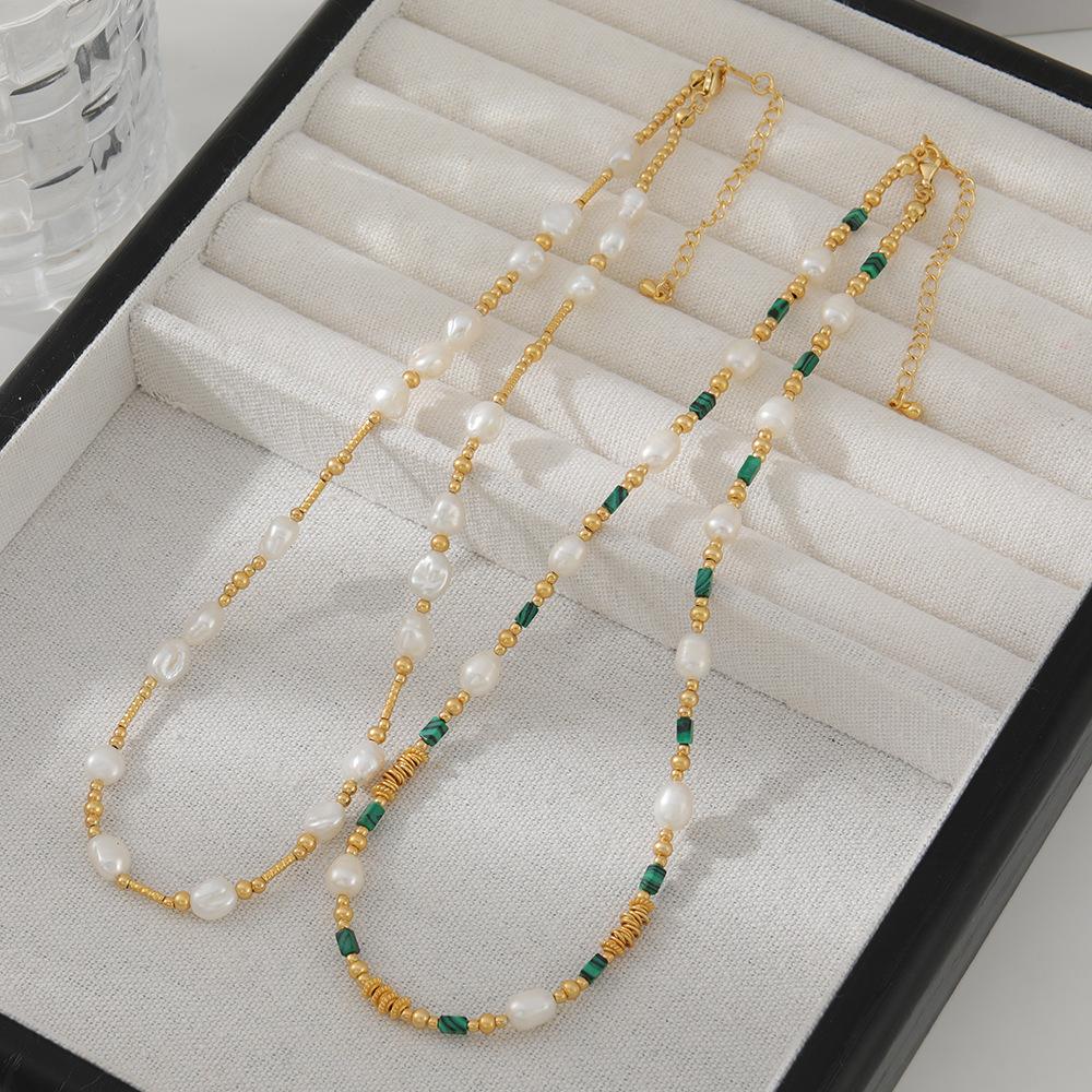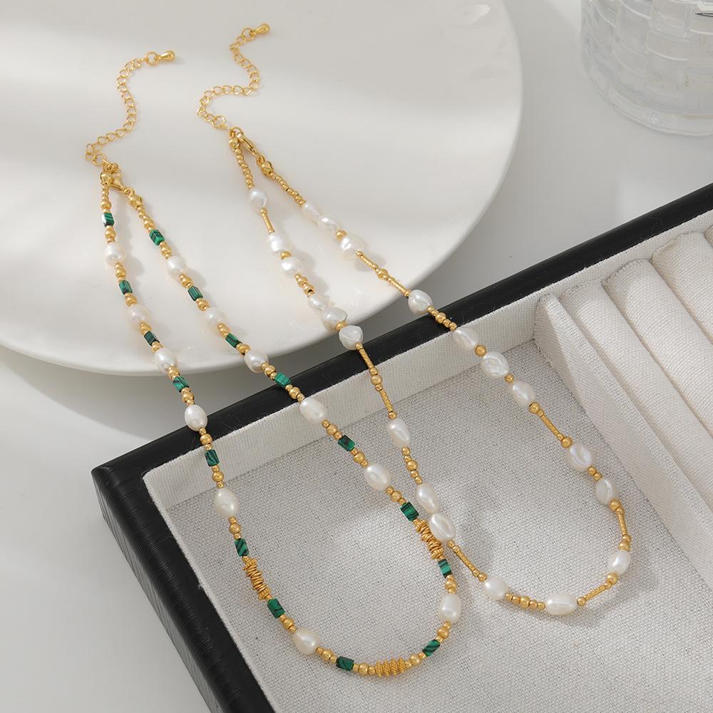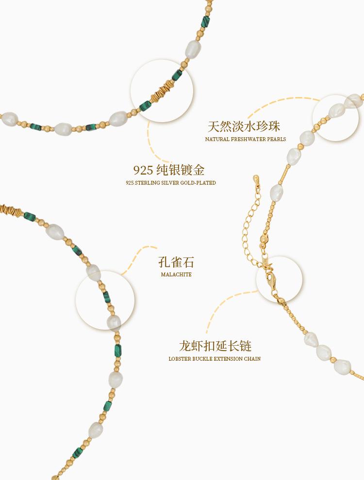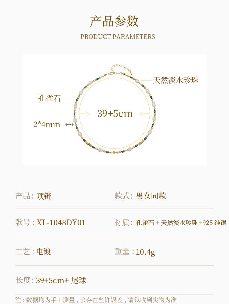 Collar de cuentas de piedra natural de pavo real con dopamina dulce, perla femenina, temperamento resistente a la decoloración, cadena de clavícula de plata 925 simple