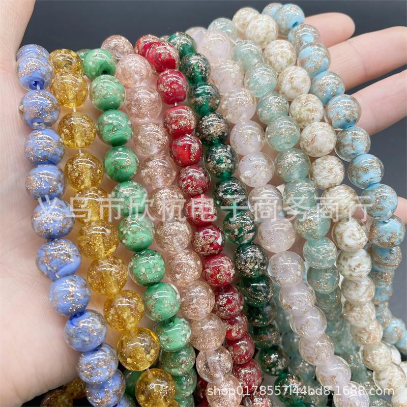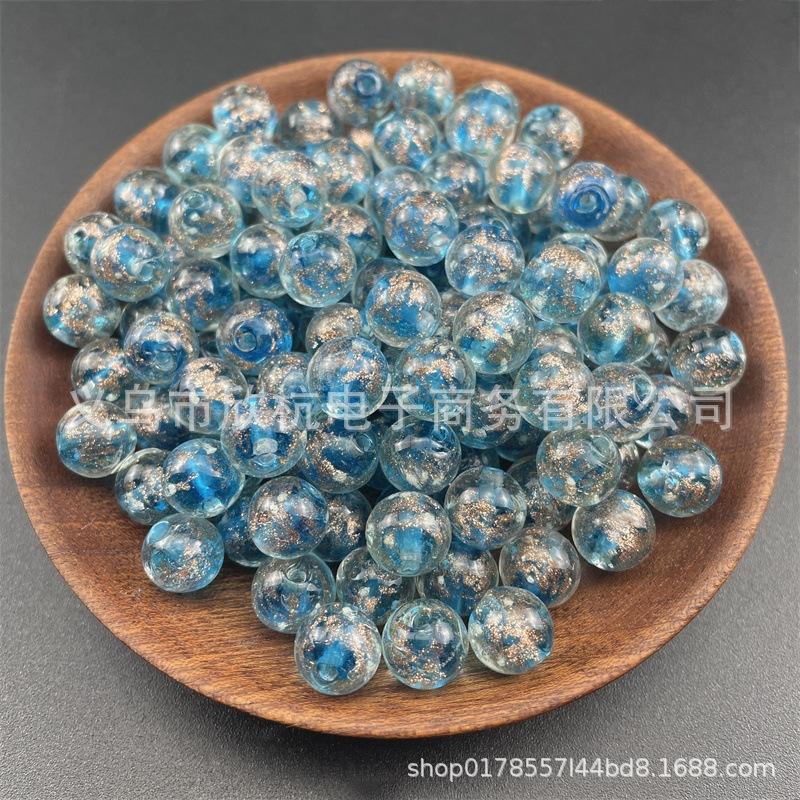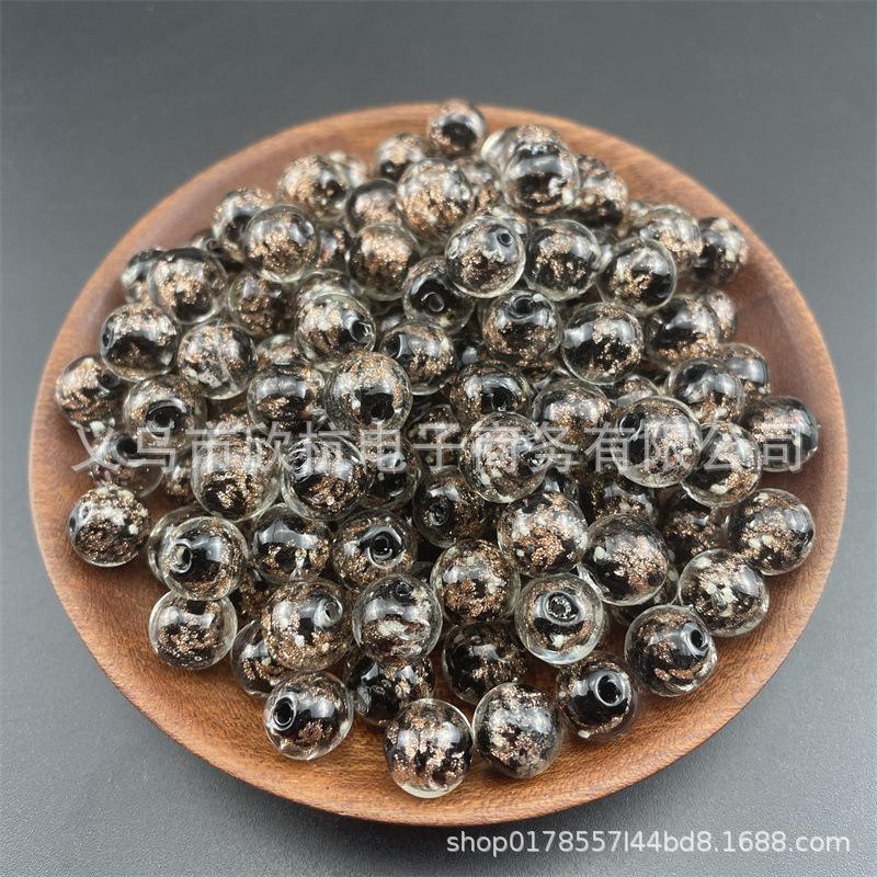 Cuentas Sueltas de Cuentas de Vidrio de Arena Dorada Luminosa de 10 mm