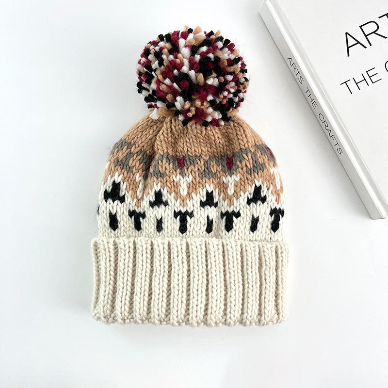 Gorro de lana cálido para mujer, para otoño e invierno, con protección para los oídos, estilo coreano, para el frío, para estudiantes, bonito gorro de punto con bola de pelo.