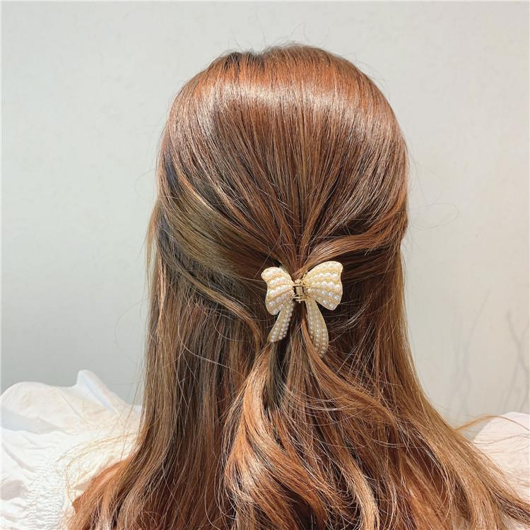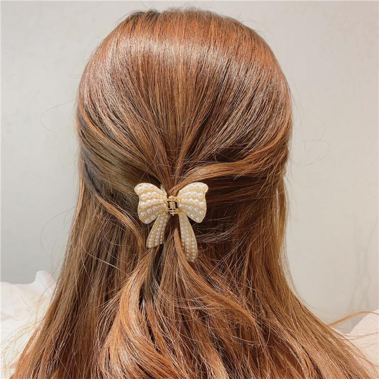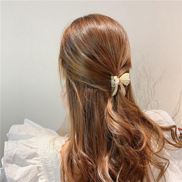 Pinza Pequeña de Perla de Lazo Coreano para Recoger Cabello Parte Trasera Clip para Cabello Rojo de Internet Accesorios para el Cabello