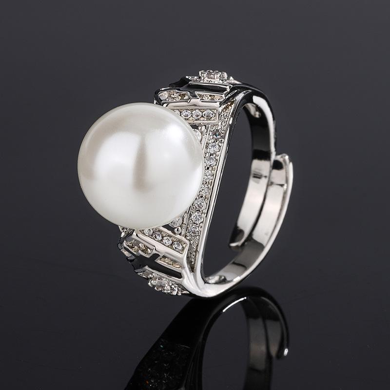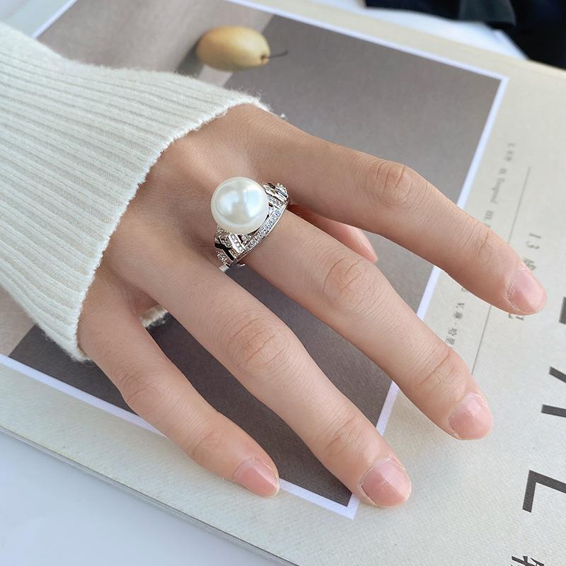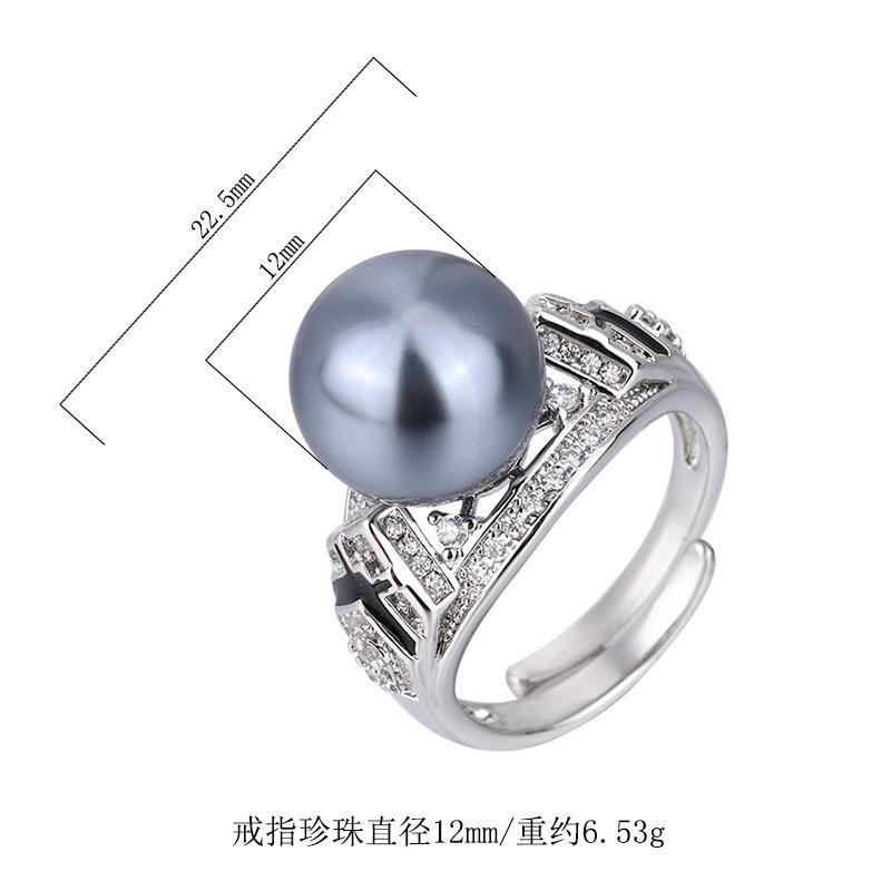 Anillo de diamantes de moda con perla chapada en oro y fondo de cobre de 12 mm, nuevo modelo Zhuangshang 2023