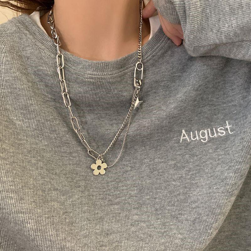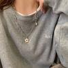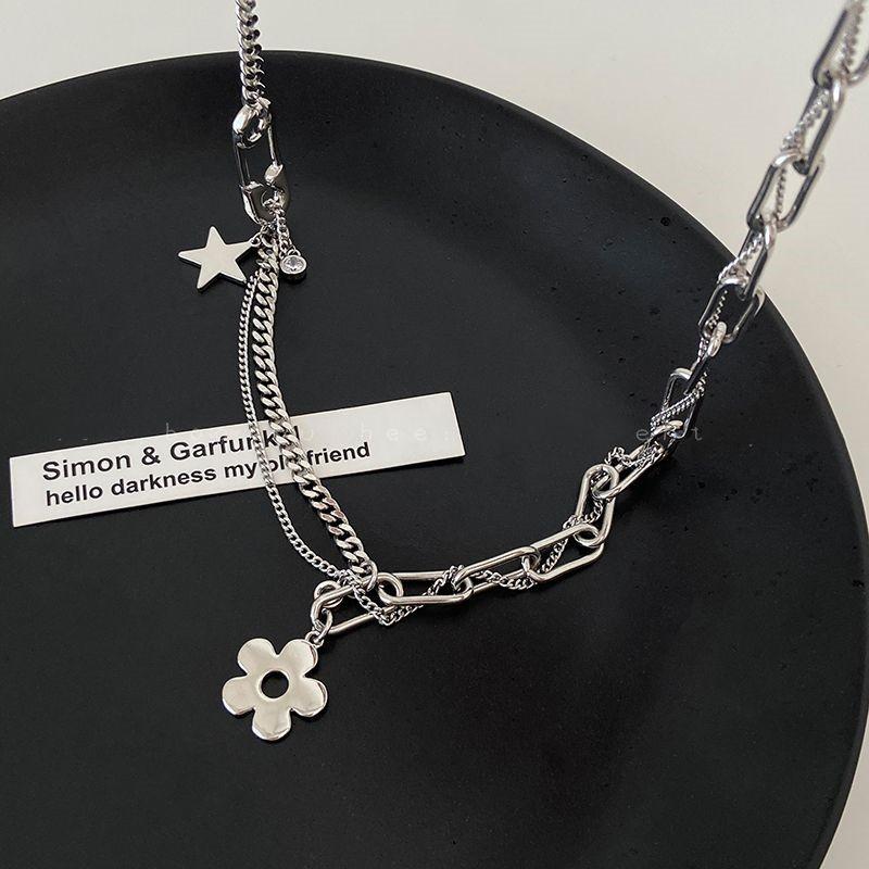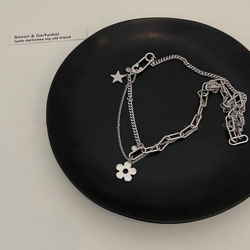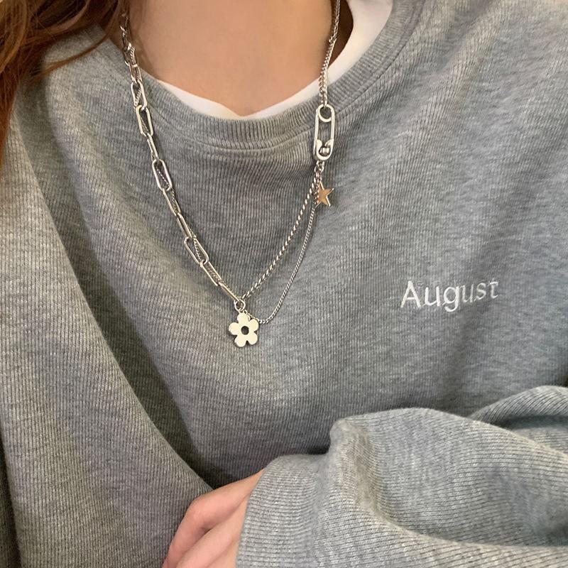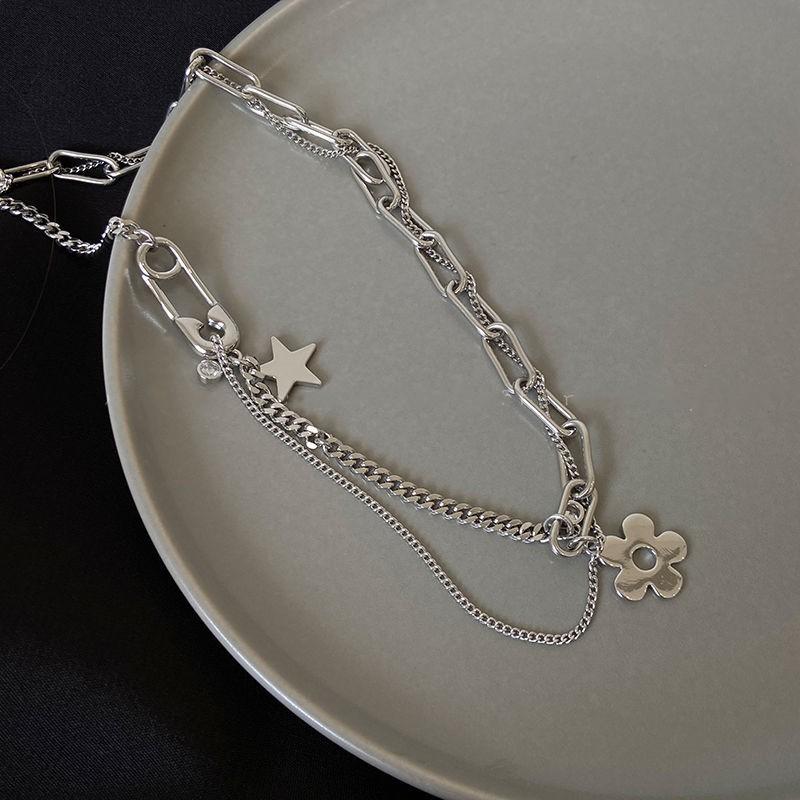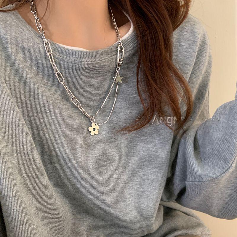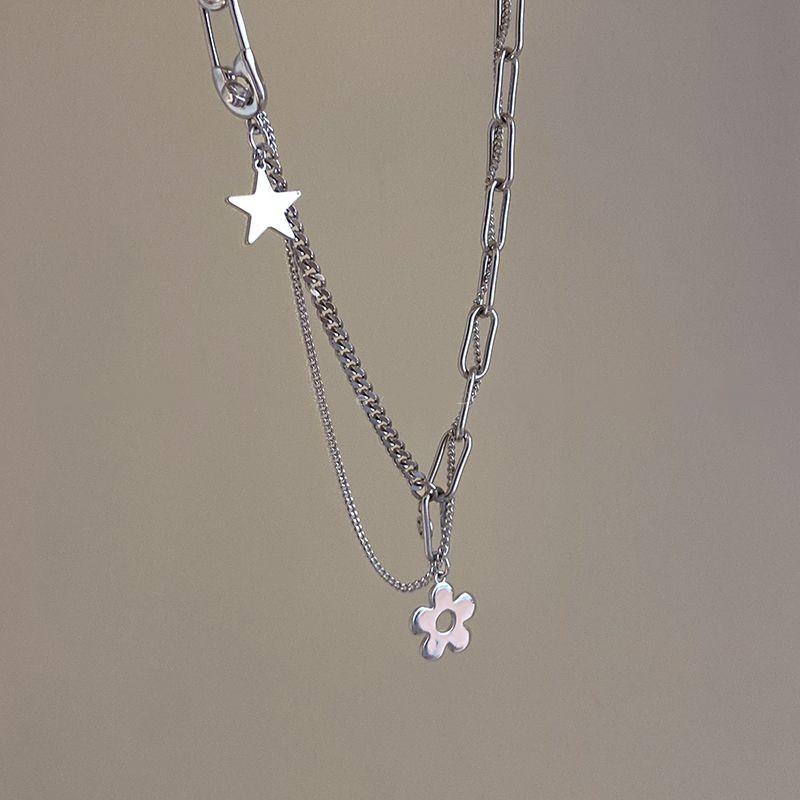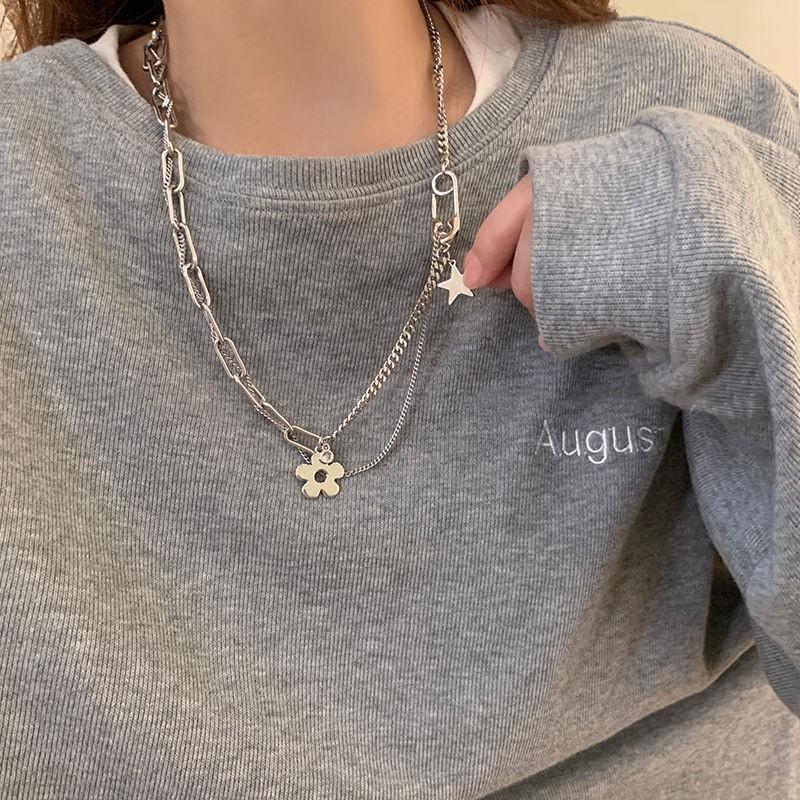 Collar de metal con costura de flores y estrellas para mujer, cadena de suéter dulce y fresca con personalidad de otoño e invierno 2023, nuevo diseño de collar con sentido