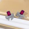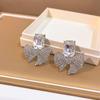 Pendientes de plata con microincrustaciones de diamante y circonita, elegantes y exagerados, con lazo, de estilo europeo y americano, ligeros, de lujo y a la moda, para mujer.