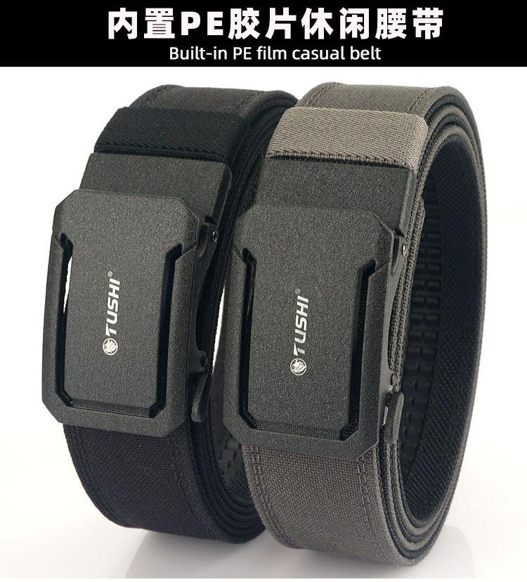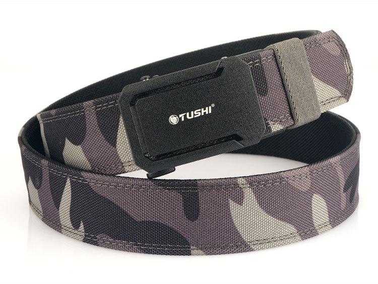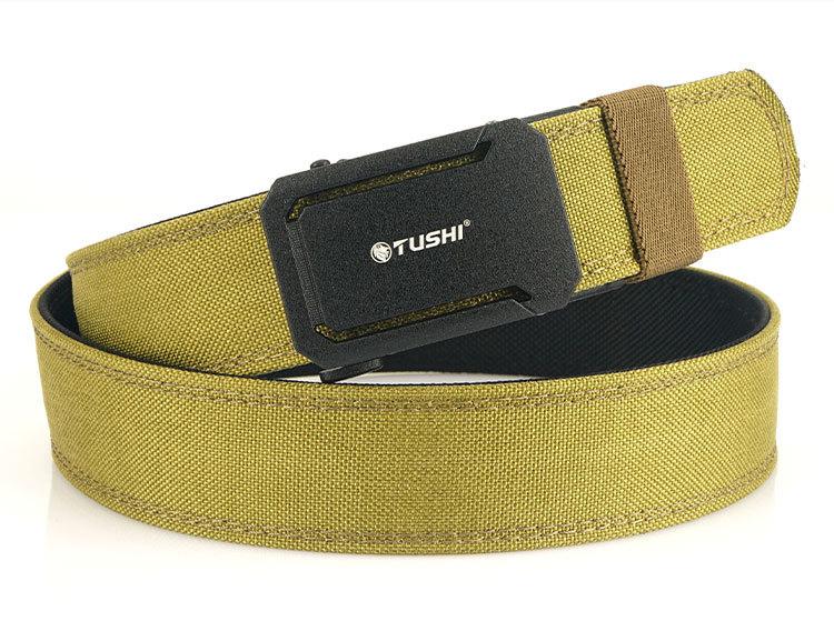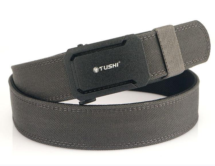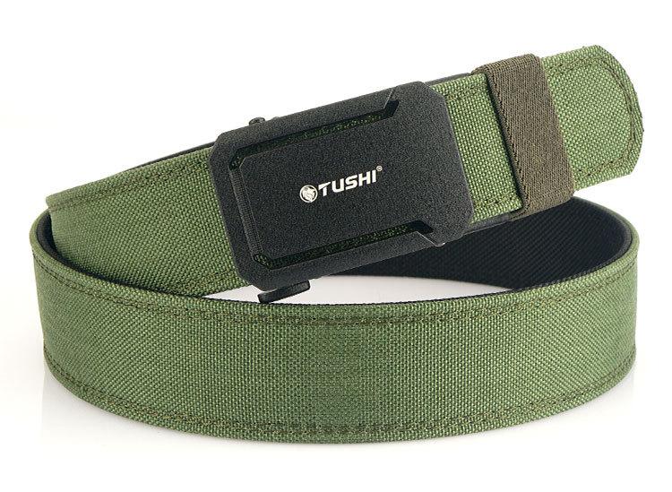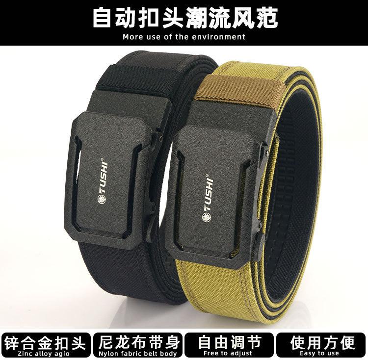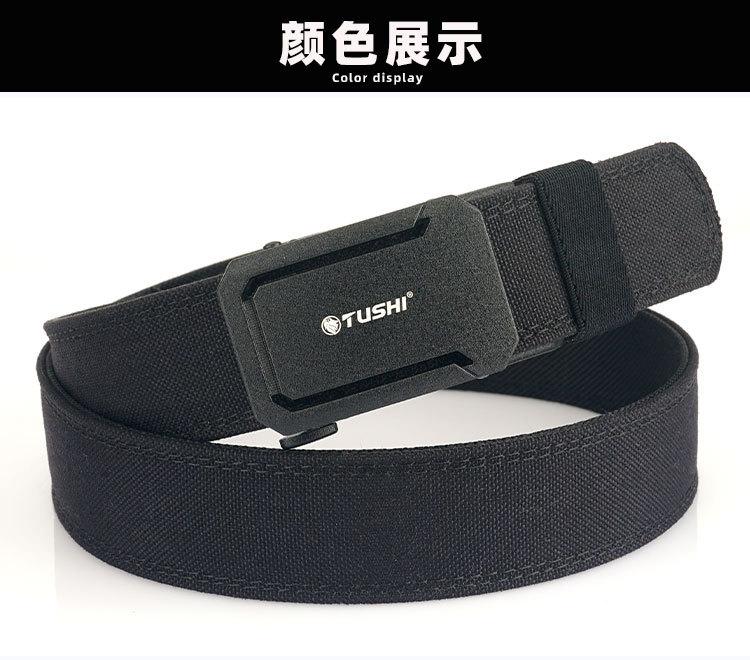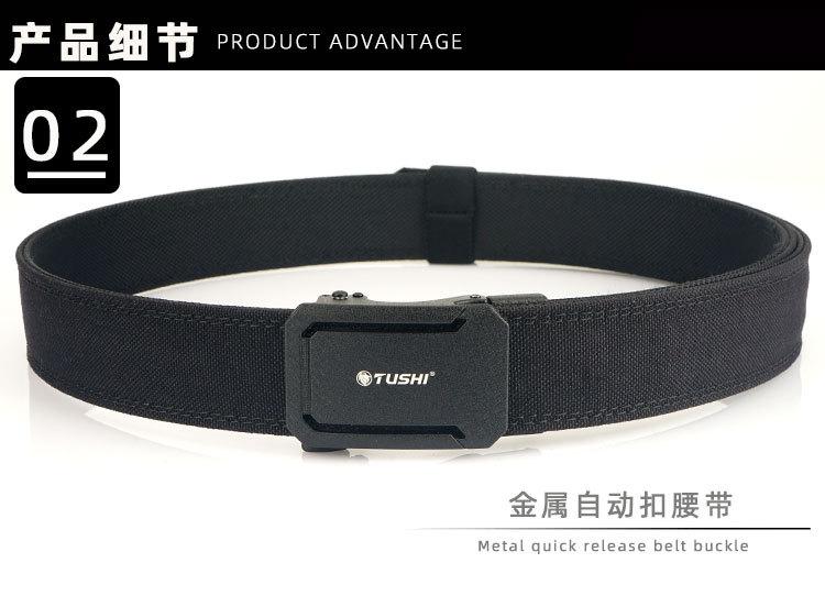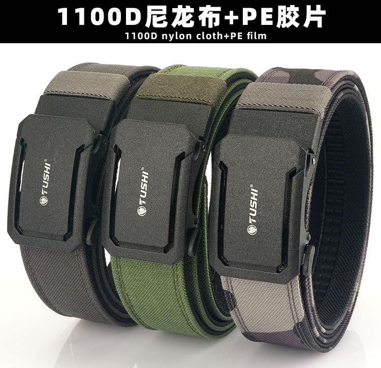 Cinturón táctico engrosado de doble capa para hombre, estilo militar, de nailon para exteriores, con hebilla automática mejorada de 3,8" para colgar pistola.