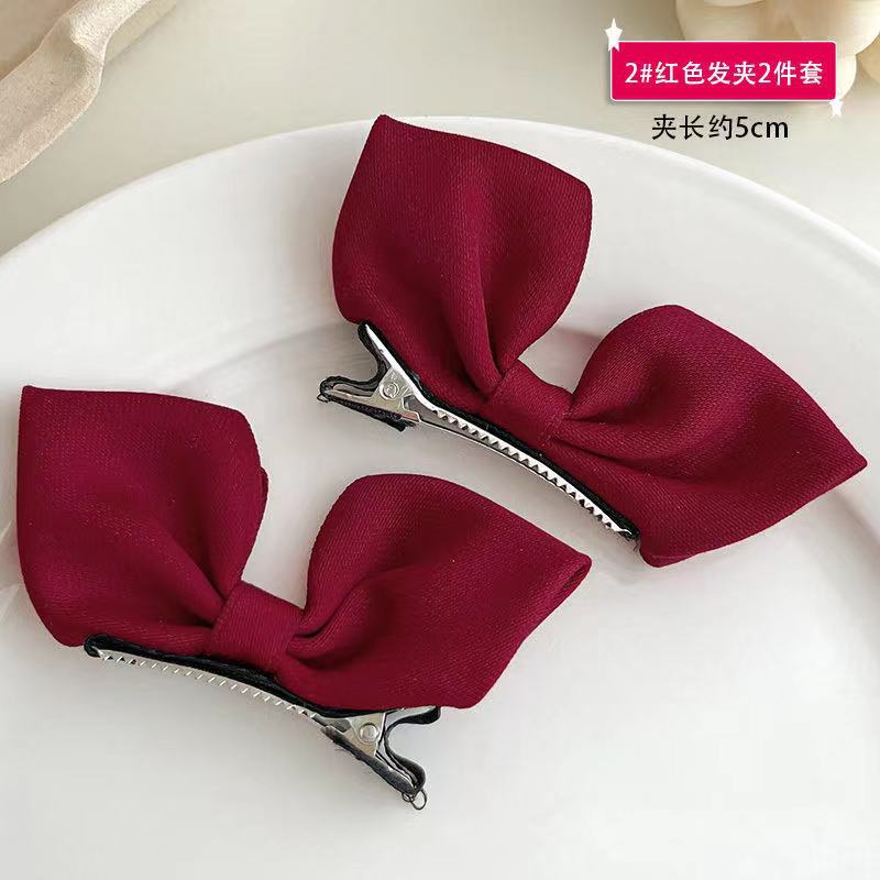 Horquilla de lazo de estilo coreano para niña, tela tridimensional plisada, linda princesa pequeña roja, accesorios para el cabello con clip lateral
