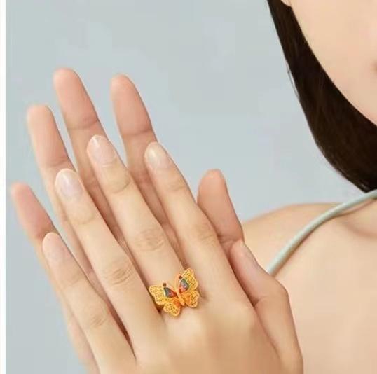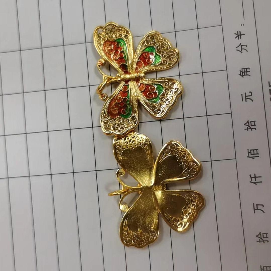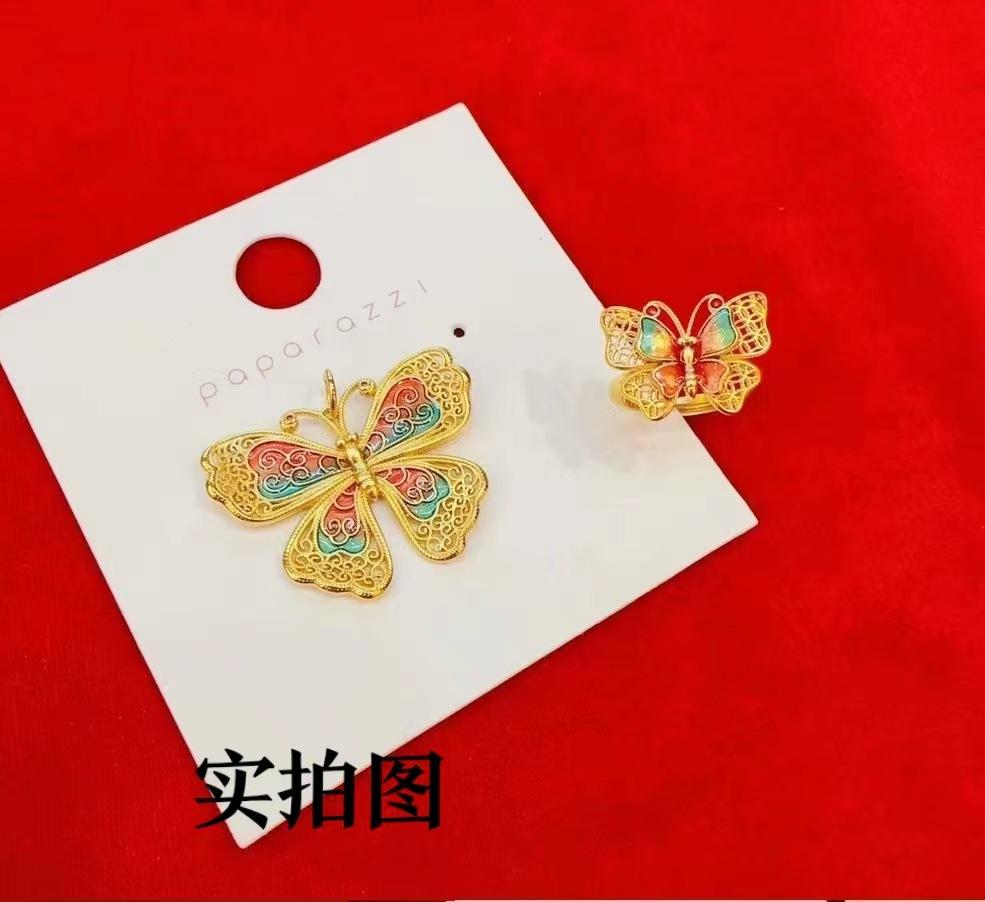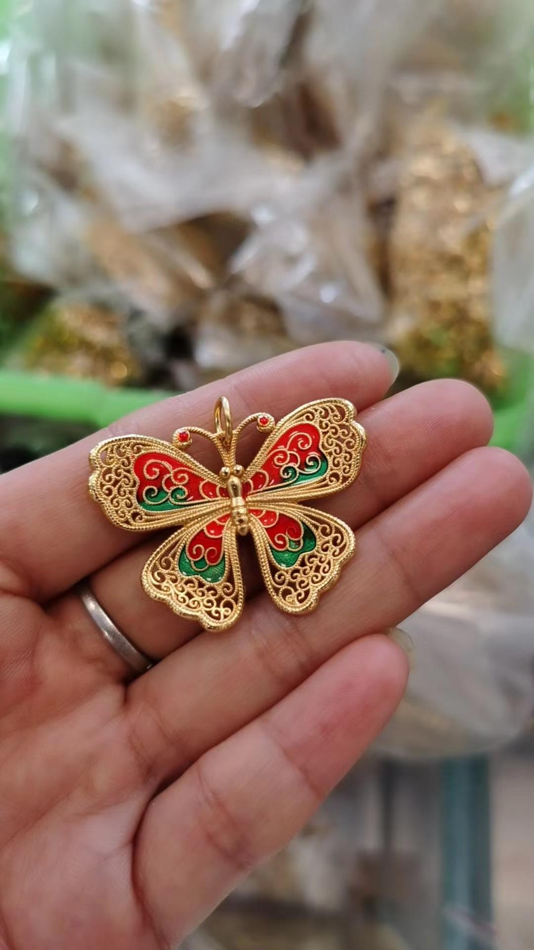 Conjunto de colgante de anillo con mariposa de esmalte de filigrana, color dorado, con método antiguo de marea nacional, serie de mariposas huecas, collar colgante