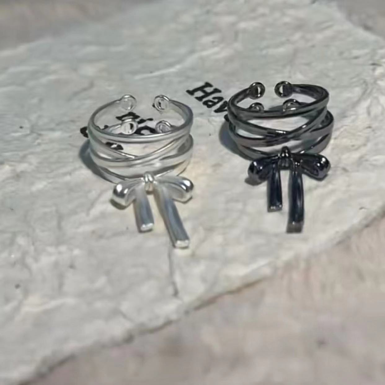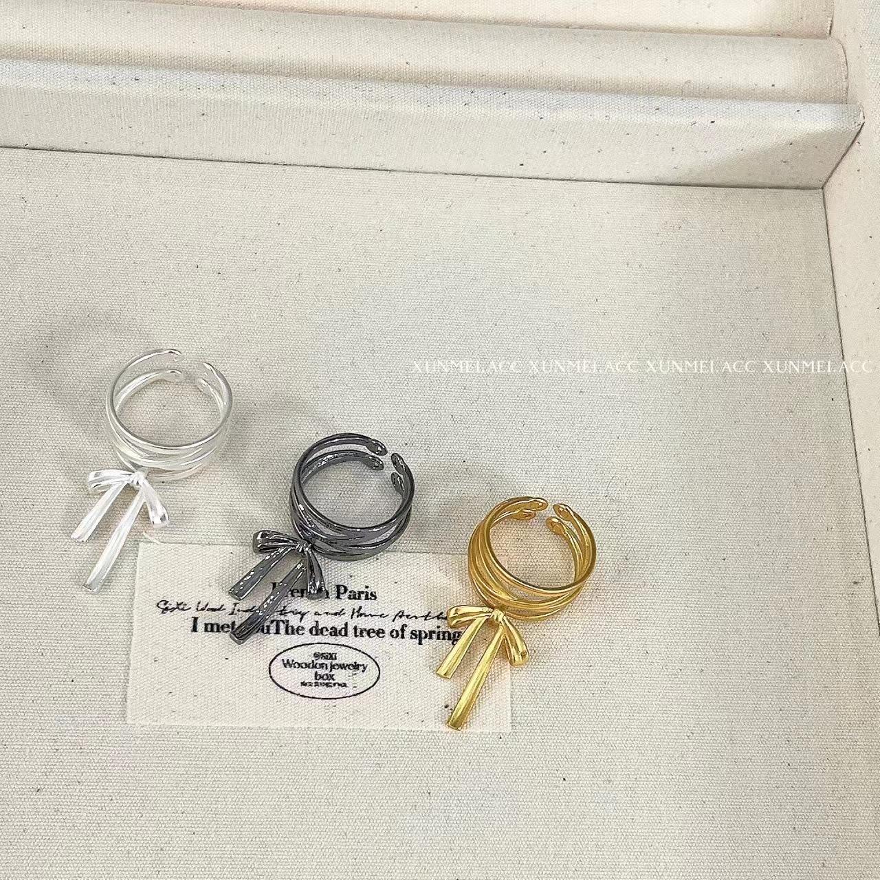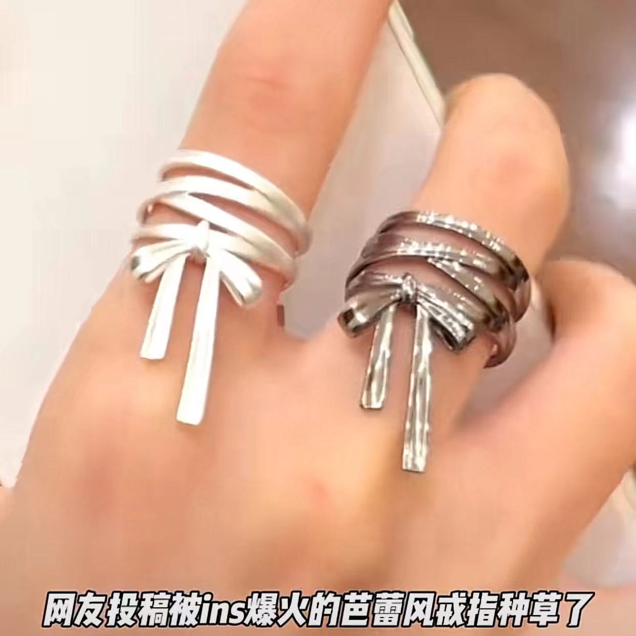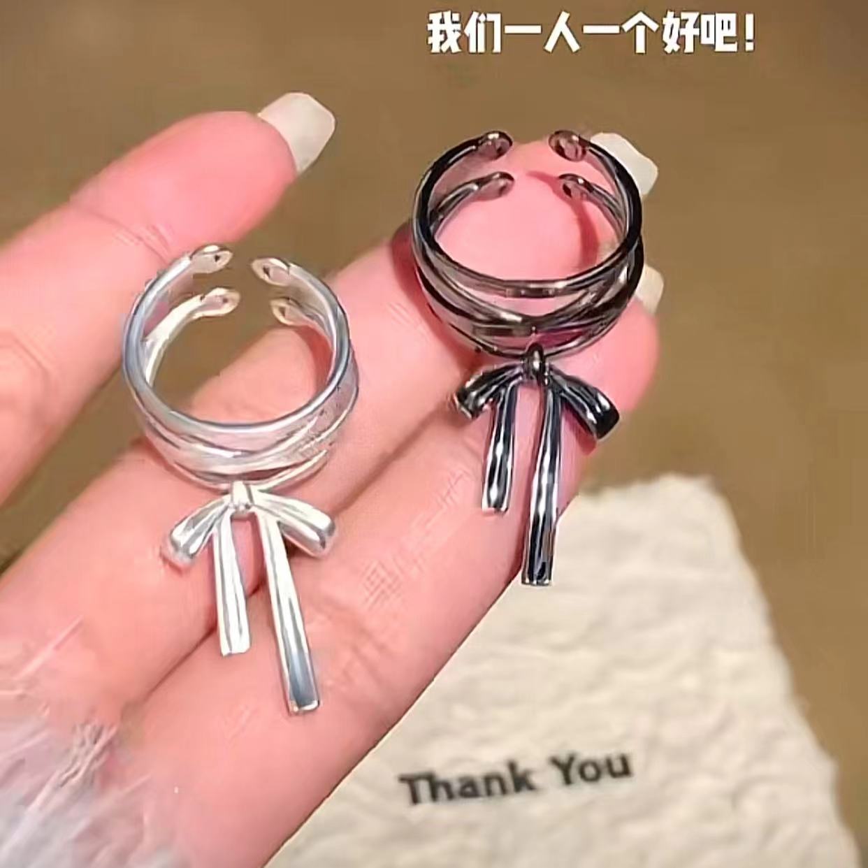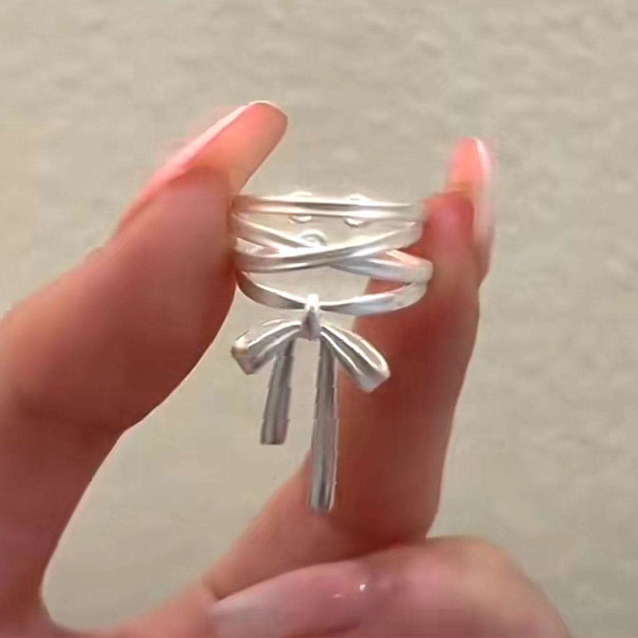 Anillo Abierto con Lazo de Cinta Diseño Nicho Femenino Ajustable Anillo para Dedo Índice Único Anillo de Celebridad de Internet Tendencia