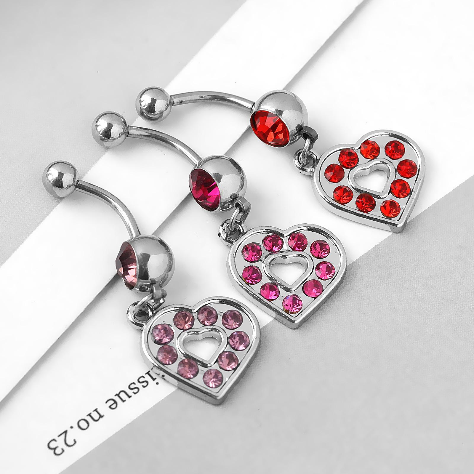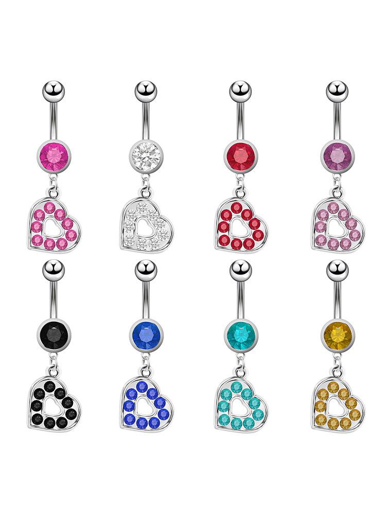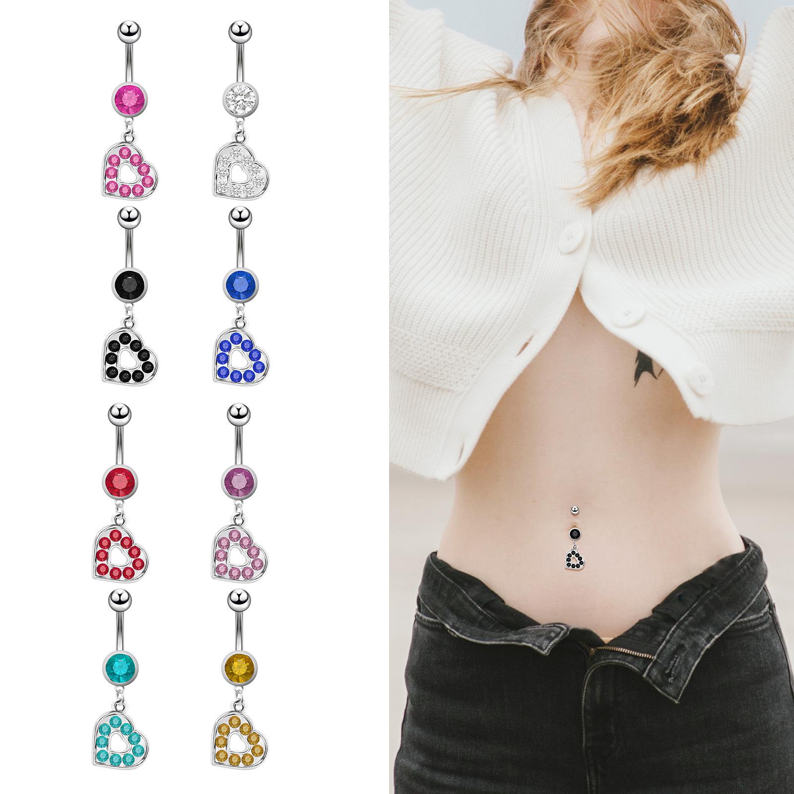 Venta directa de fábrica de joyería para piercing de ombligo con hebilla de ombligo con incrustaciones de diamantes, estilo europeo y americano, con forma de corazón, creativo