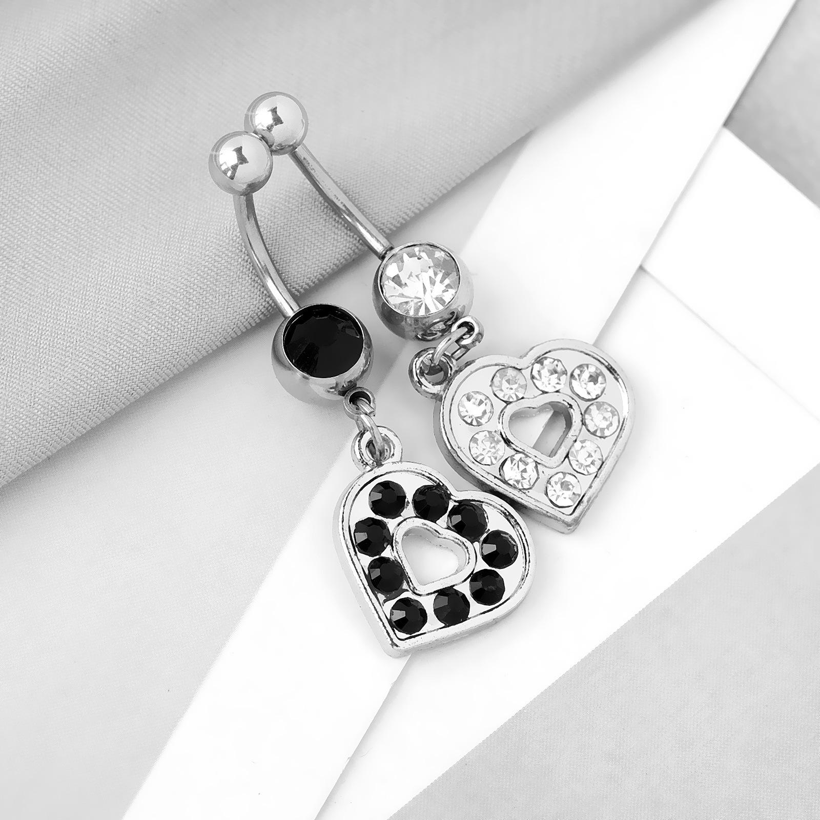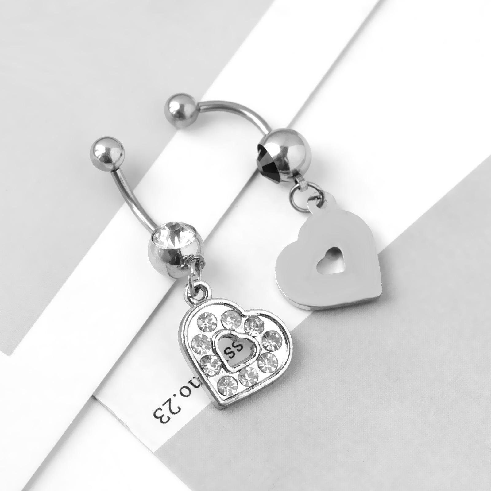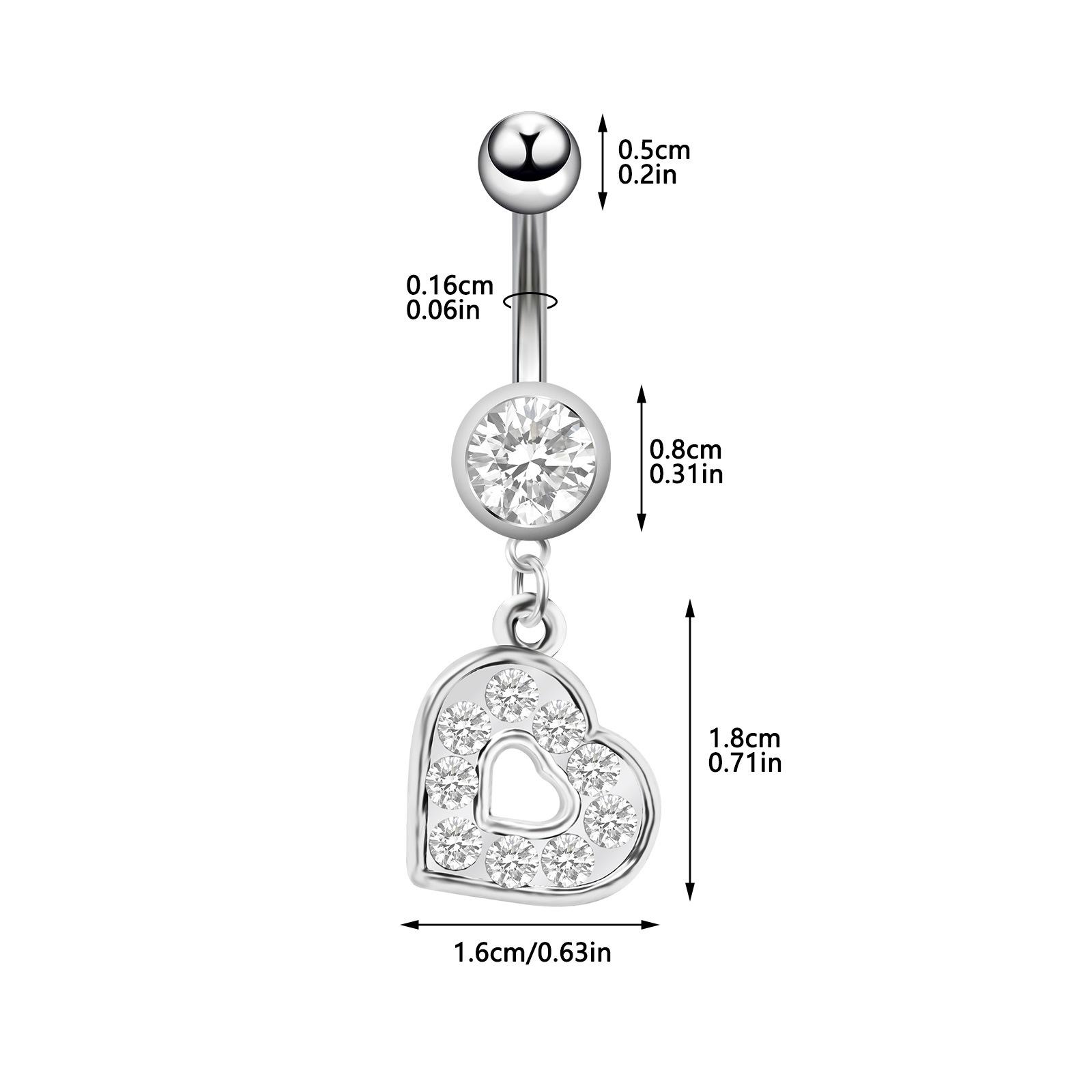 Venta directa de fábrica de joyería para piercing de ombligo con hebilla de ombligo con incrustaciones de diamantes, estilo europeo y americano, con forma de corazón, creativo