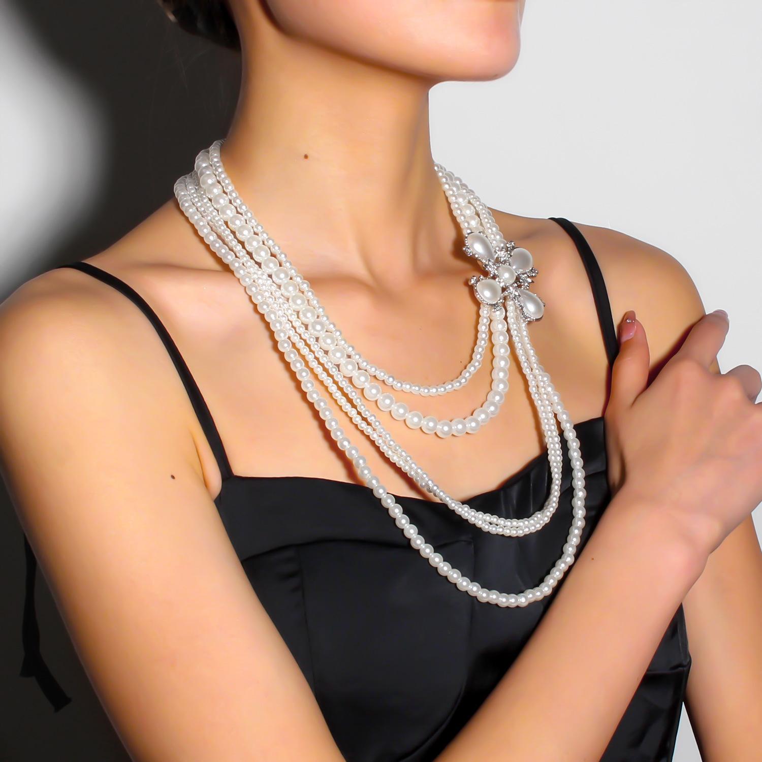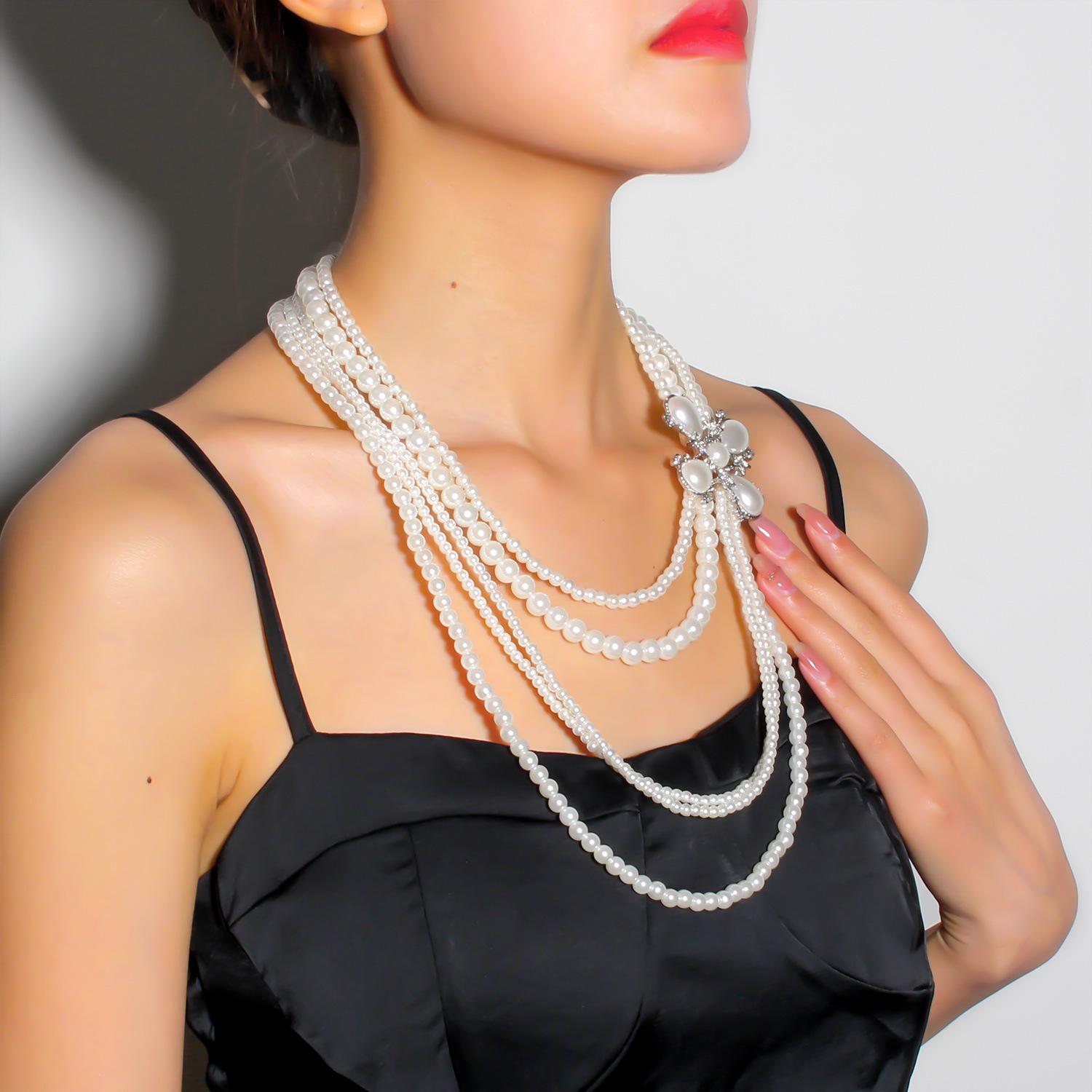 Collar largo de perlas multicapa estilo retro europeo y americano, cadena de perlas NK23630