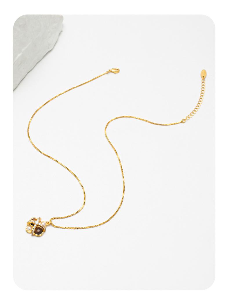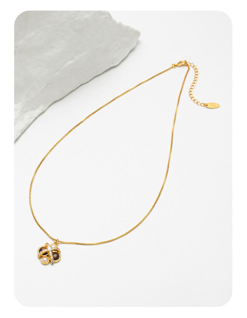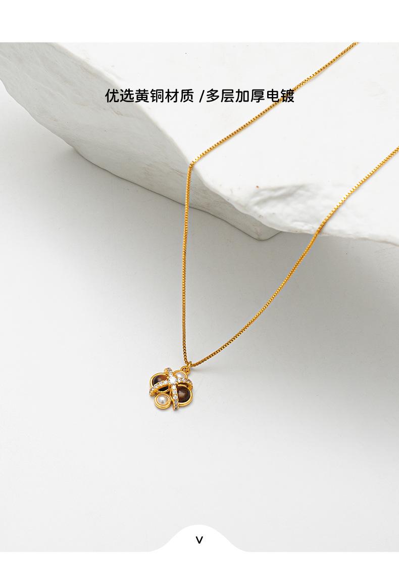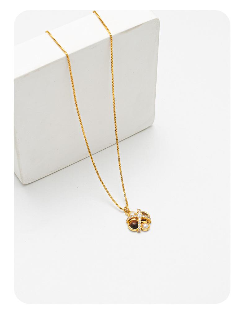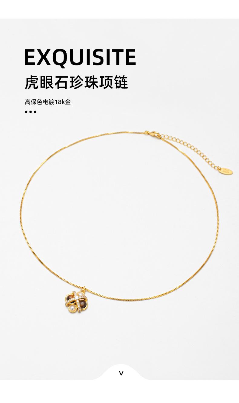 Collar estilo Maillard con piedra de ojo de tigre para mujer, colgante de perla y circonita, cadena de clavícula, collar de temperamento simple que combina con todo para mujer.