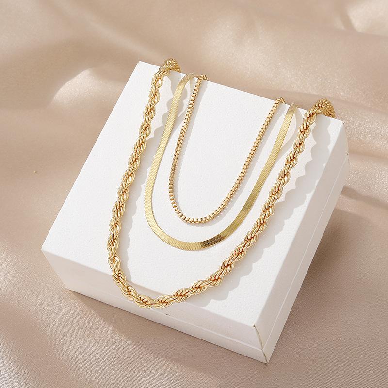Europeo y Americano transfronterizo AliExpress nueva moda simple giro dorado traje de 3 piezas collar collar joyería fábrica ventas directas
