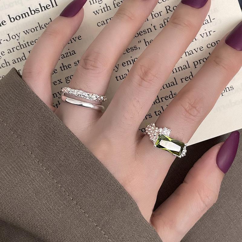 Anillo de Doble Capa con Textura de Ritmo Estilo Coreano para Mujer, Moderno, Simple, Elegante, Diseño Nicho, Versátil, Avanzado, Abierto