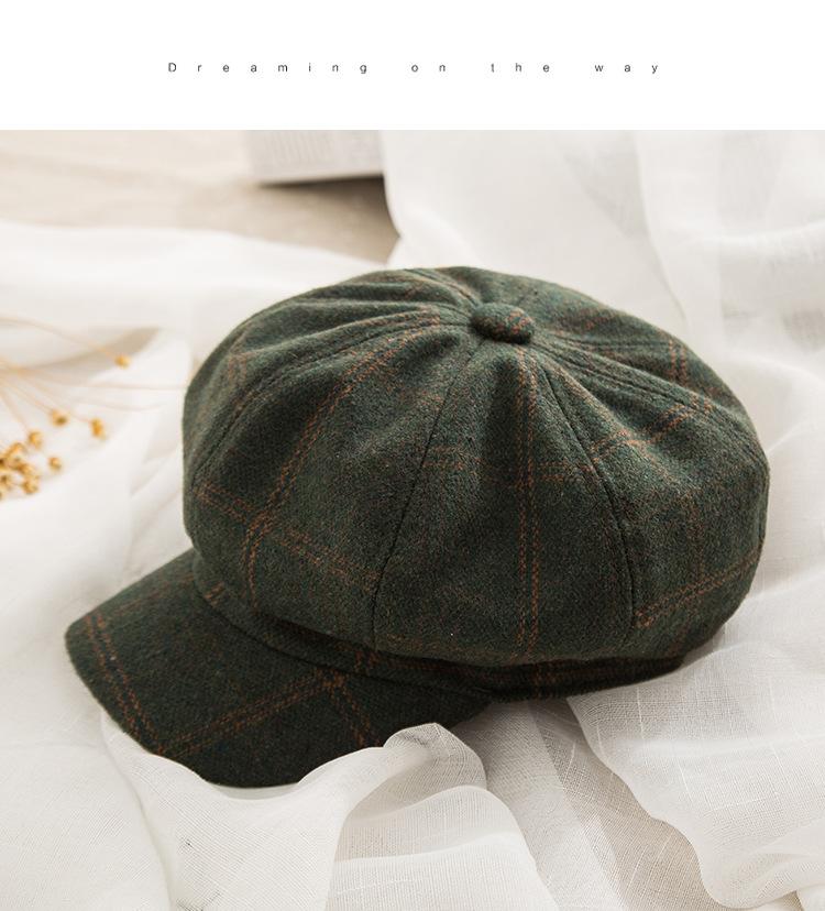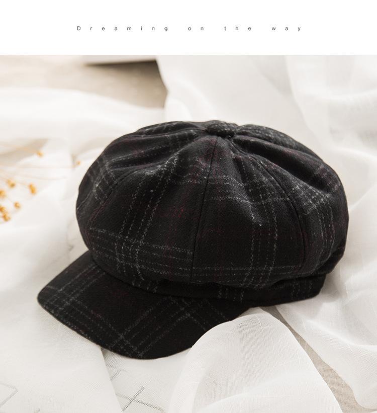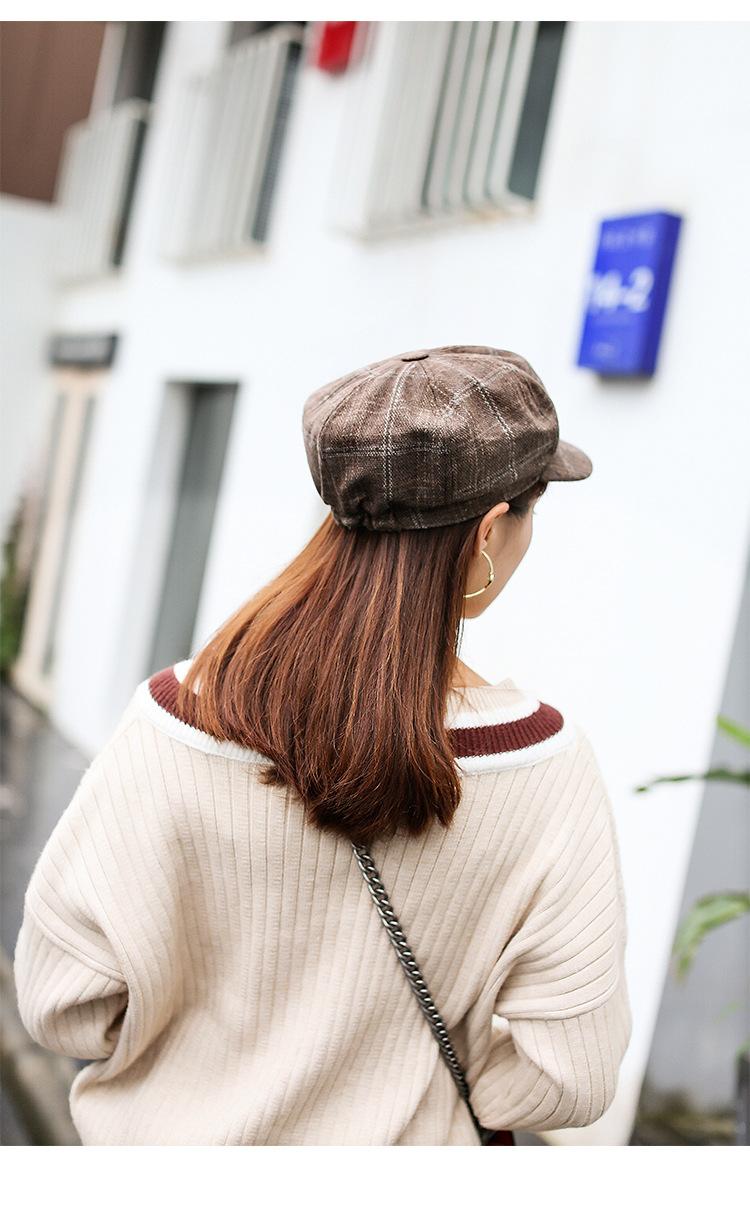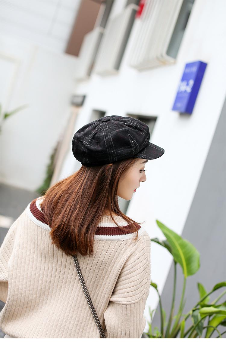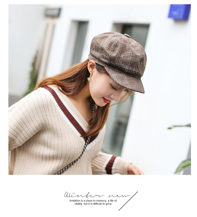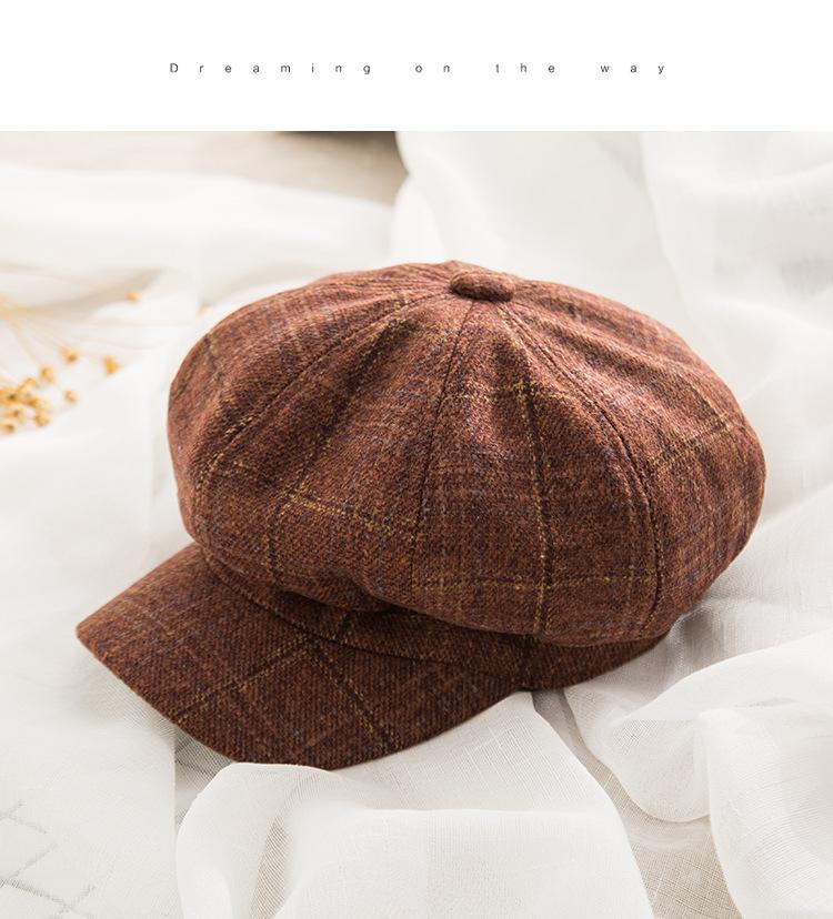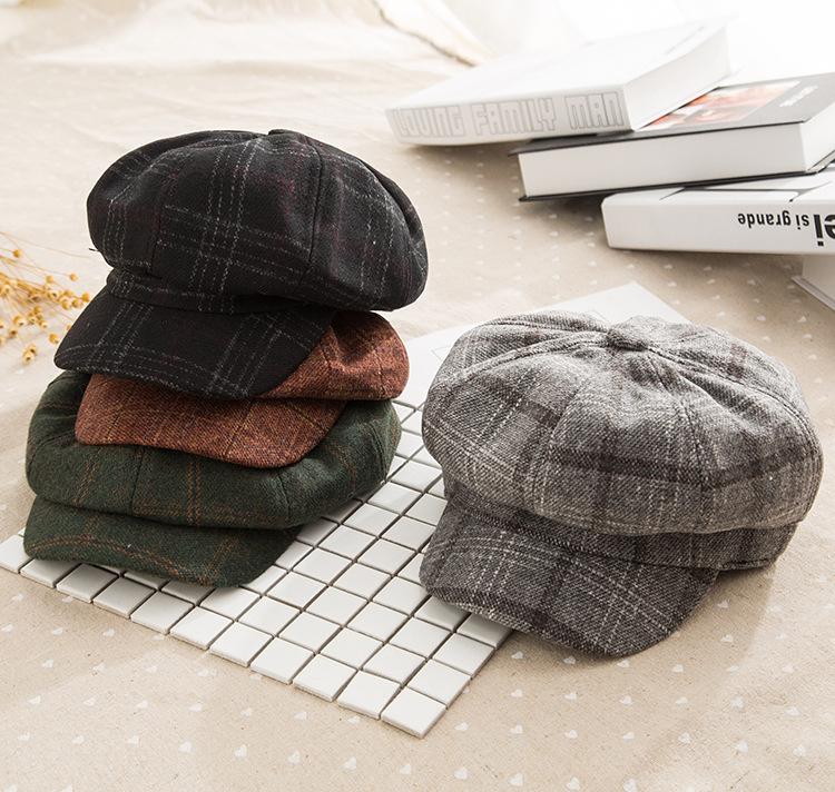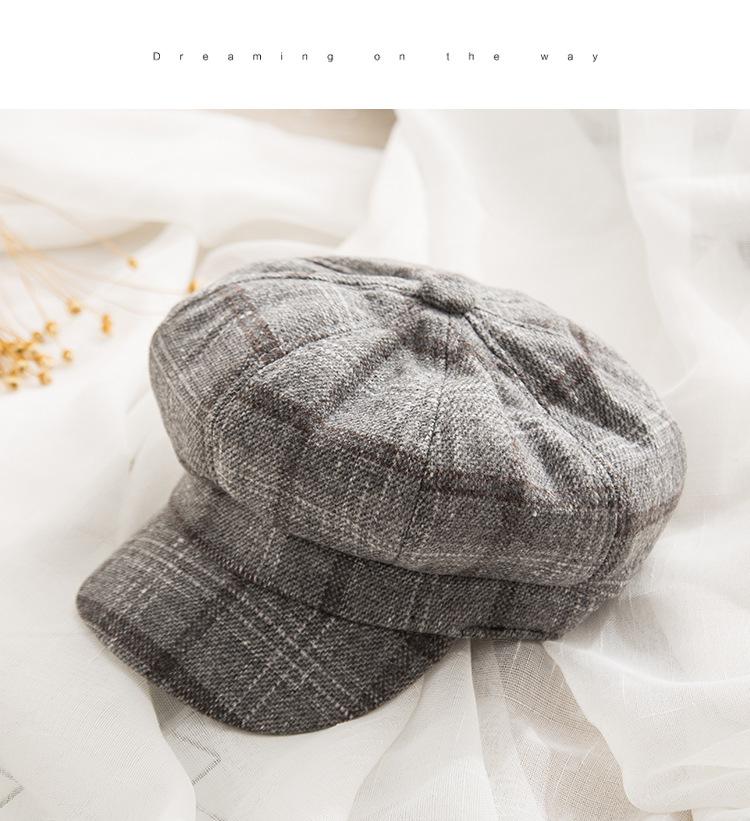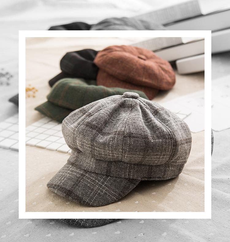 Boina de cuadros transfronteriza para mujer Otoño e Invierno Estilo coreano Japonés Versátil Boina de niña suave Sombrero octogonal británico retro