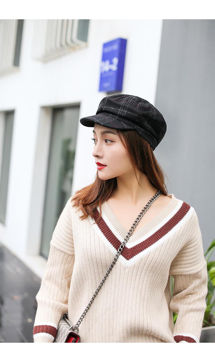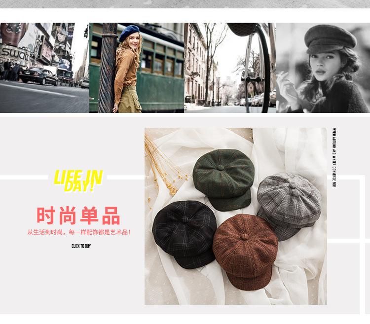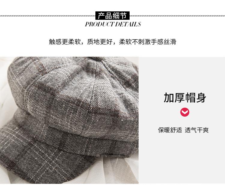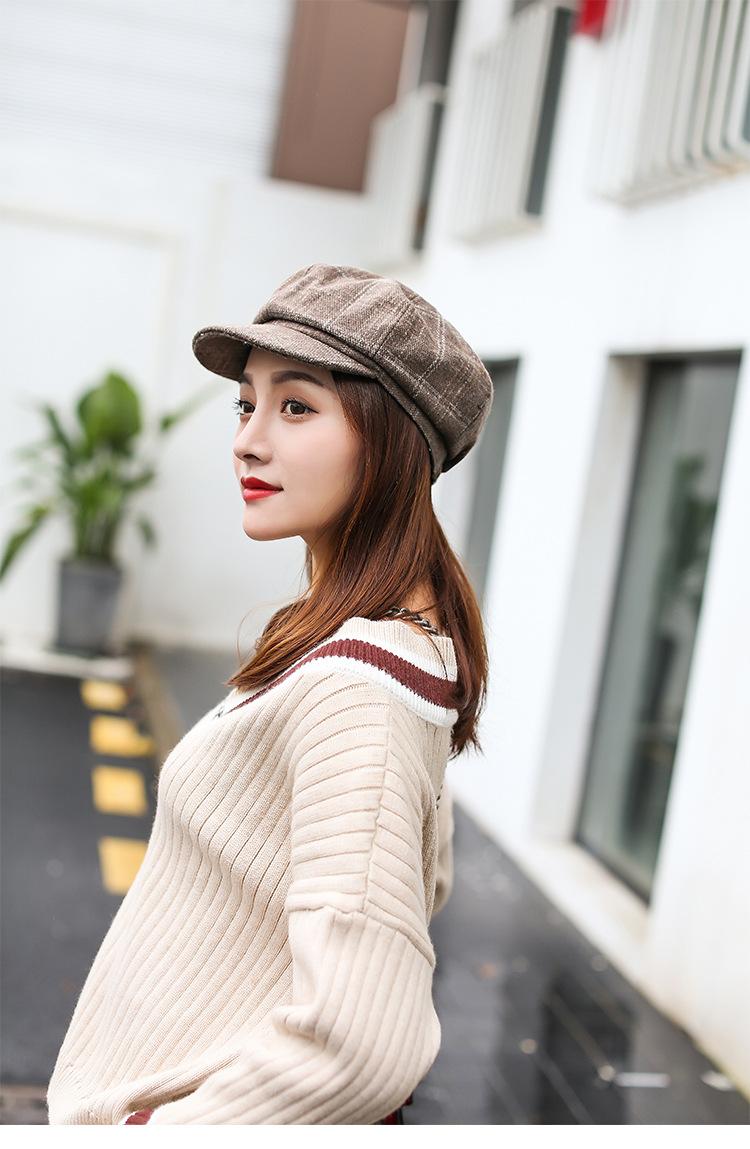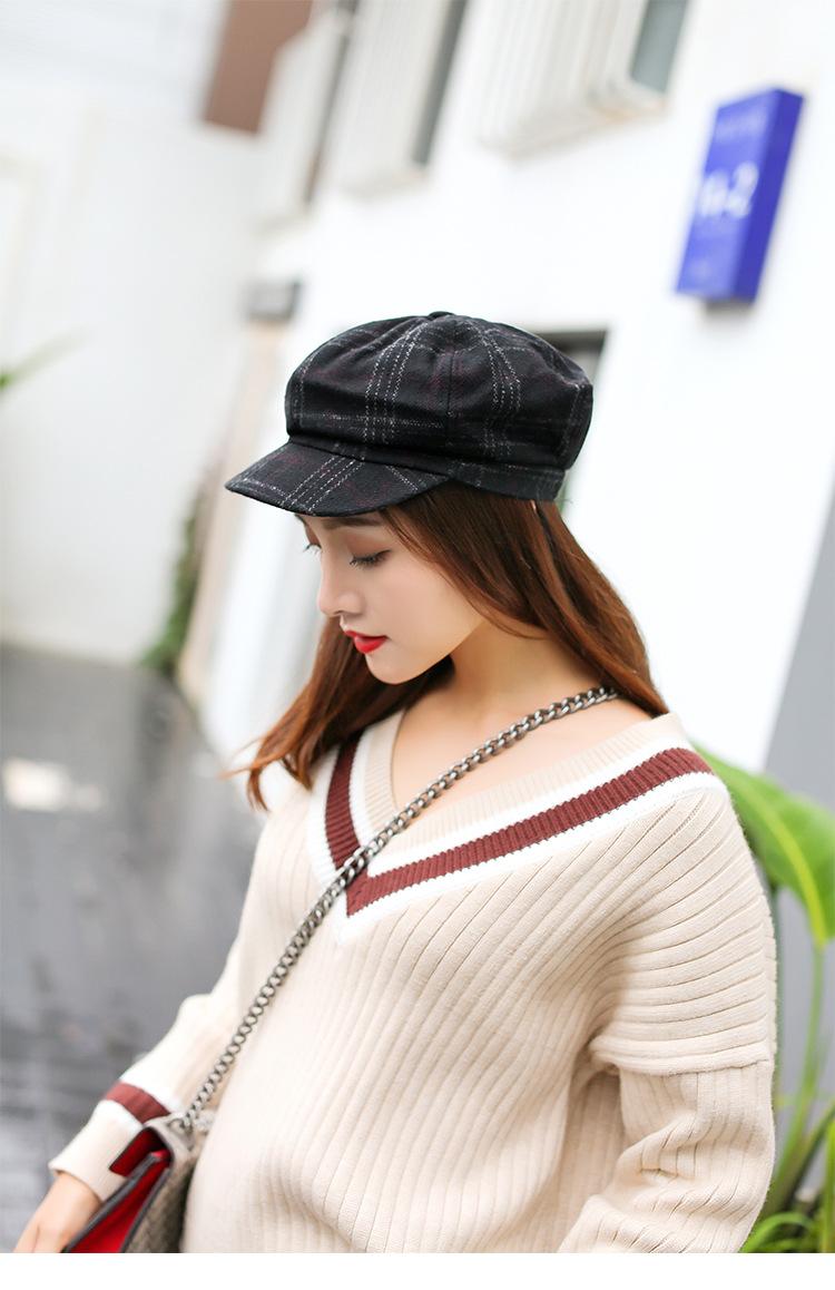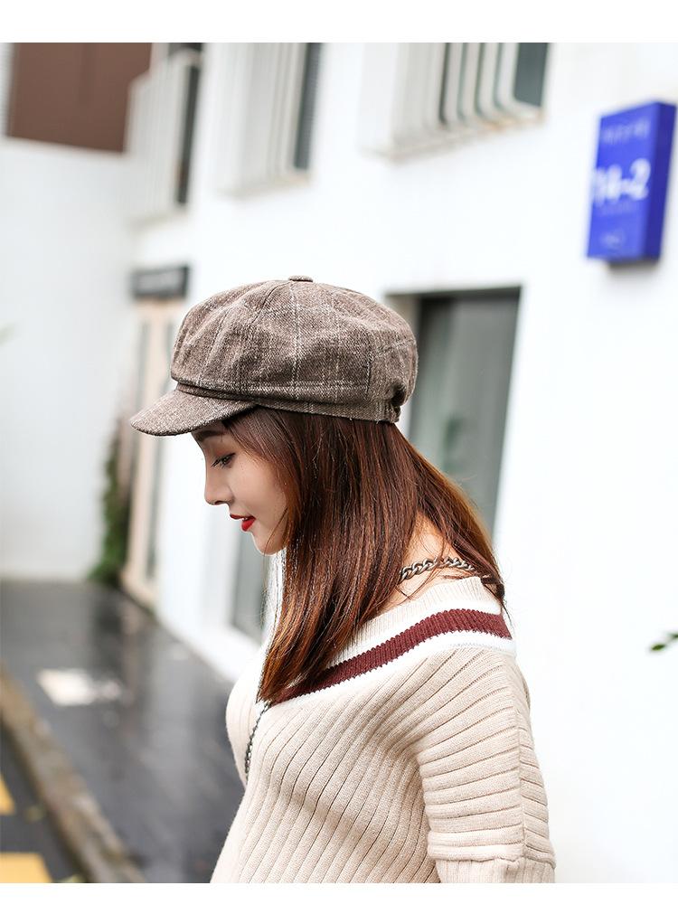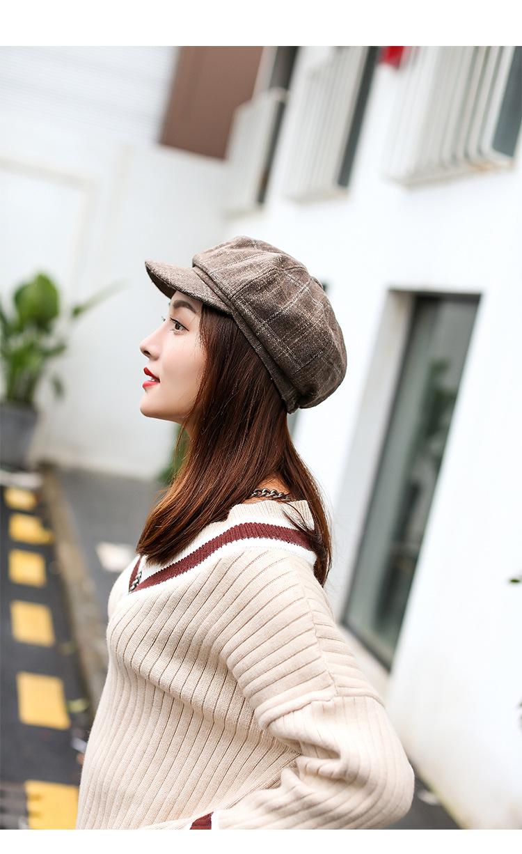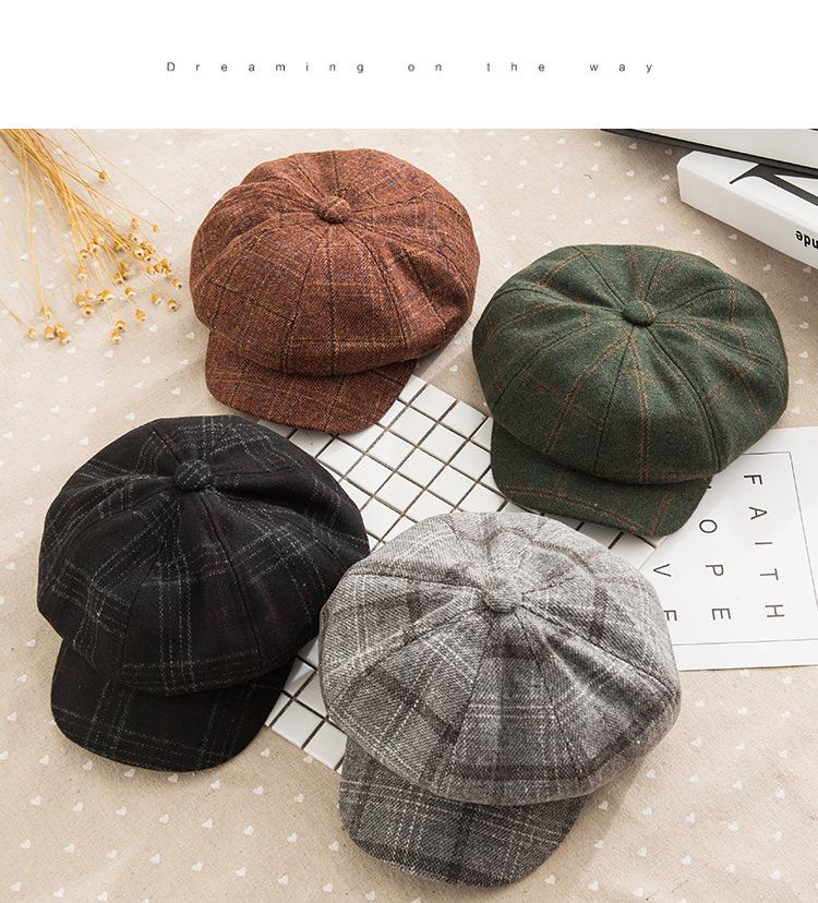 Boina de cuadros transfronteriza para mujer Otoño e Invierno Estilo coreano Japonés Versátil Boina de niña suave Sombrero octogonal británico retro