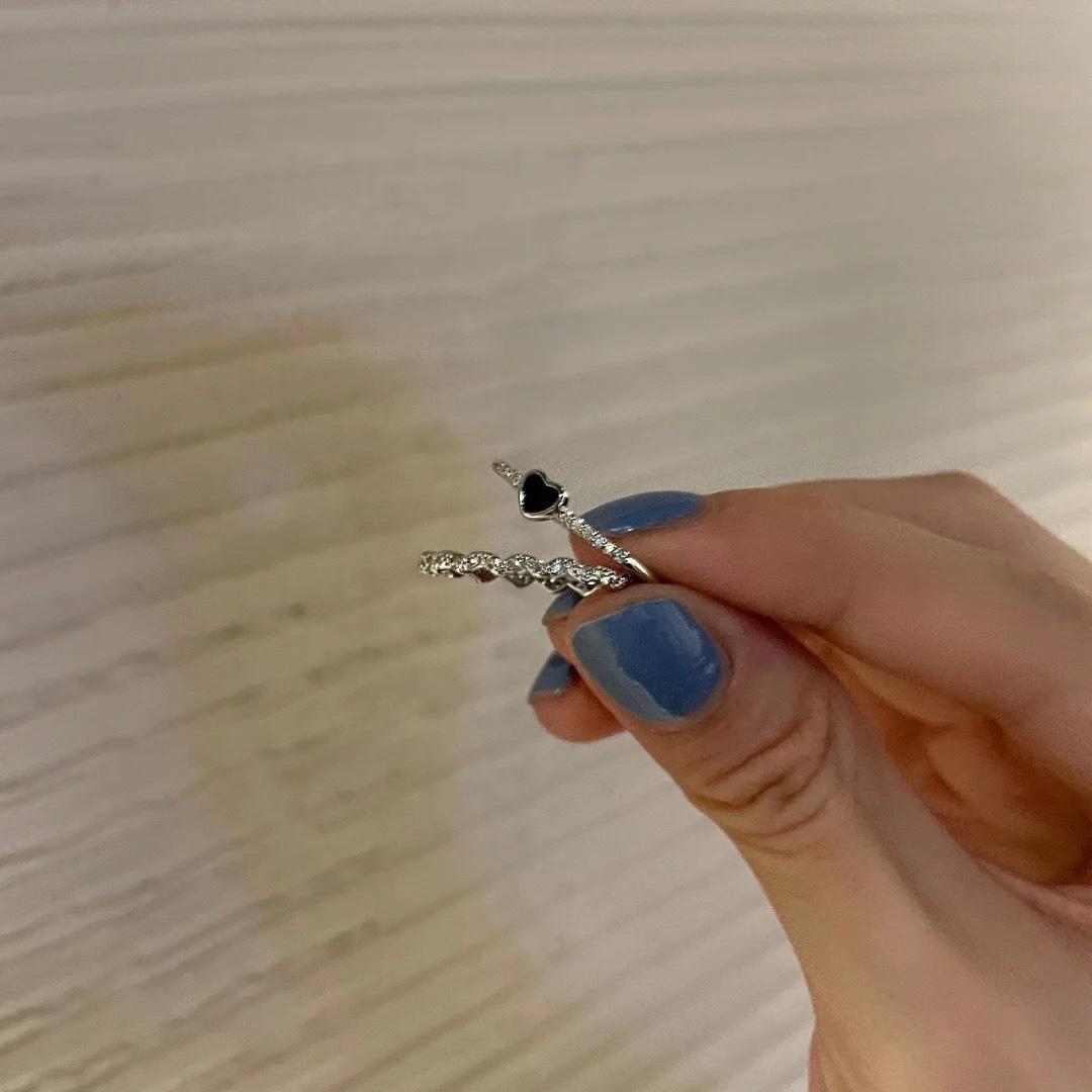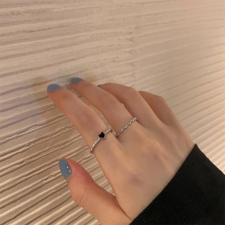 Anillo de amor negro con piedra blanca en forma de gota para mujer, diseño de nicho, estilo frío, ligero, lujoso, para el dedo índice, dulce y fresco.