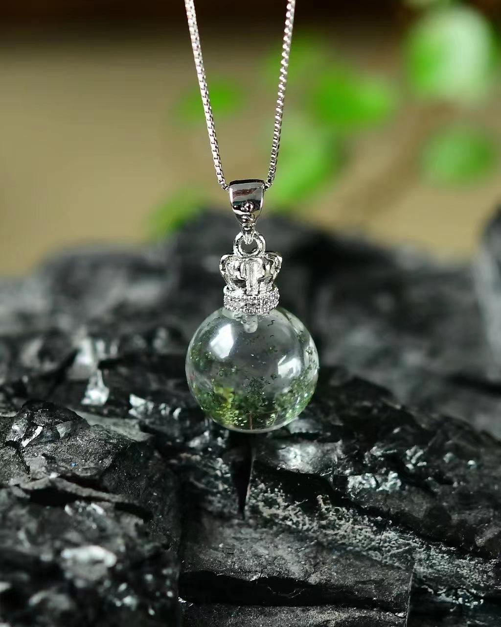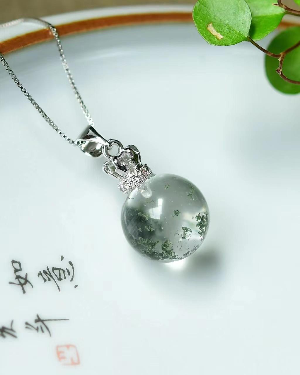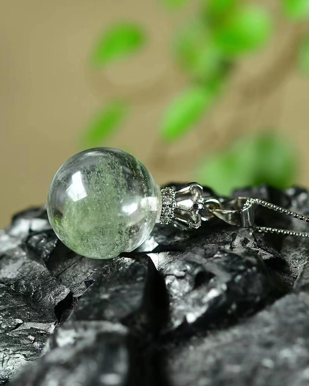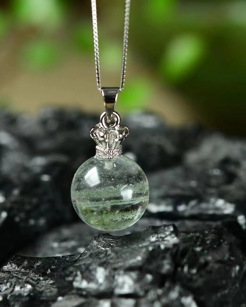 Colgante de bola de cristal con cuentas de la fortuna de mil capas con paisaje fantasma verde, estilo 1 (diámetro aproximado: 14 mm)