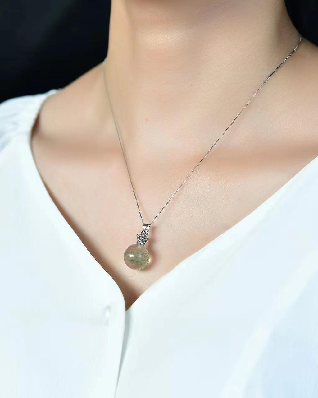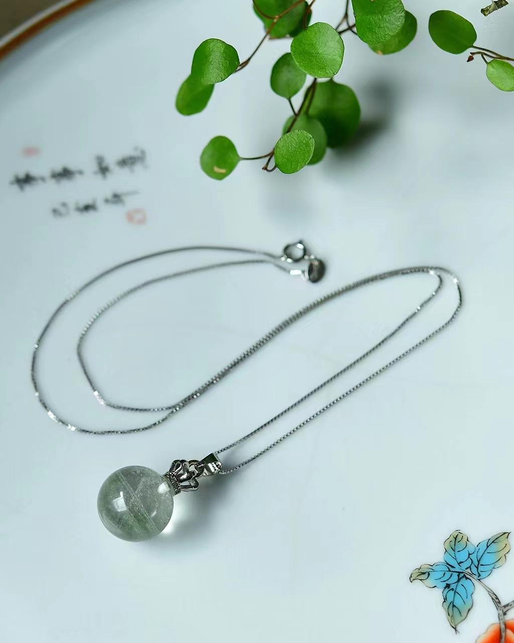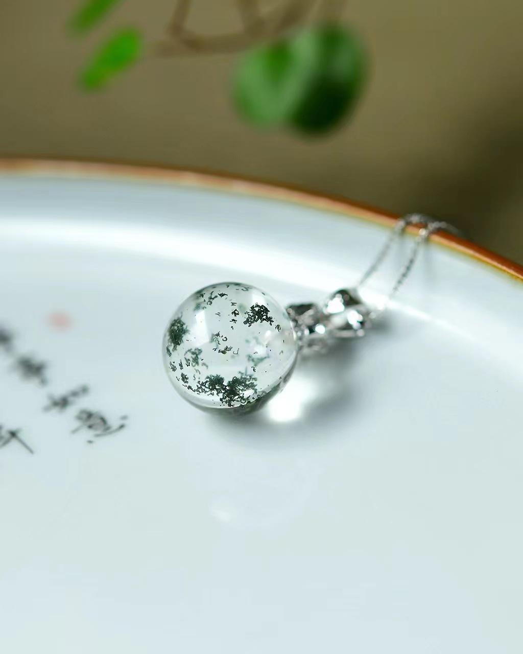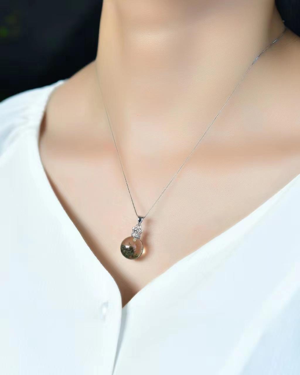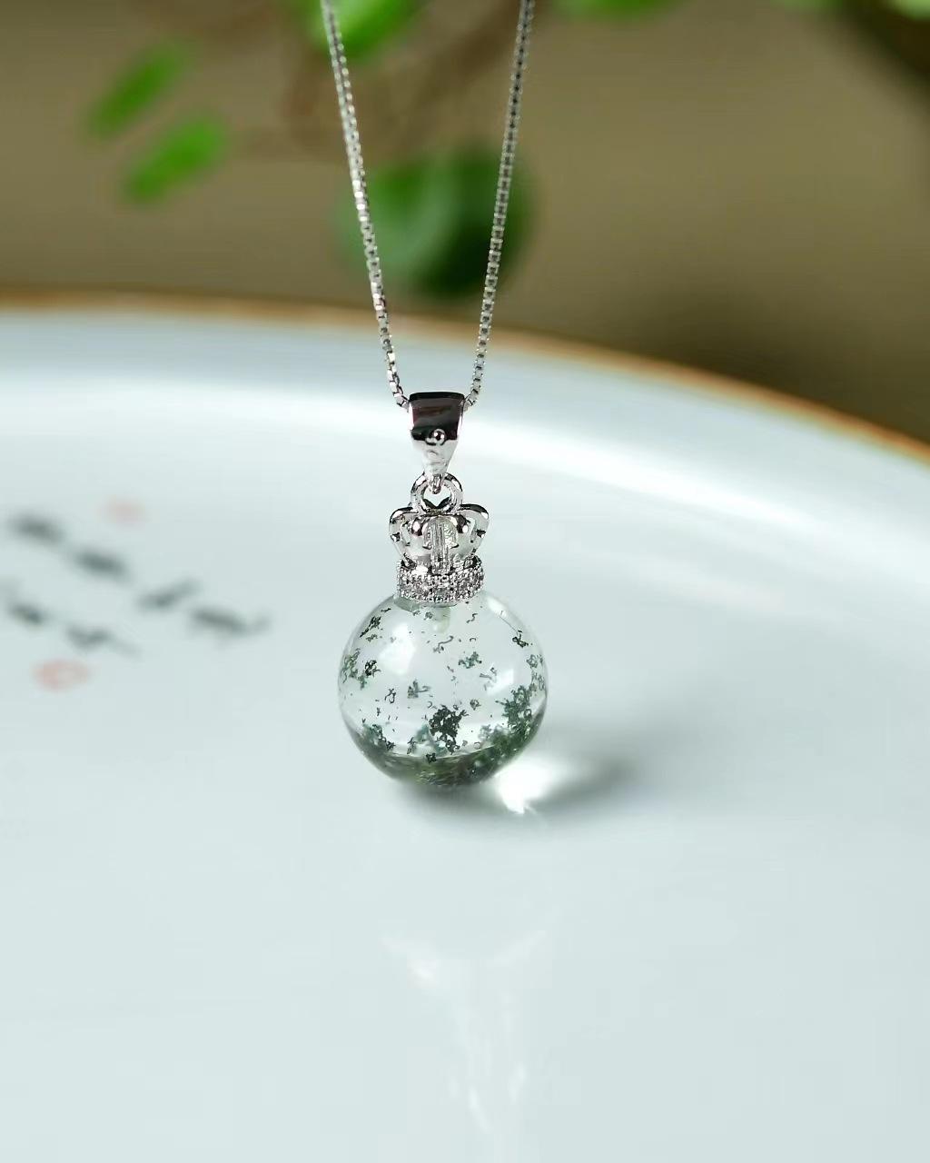 Colgante de bola de cristal con cuentas de la fortuna de mil capas con paisaje fantasma verde, estilo 1 (diámetro aproximado: 14 mm)