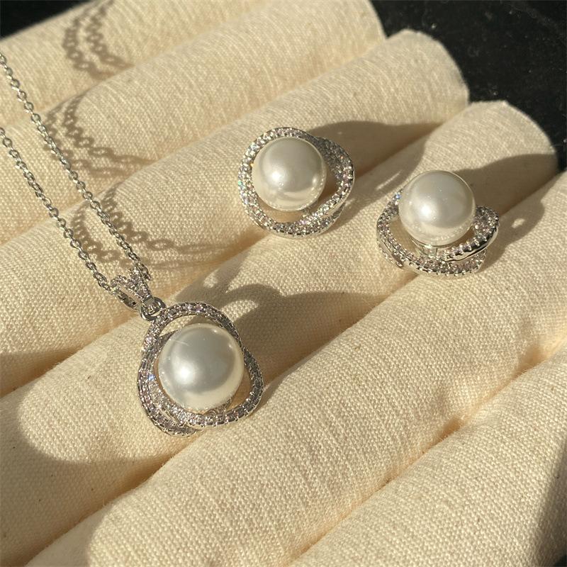 Pendientes de tuerca de circón y perla en espiral Guliya, collar de nicho de alta calidad, nuevos y populares pendientes de lujo con aguja de plata, joyería