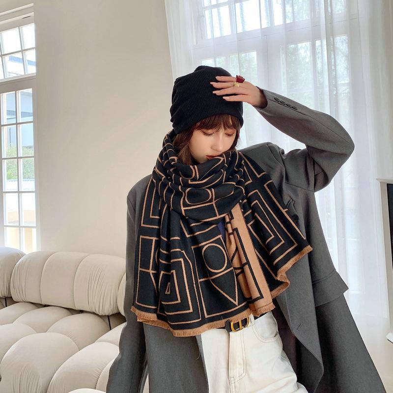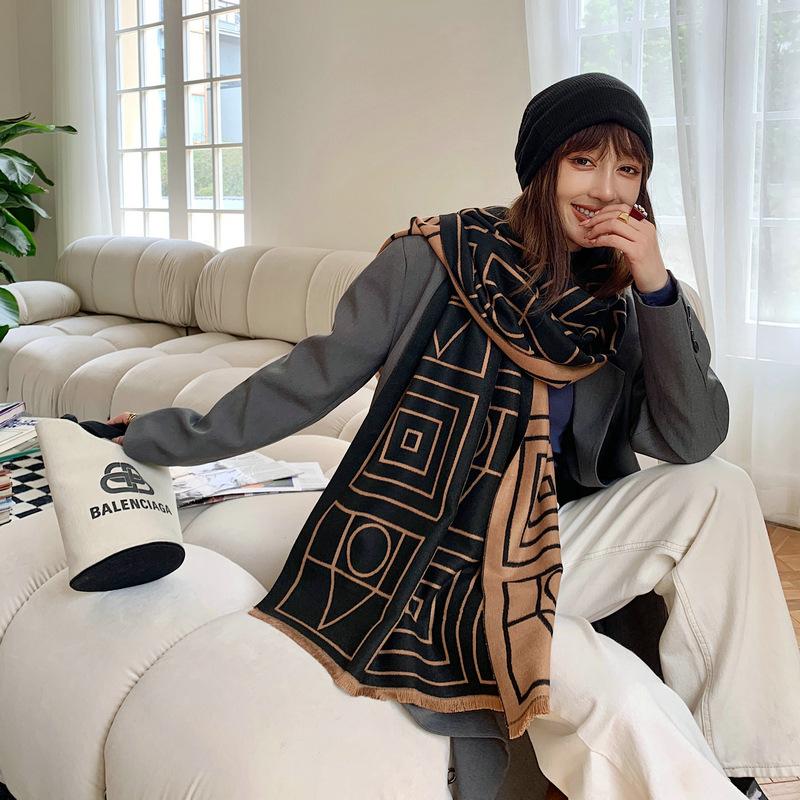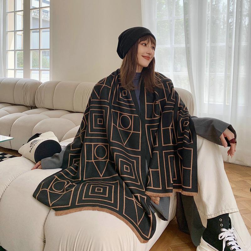Bufanda a cuadros estilo coreano de invierno tipo cachemir para mujer, versátil, gruesa, geométrica, grande, larga y cálida, de doble uso y moda.