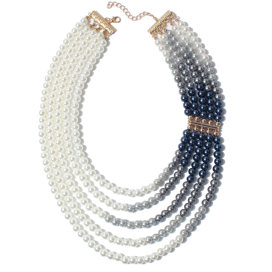 Collar de perlas multicapa para clavícula de señoras exageradas de moda transfronteriza europea y americana 6410