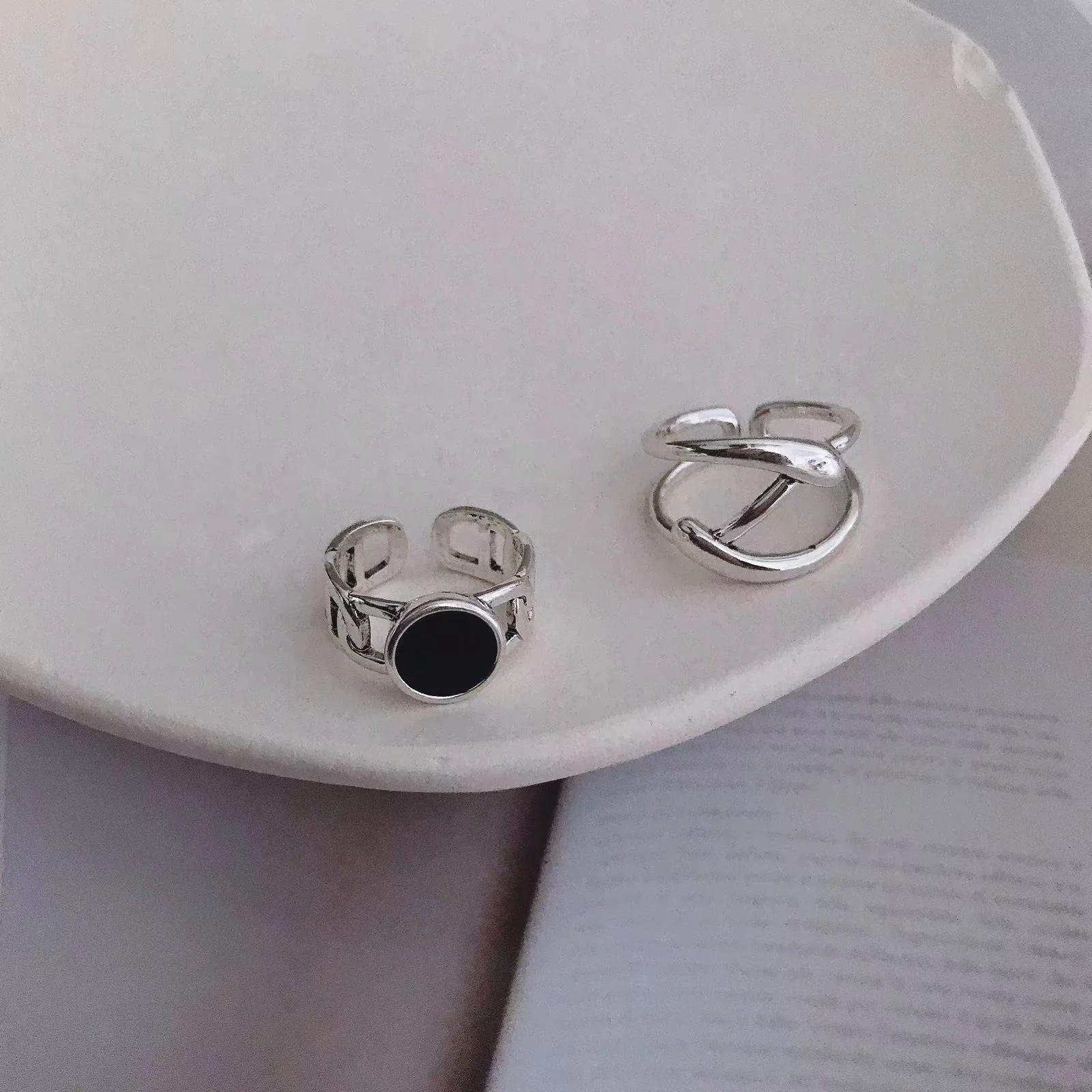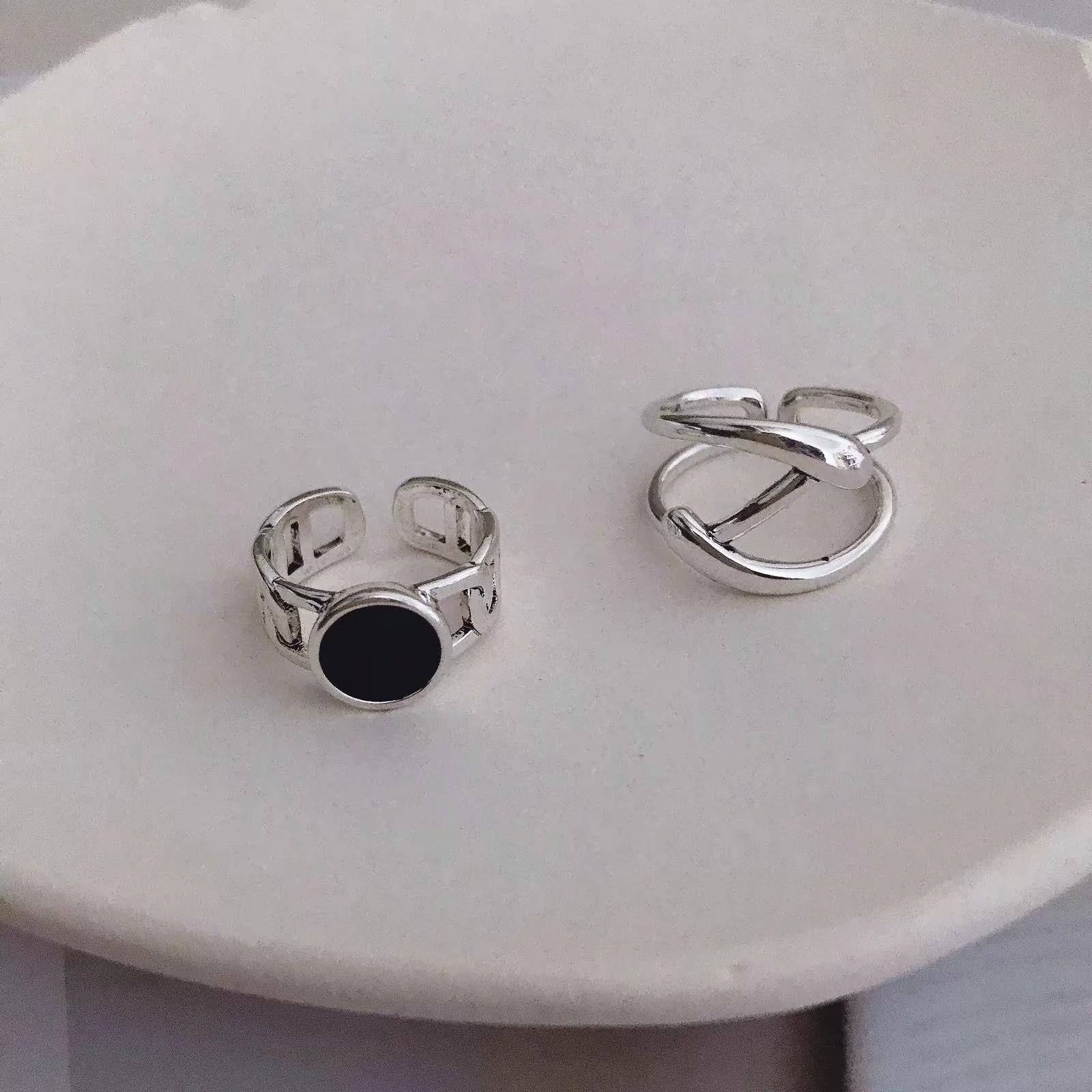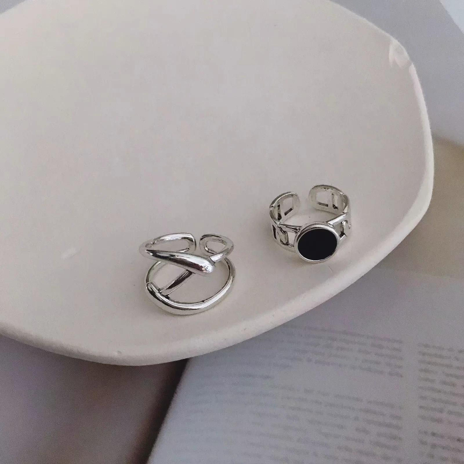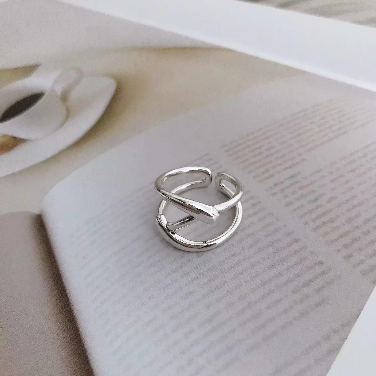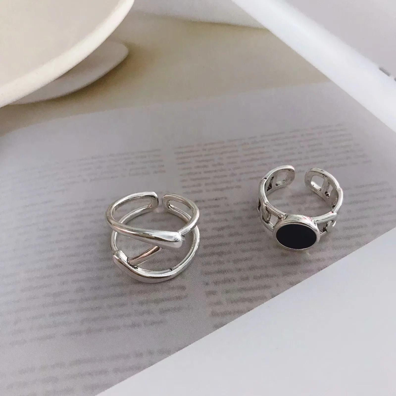 Anillo de Dedo Índice de Diseño Asimétrico de Plata Coreana 925 Estilo Unisex Joyería de Mano Simple para Mujeres Único y Único Elegante