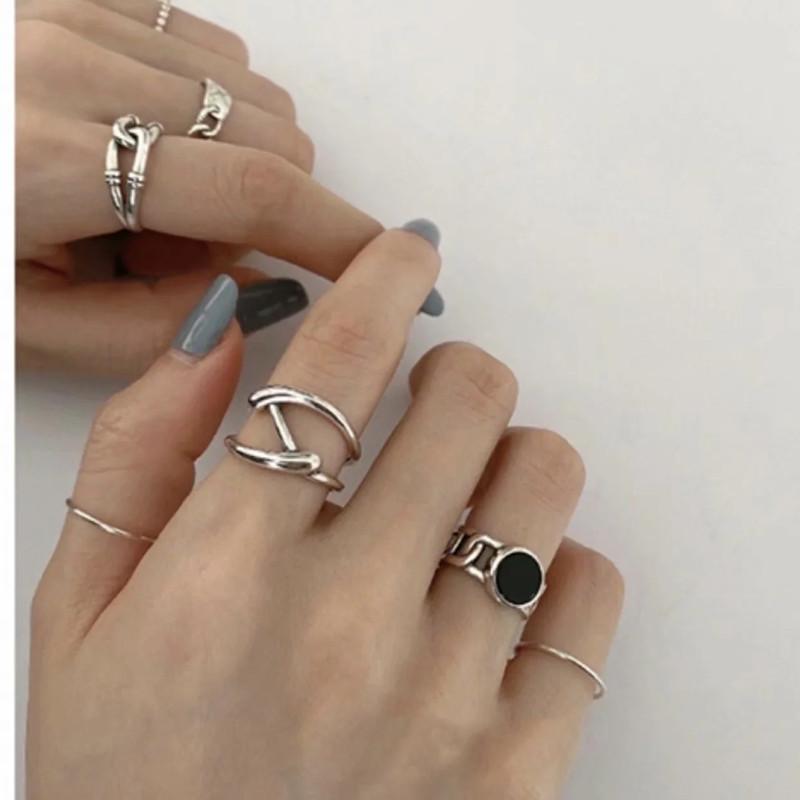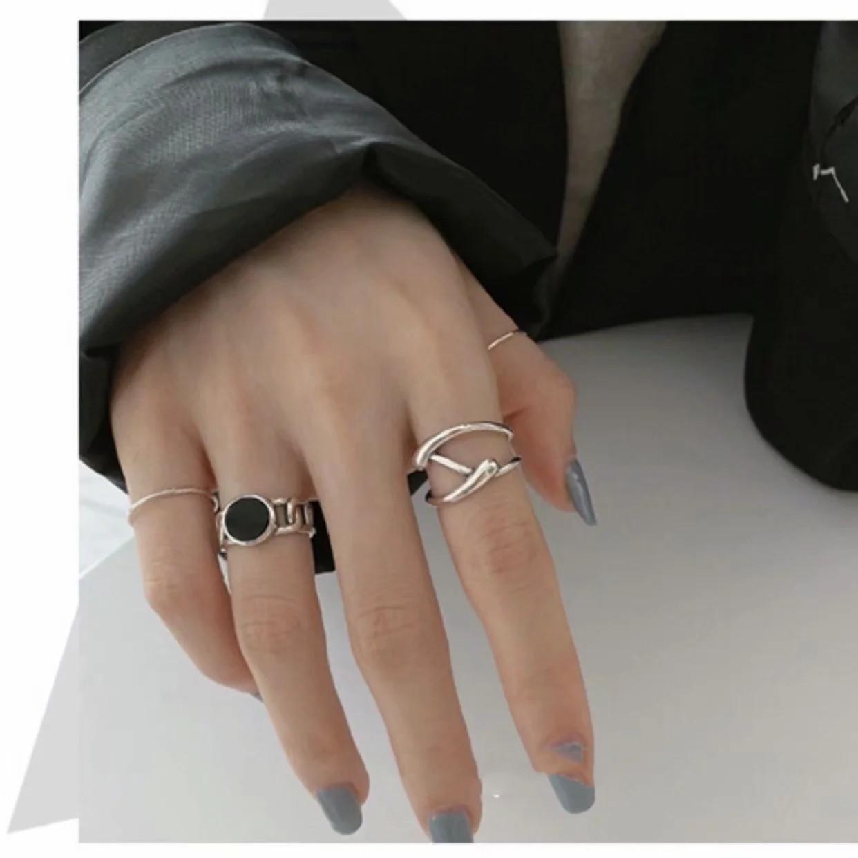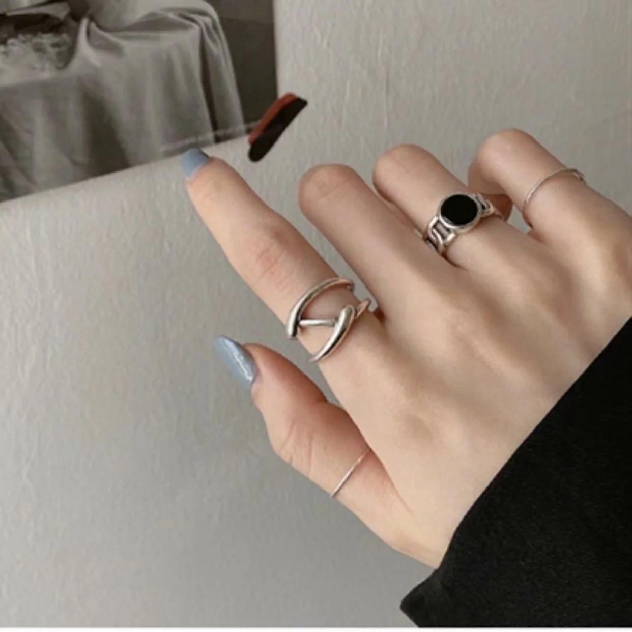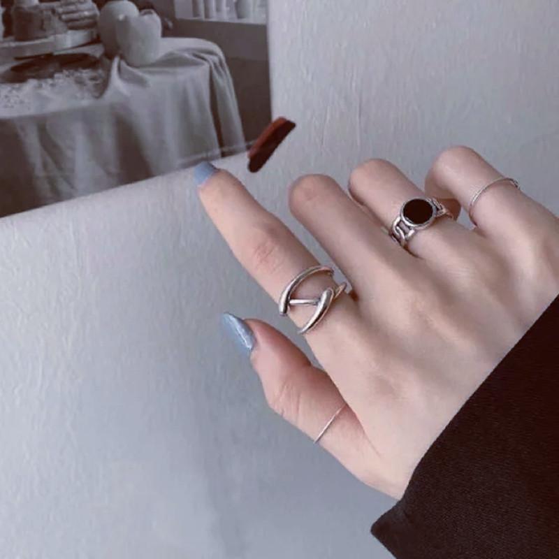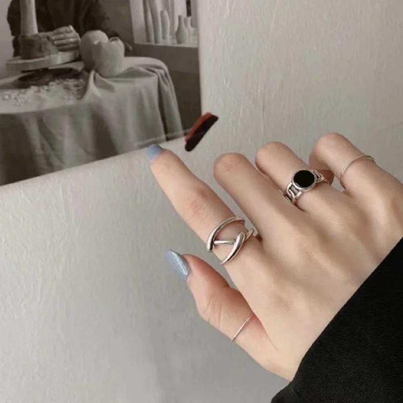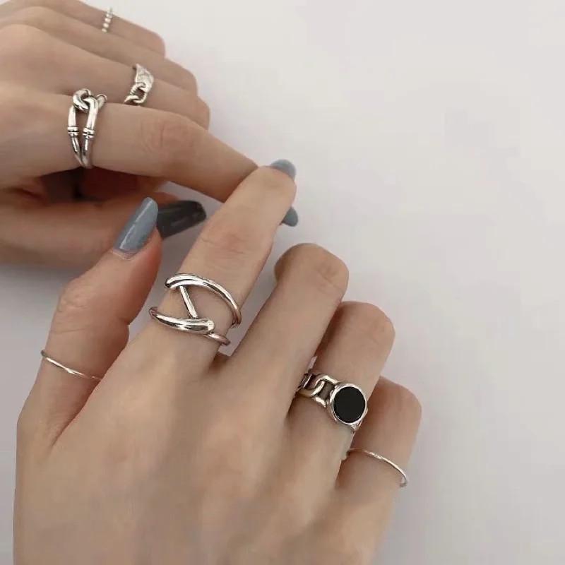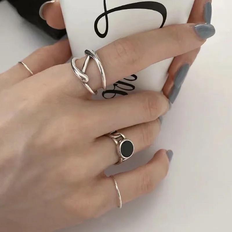 Anillo de Dedo Índice de Diseño Asimétrico de Plata Coreana 925 Estilo Unisex Joyería de Mano Simple para Mujeres Único y Único Elegante