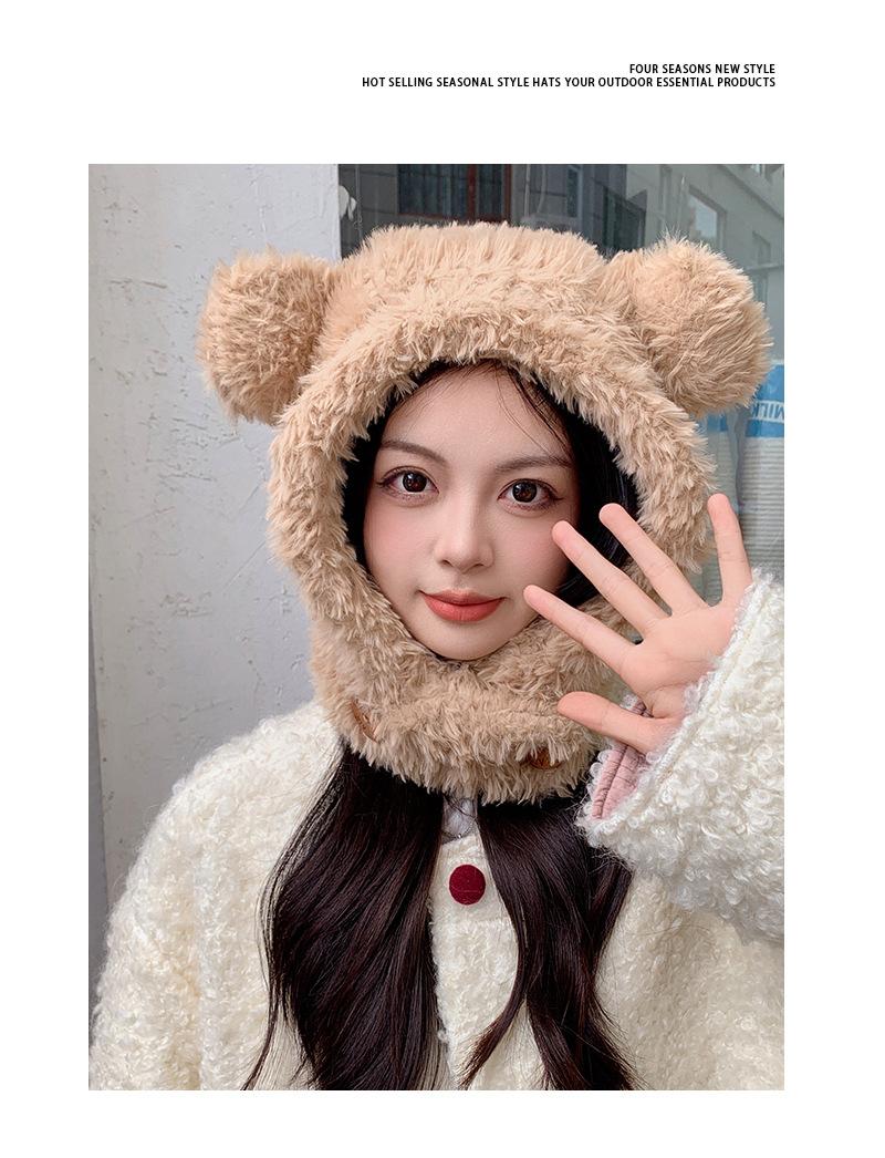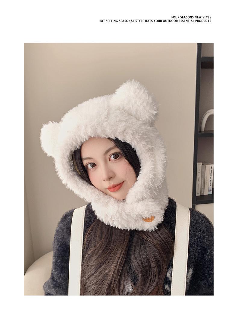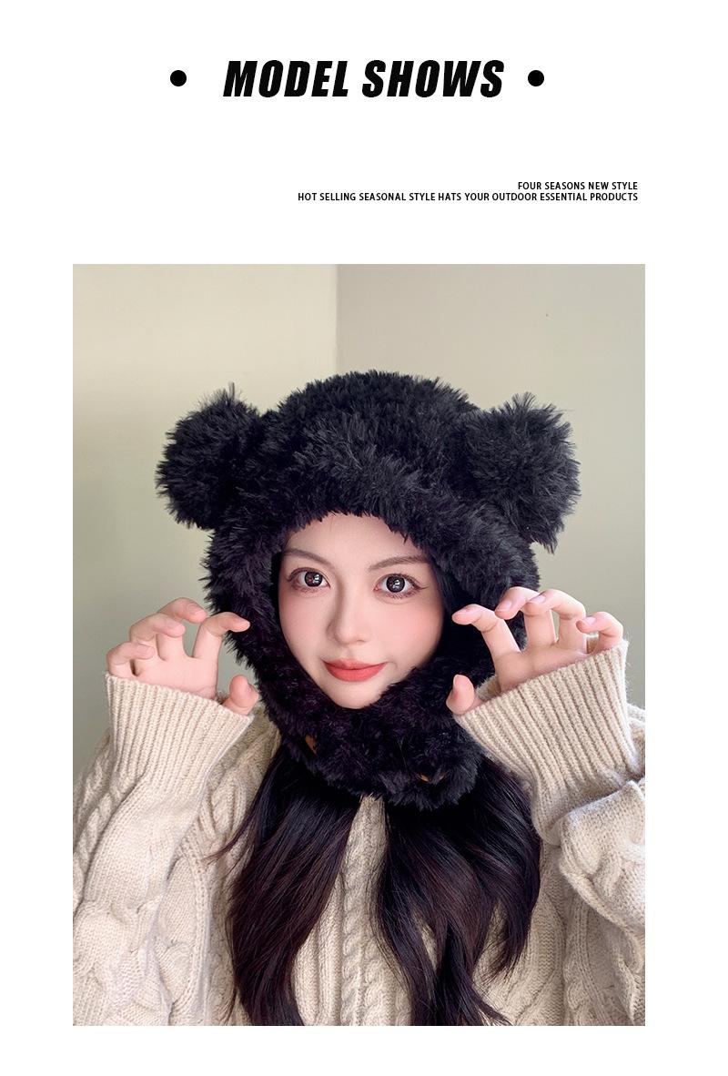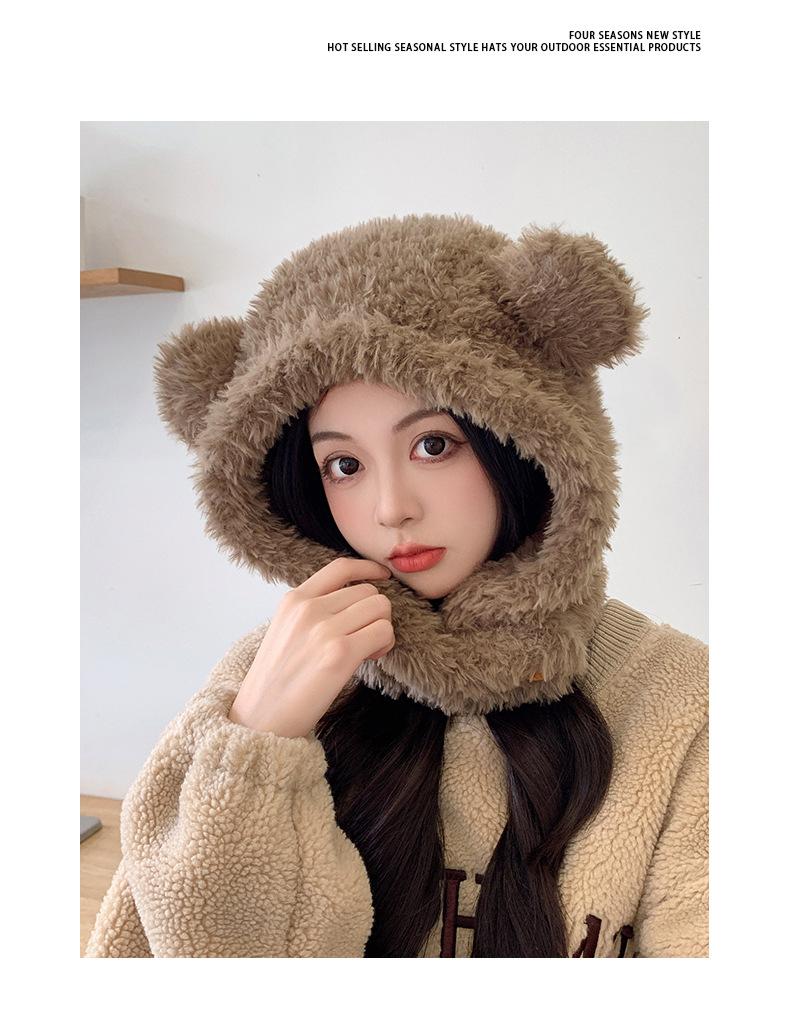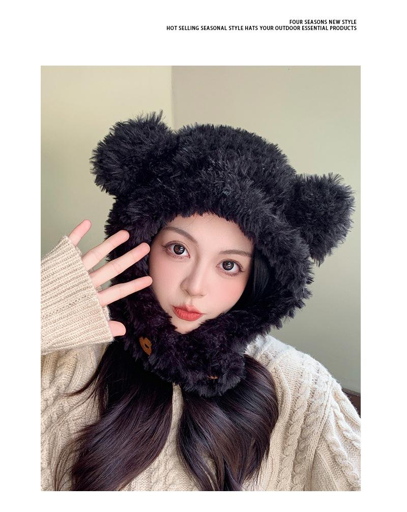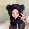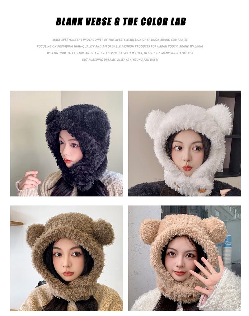 Gorro de peluche de oso adorable y dulce para mujer, gorro de invierno grueso y cálido con orejeras, gorro Lei Feng
