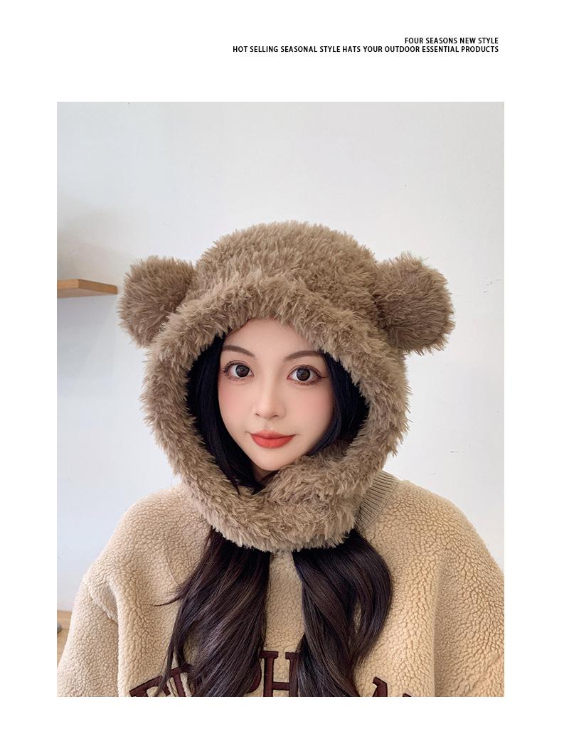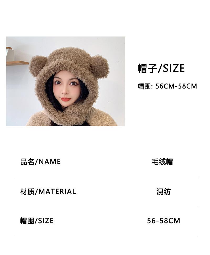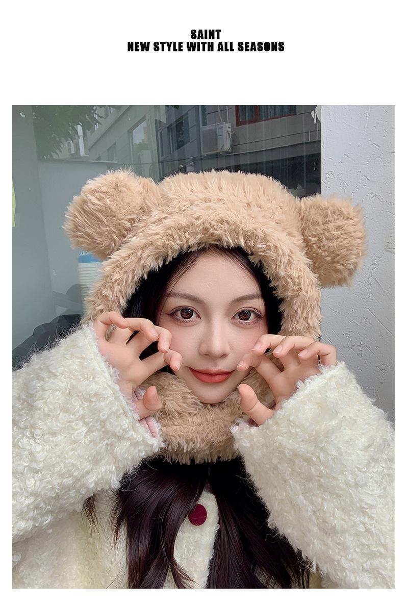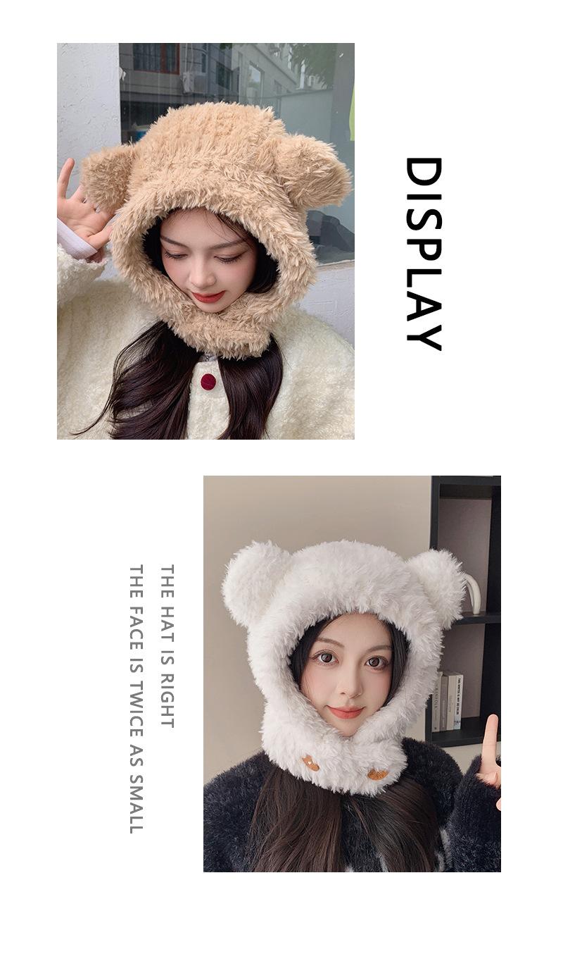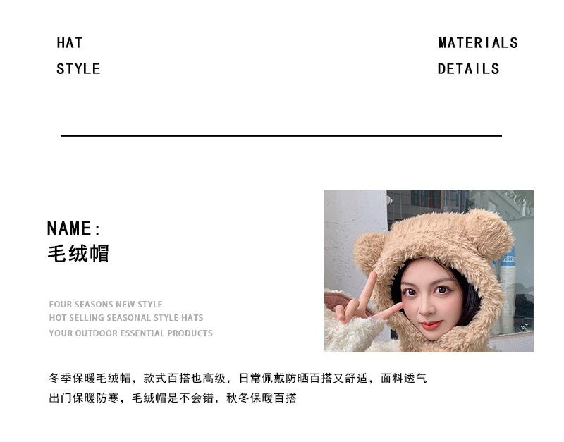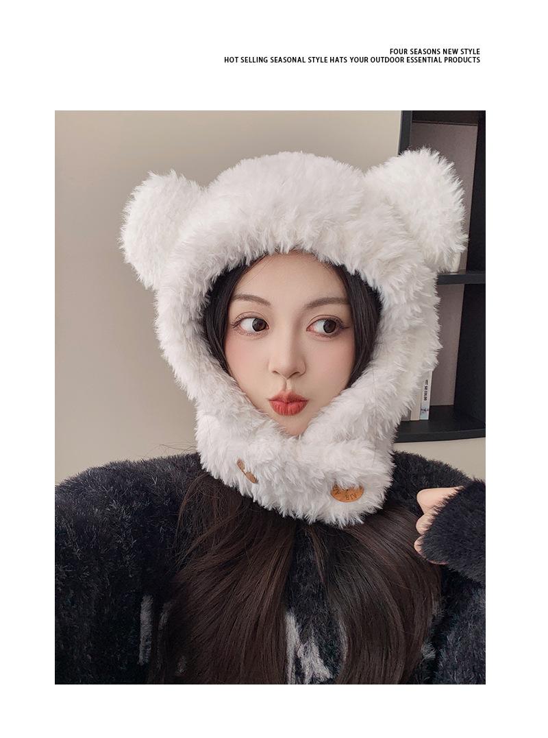 Gorro de peluche de oso adorable y dulce para mujer, gorro de invierno grueso y cálido con orejeras, gorro Lei Feng