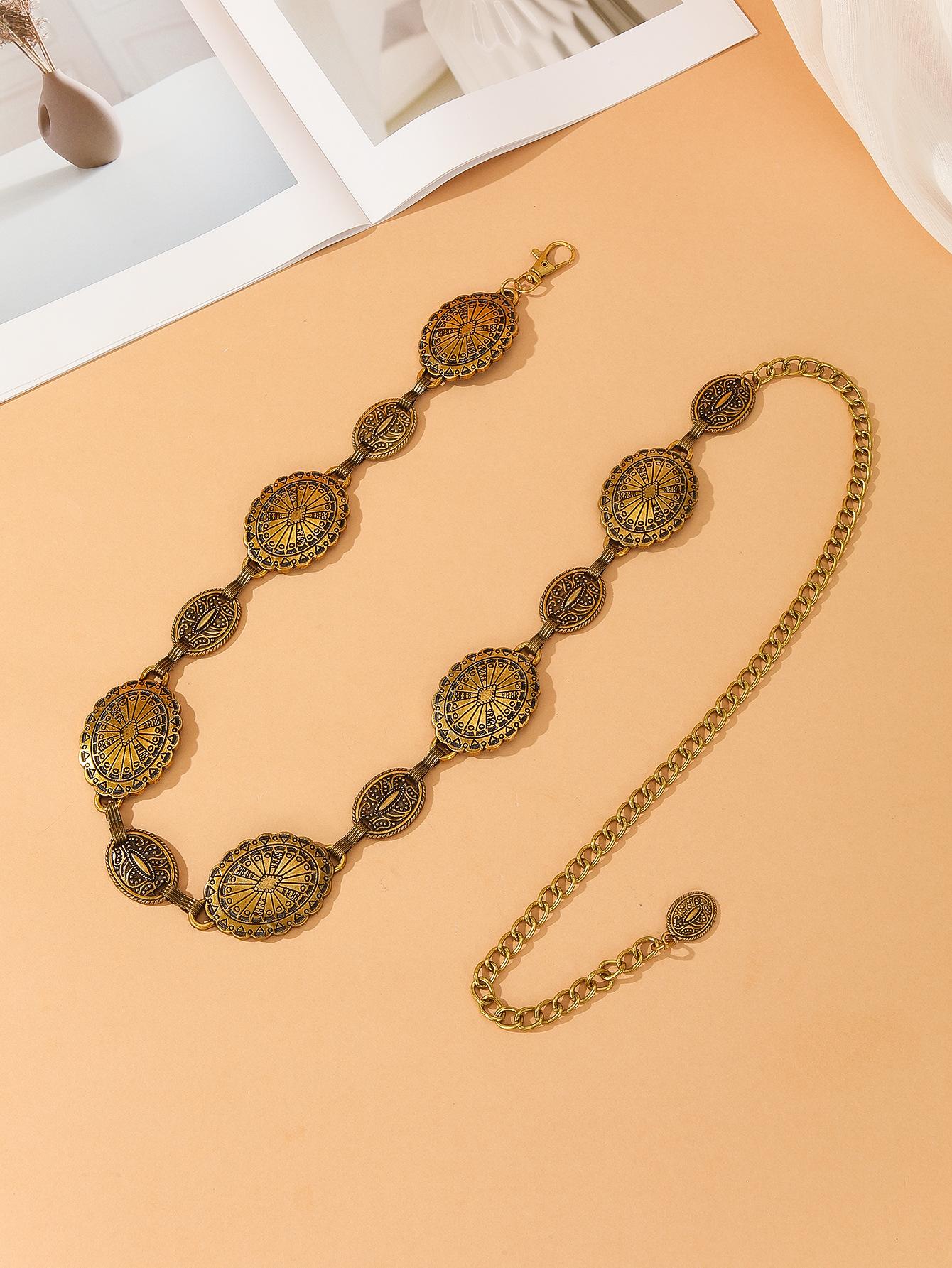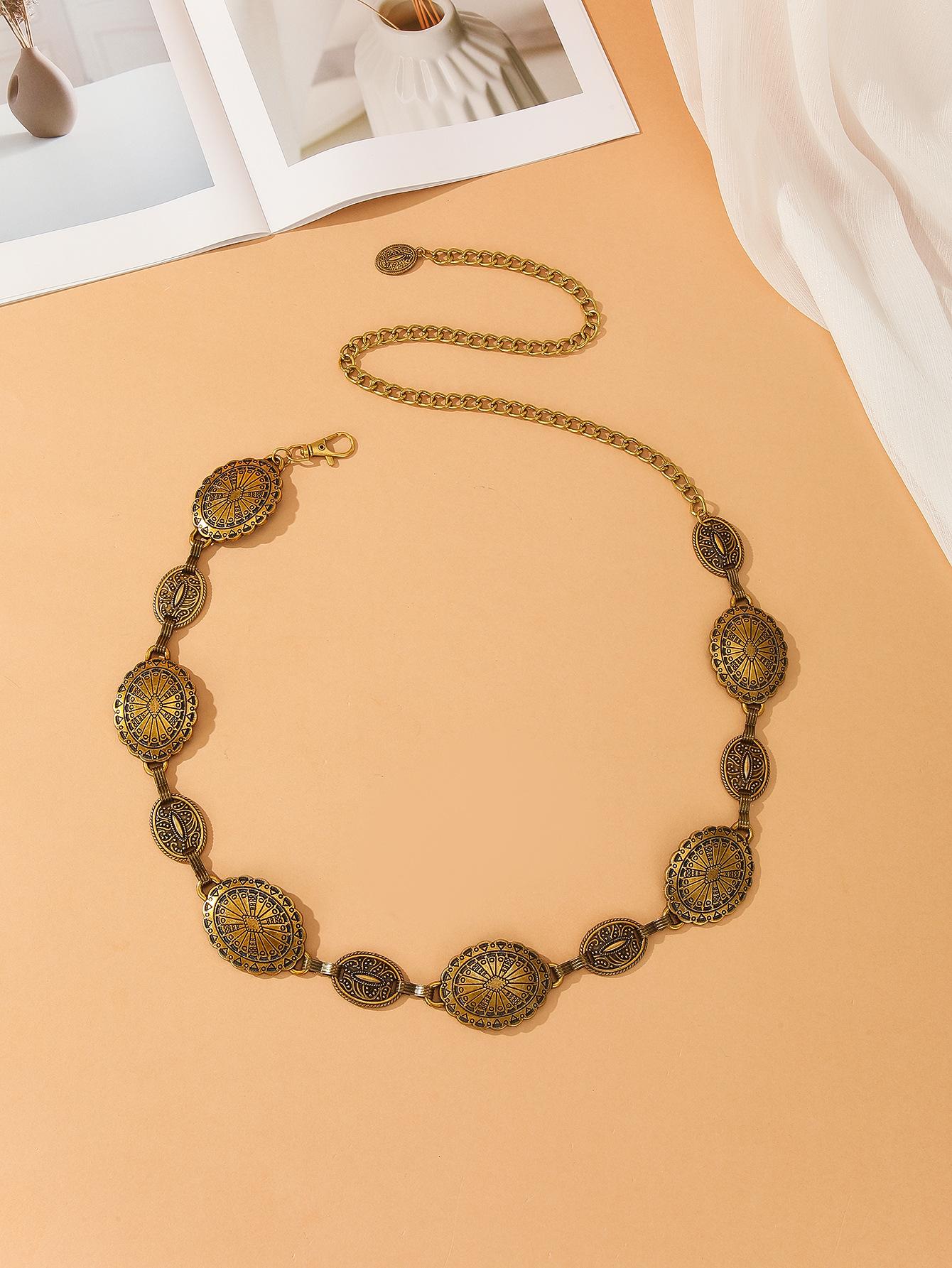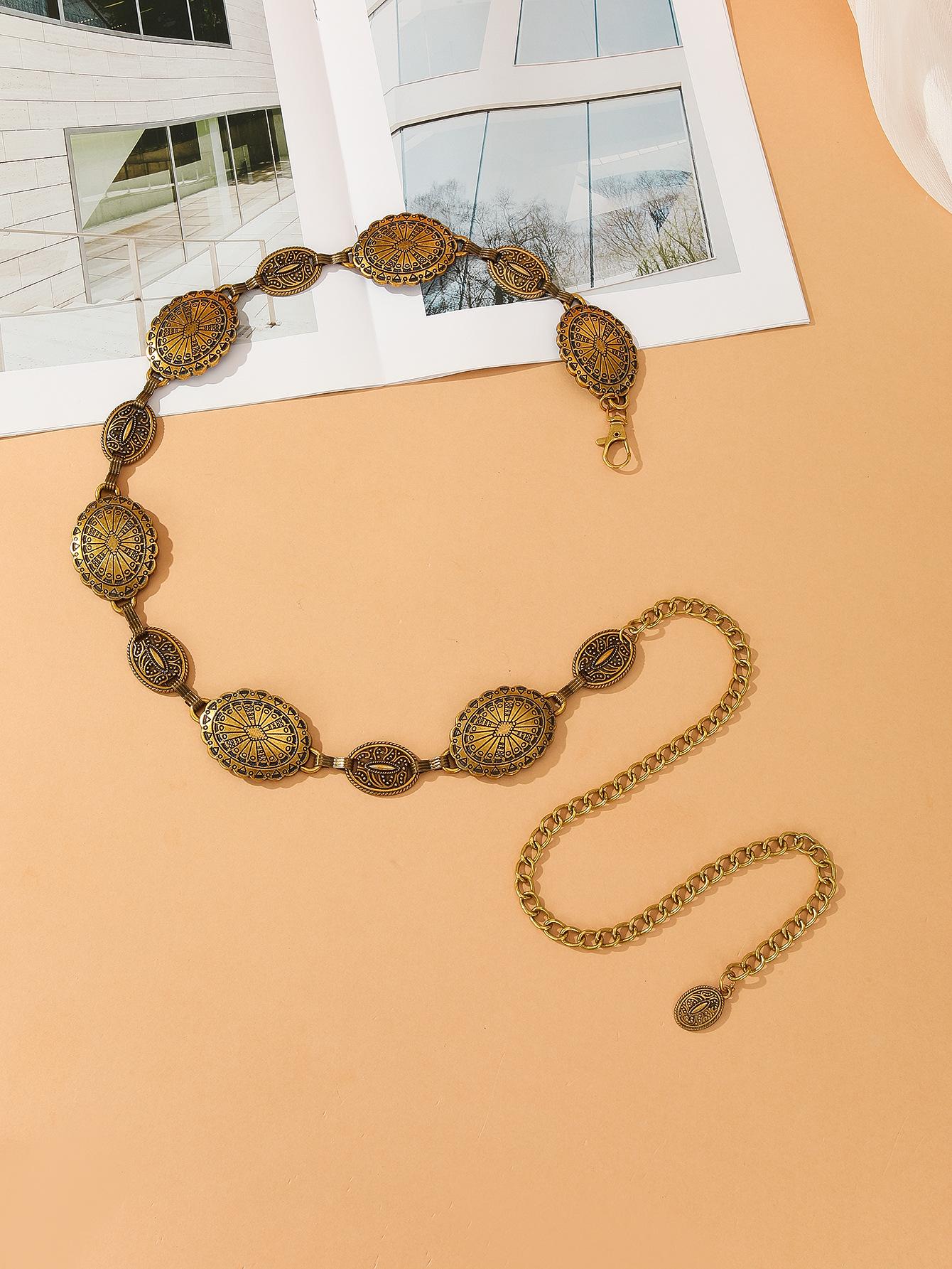 Cinturón de metal estilo retro con cadena de cintura de estilo europeo y americano, popular y étnico, ideal para combinar con vestidos decorativos.